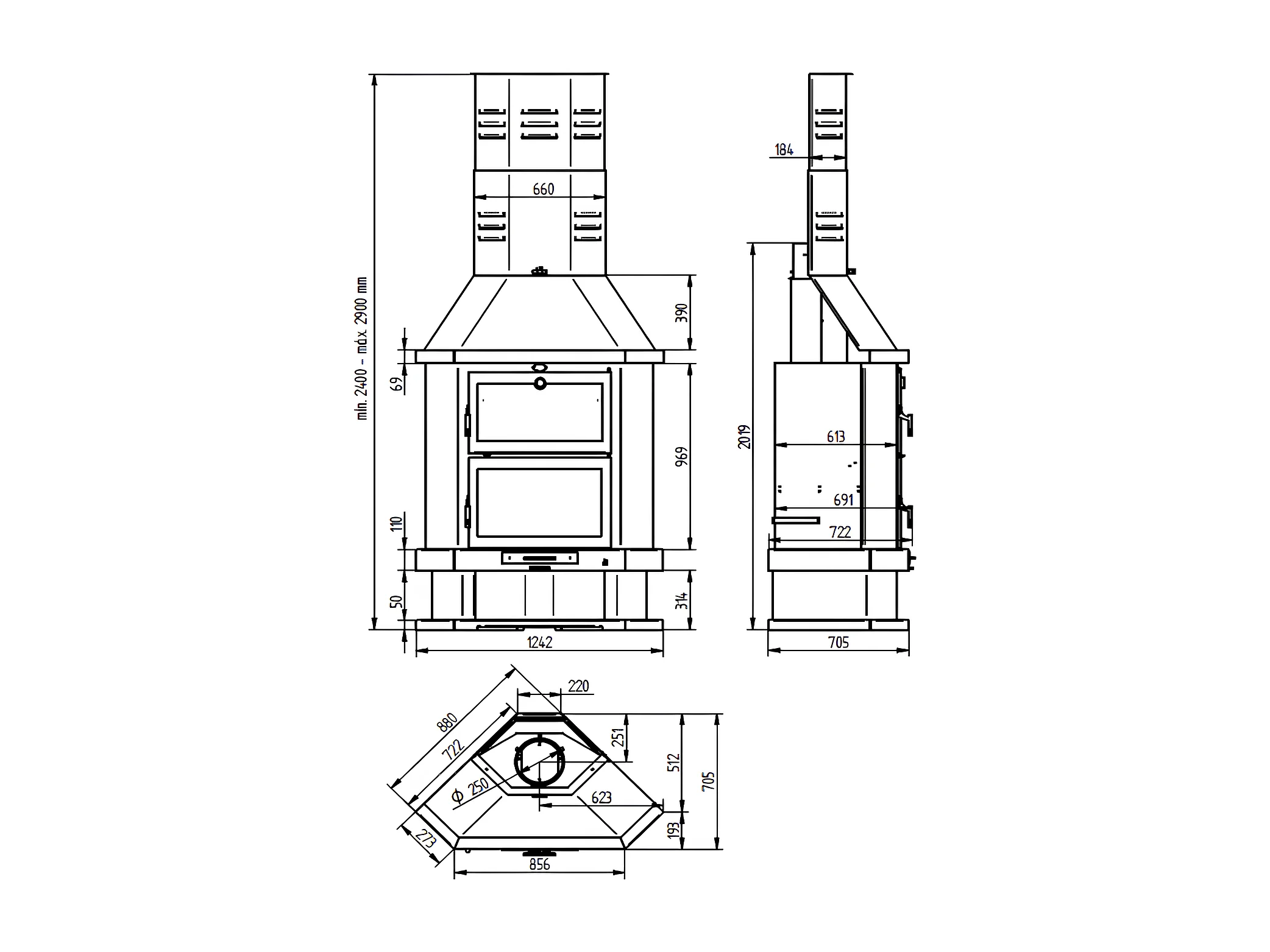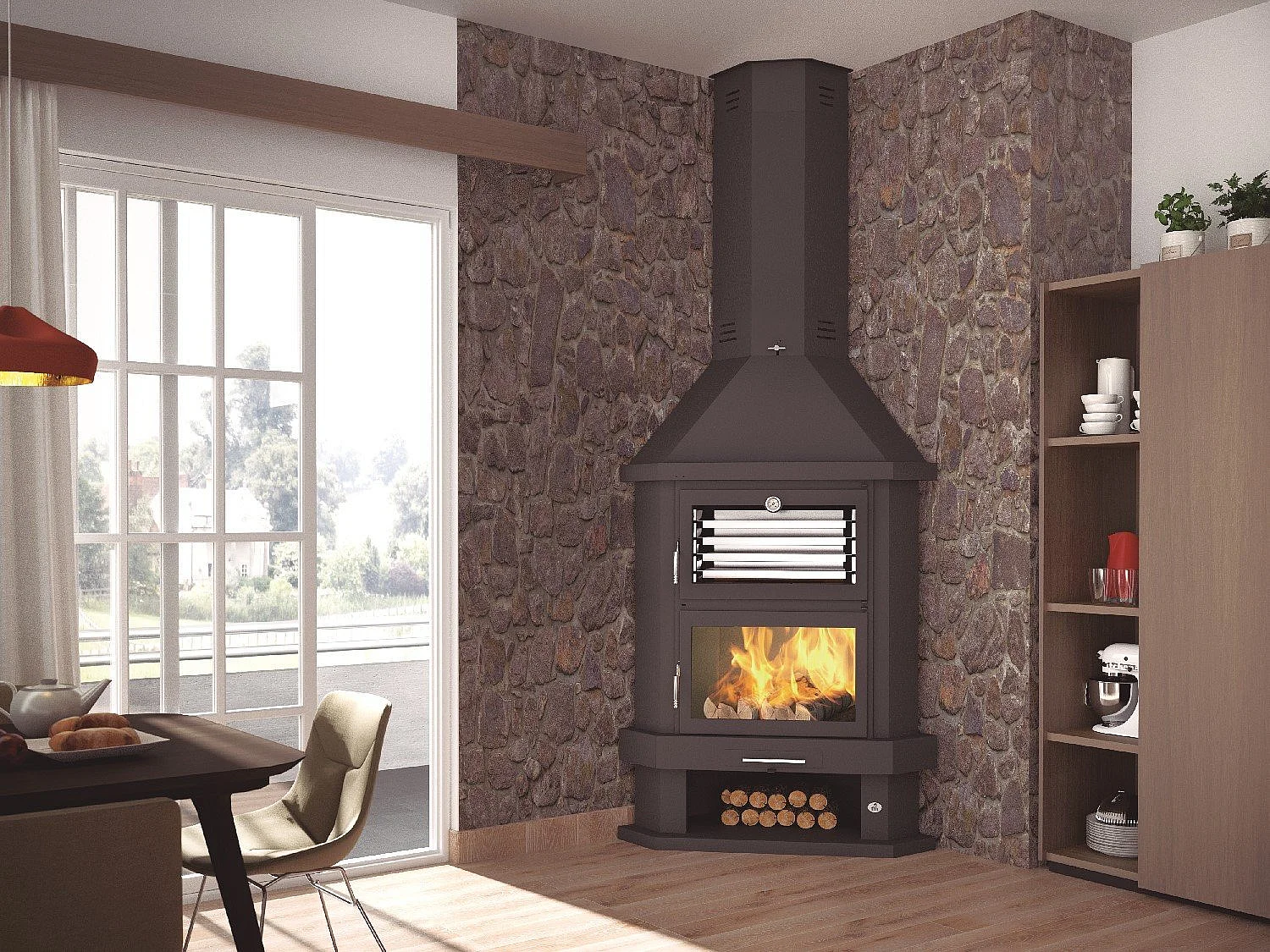 Cheminée à bois de coin en acier avec four supérieur, bûcher inférieur - BoisFer