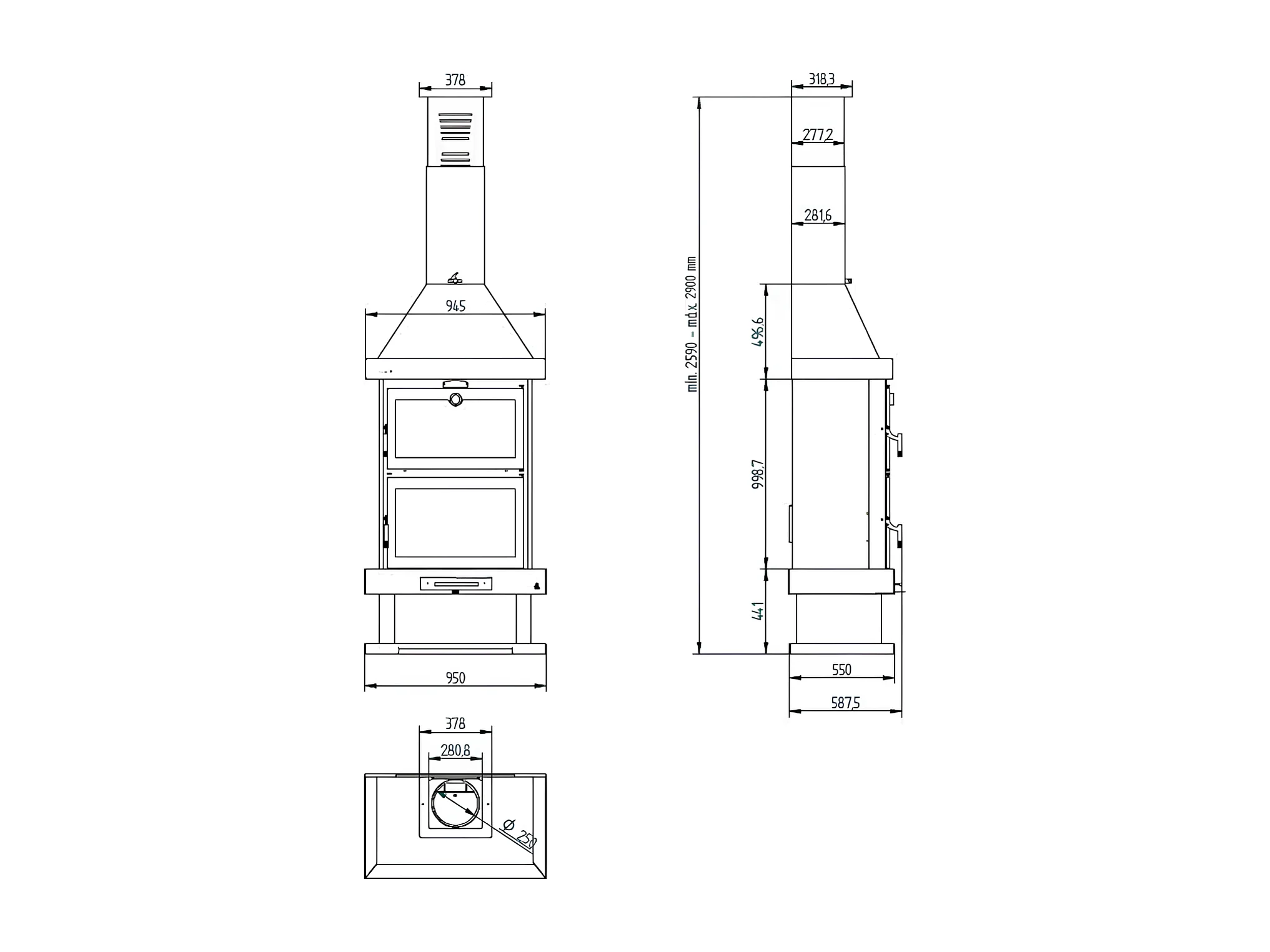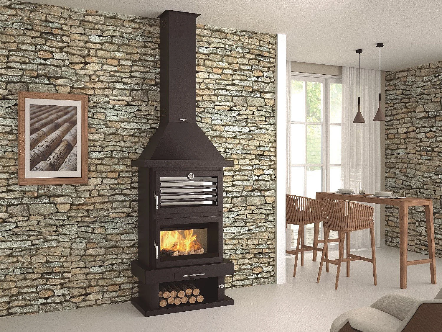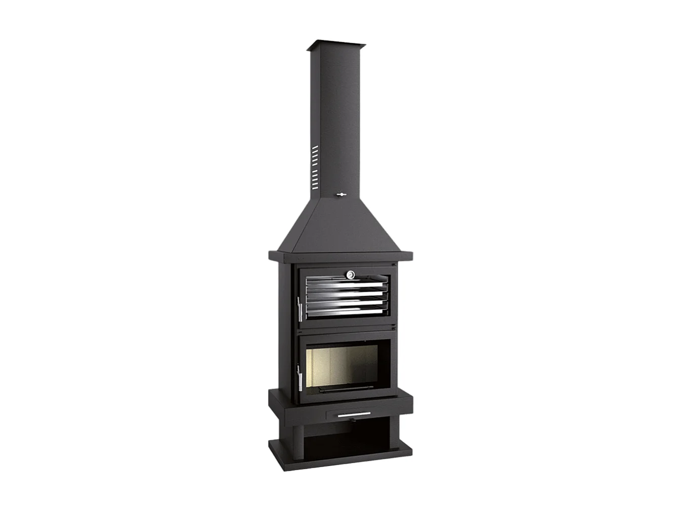 cheminée à bois en acier avec four supérieur, bûcher inférieur - CœurBraise
