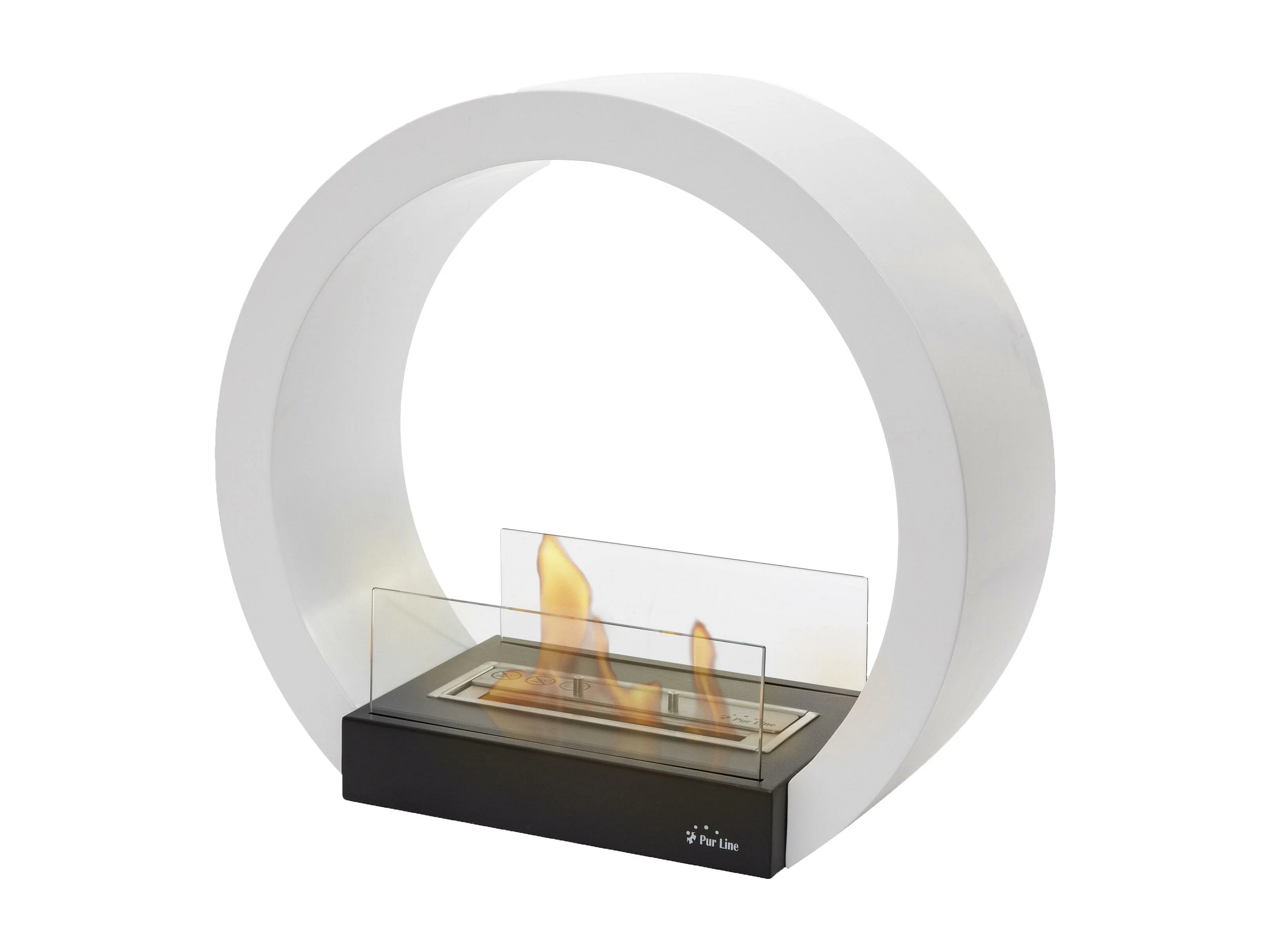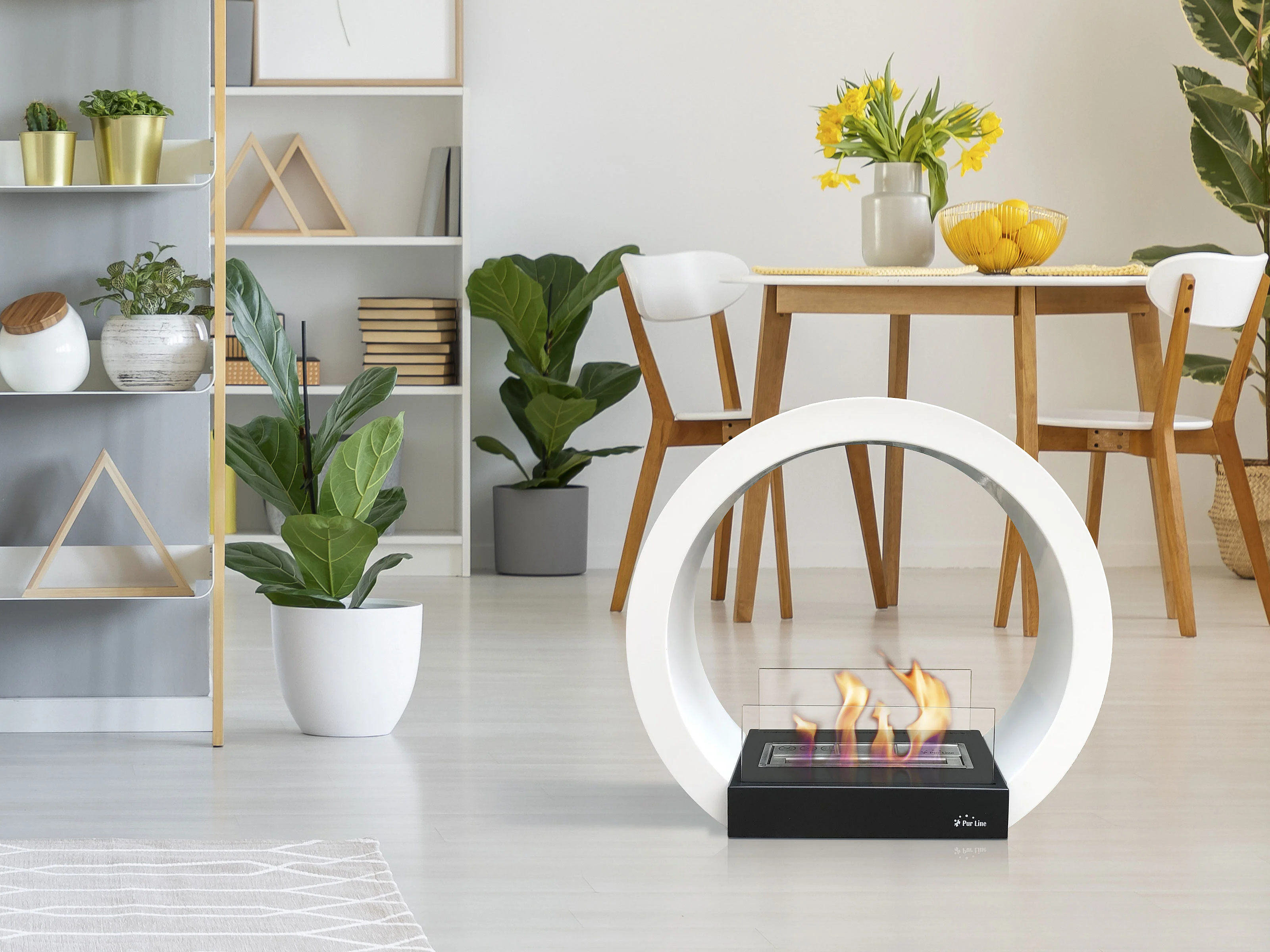 Cheminée à l'éthanol au sol semi-circulaire en acier blanc