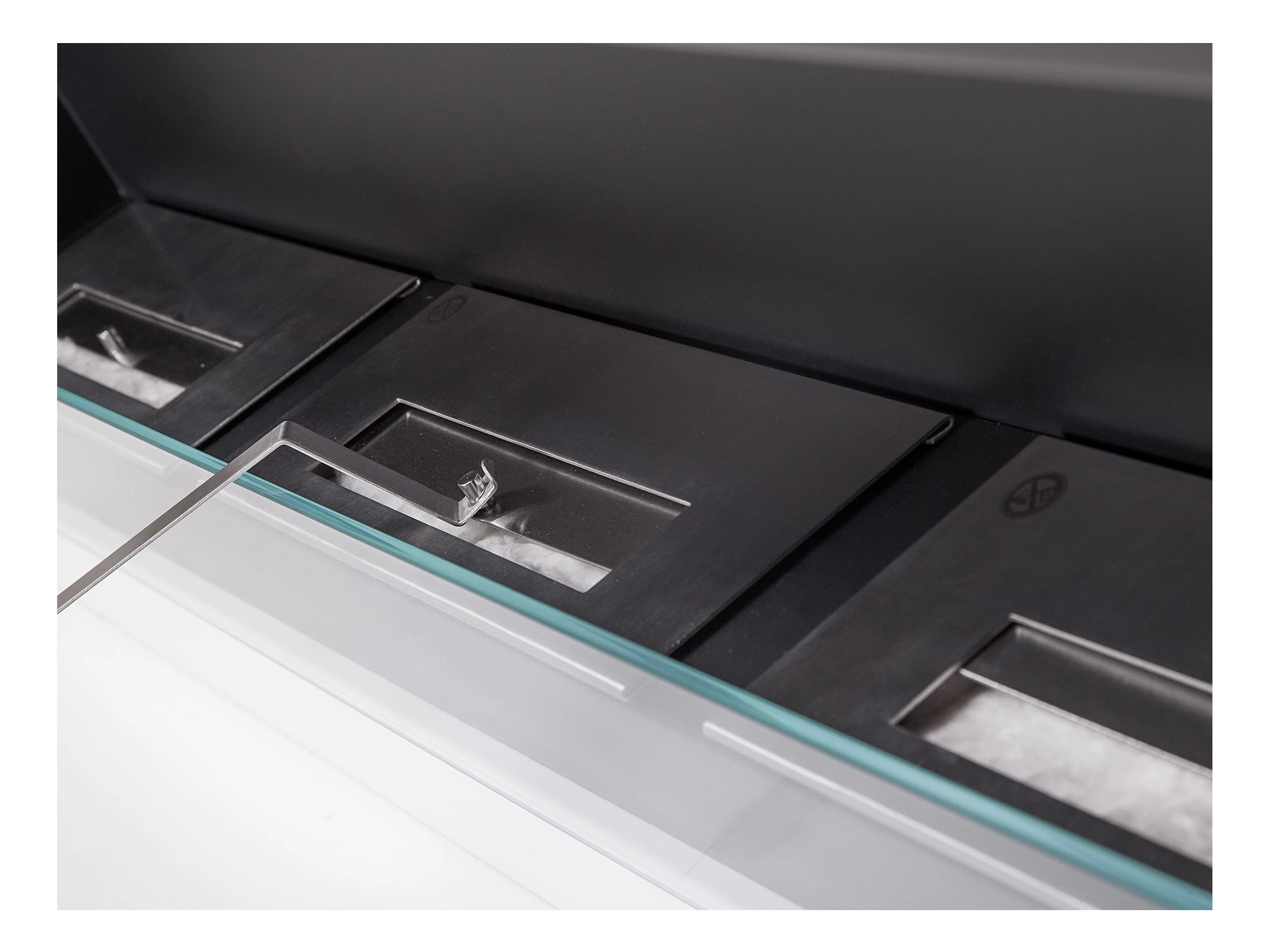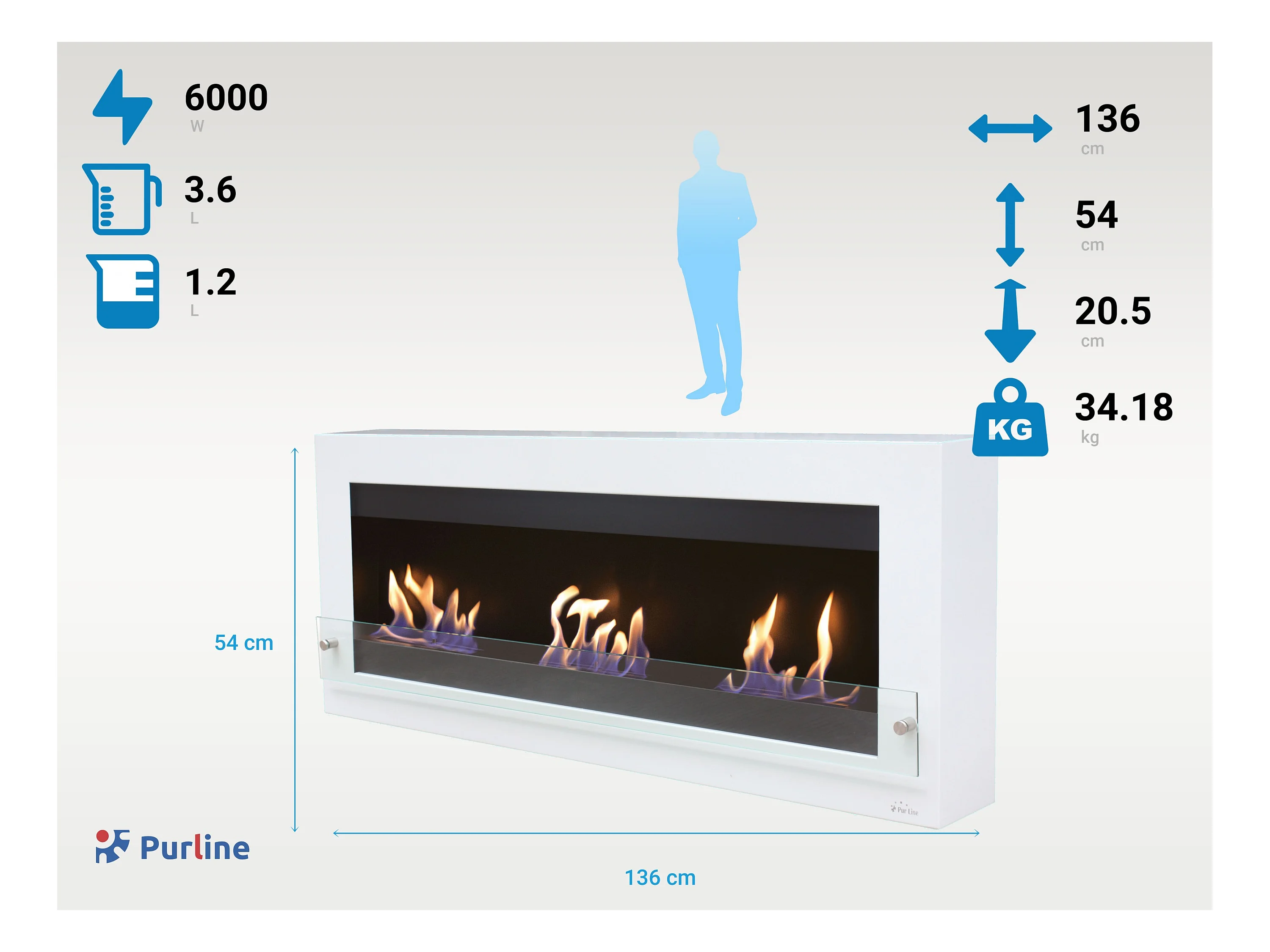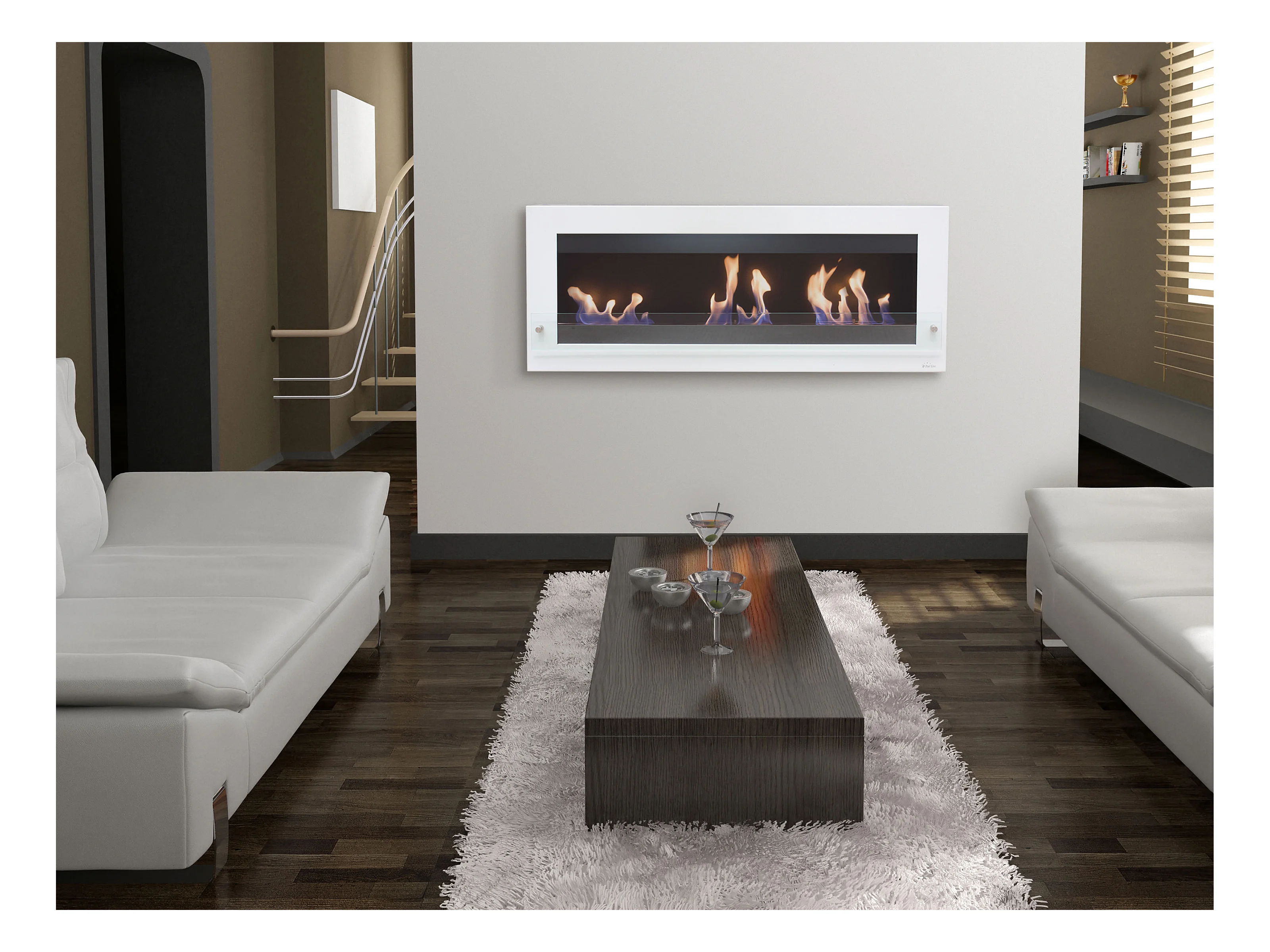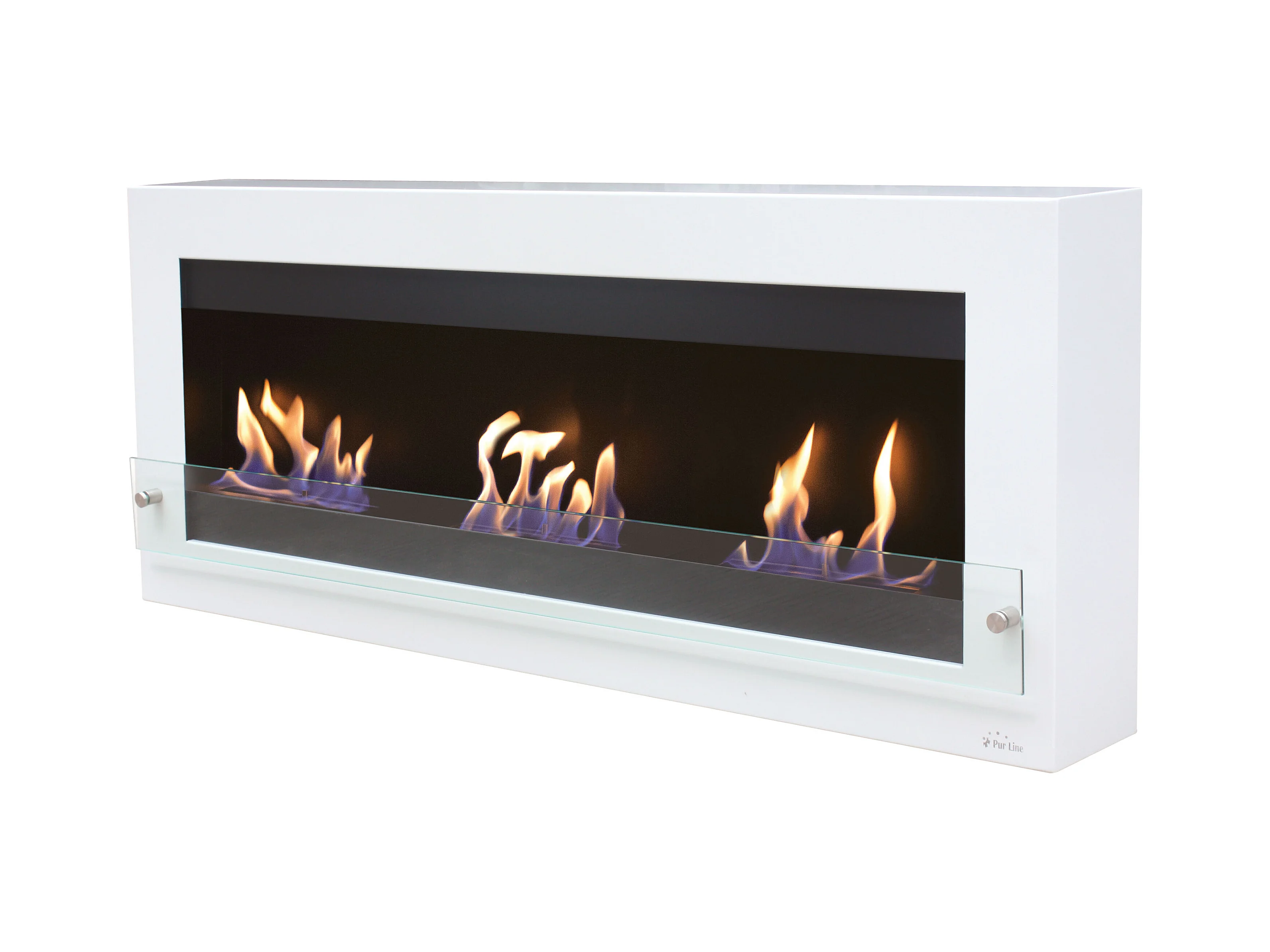 Très grande cheminée murale à l'éthanol en acier et verre trempé
