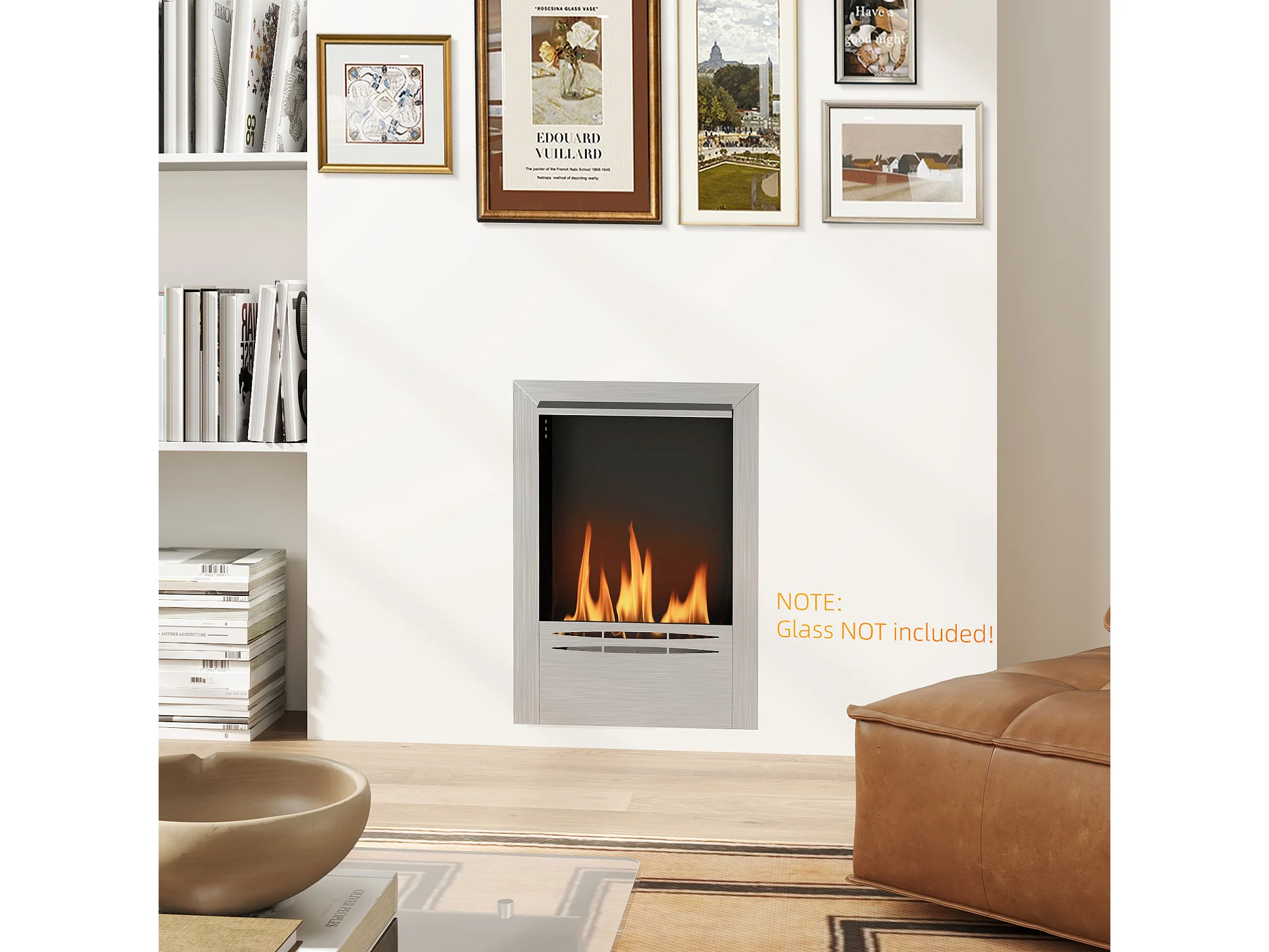 Cheminée bioéthanol encastrable design - 0,9L - 48 x 18 x 59 cm - acier inox. brossé