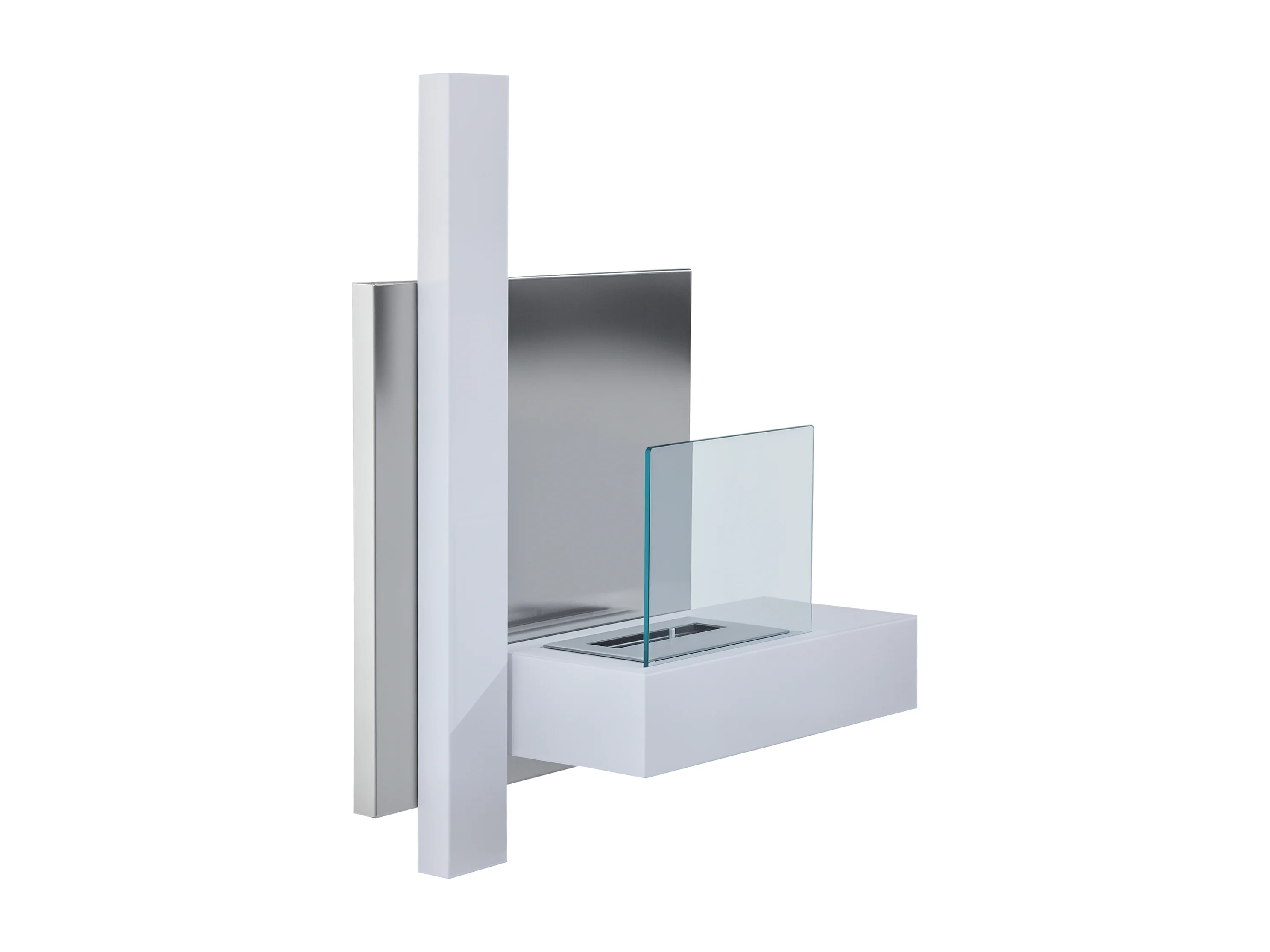 Cheminée bioéthanol murale design Bauhaus 1 brûleur 1,5 L 75L x 22l x 63H cm couverture 20-25 m² acier blanc inox. brossé