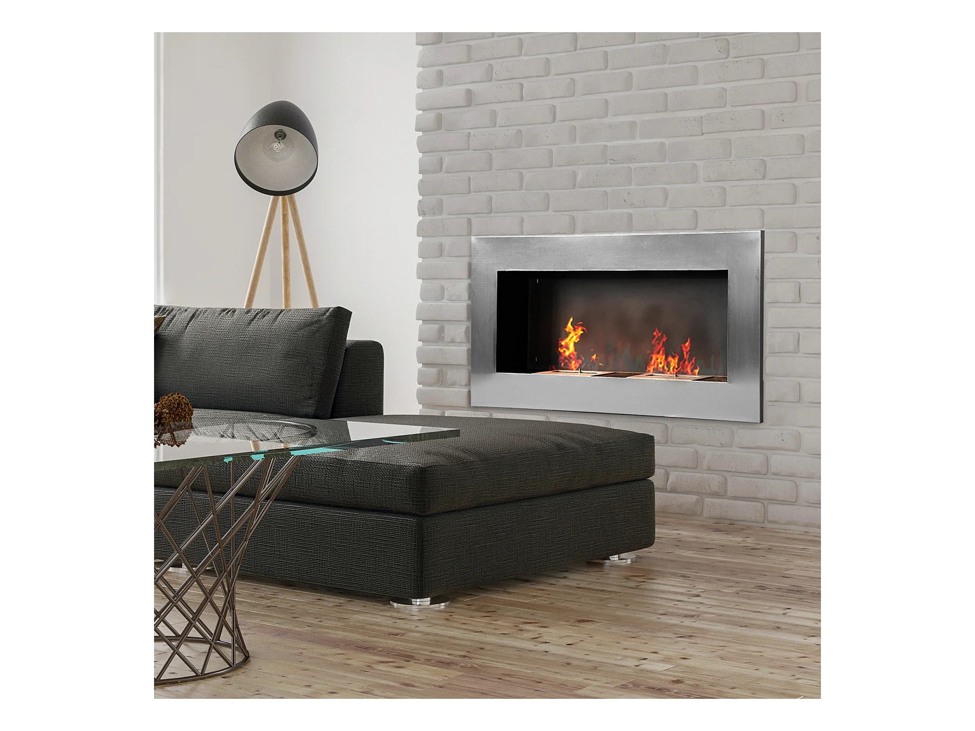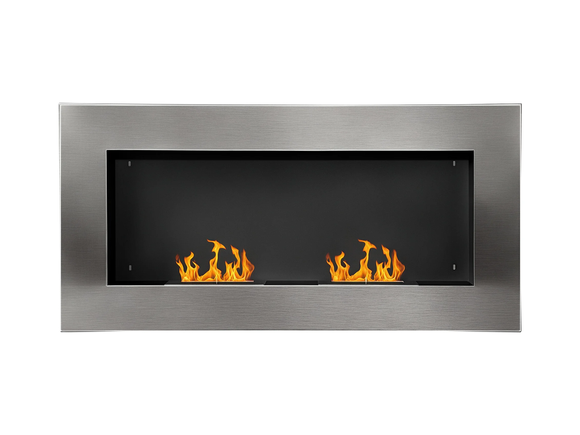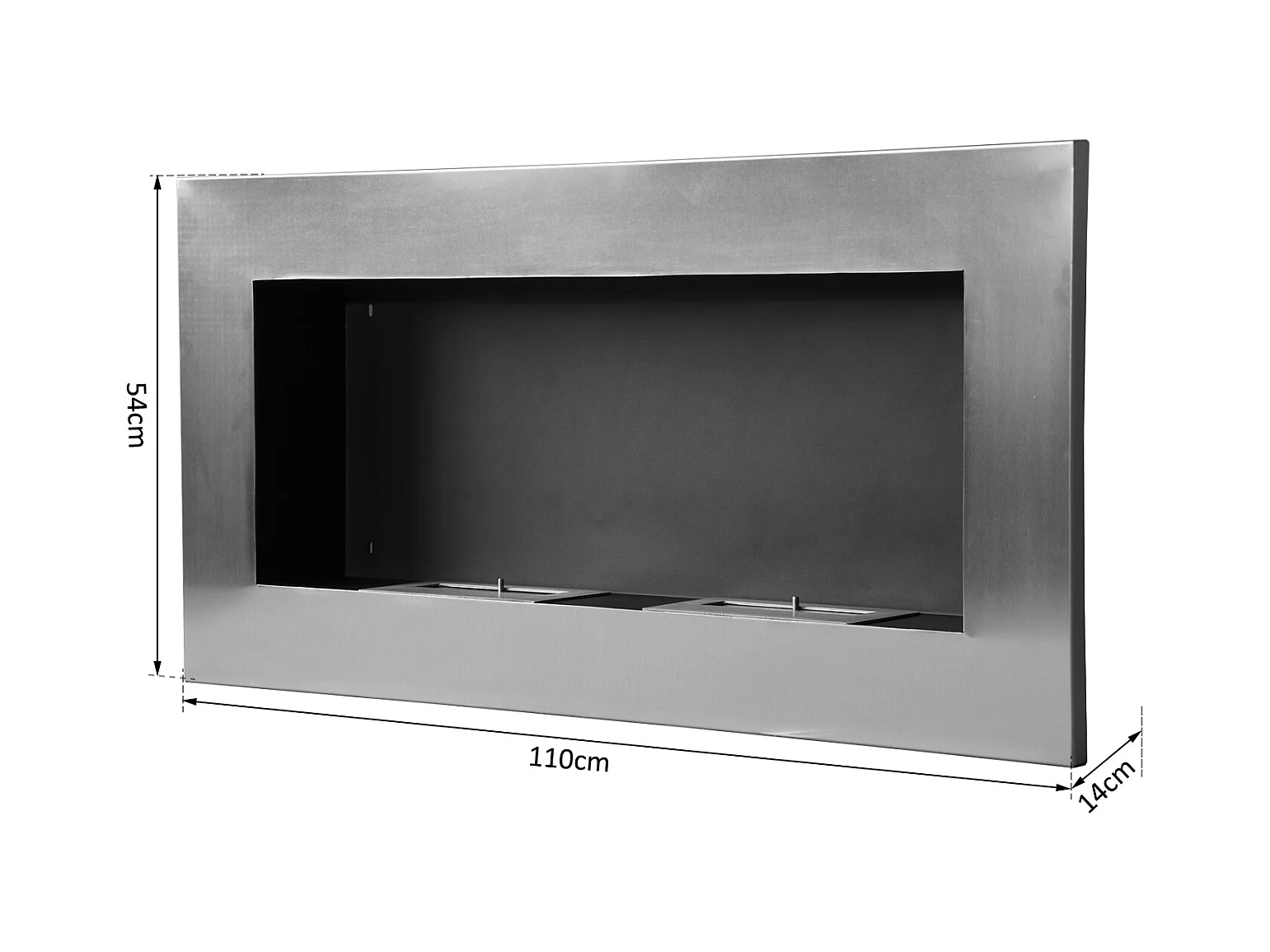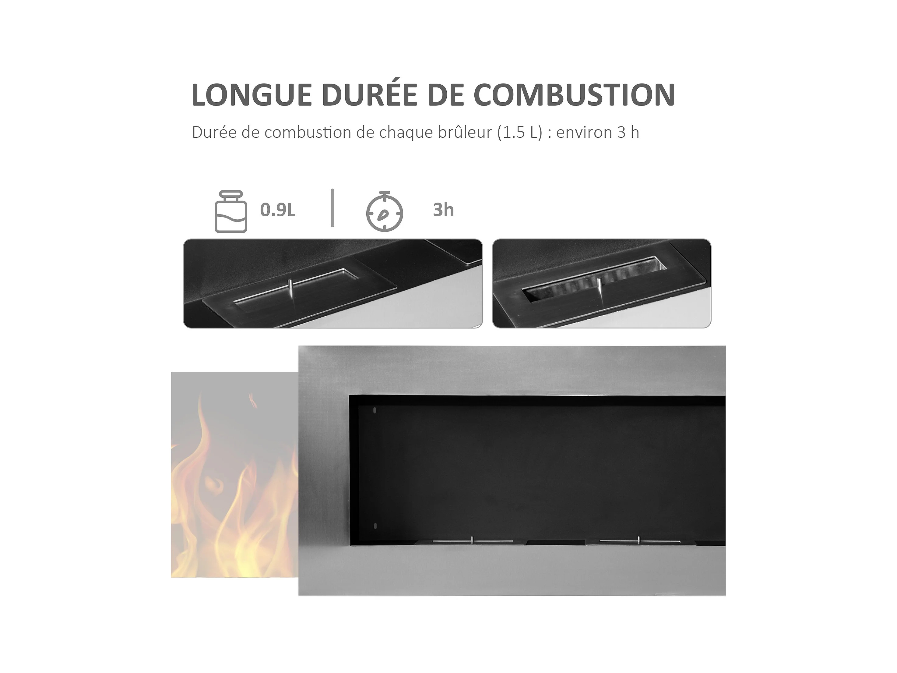 Cheminée bioéthanol murale design Bauhaus double brûleur 3 L 110L x 14l x 54H cm couverture 25-30 m² acier inox. brossé