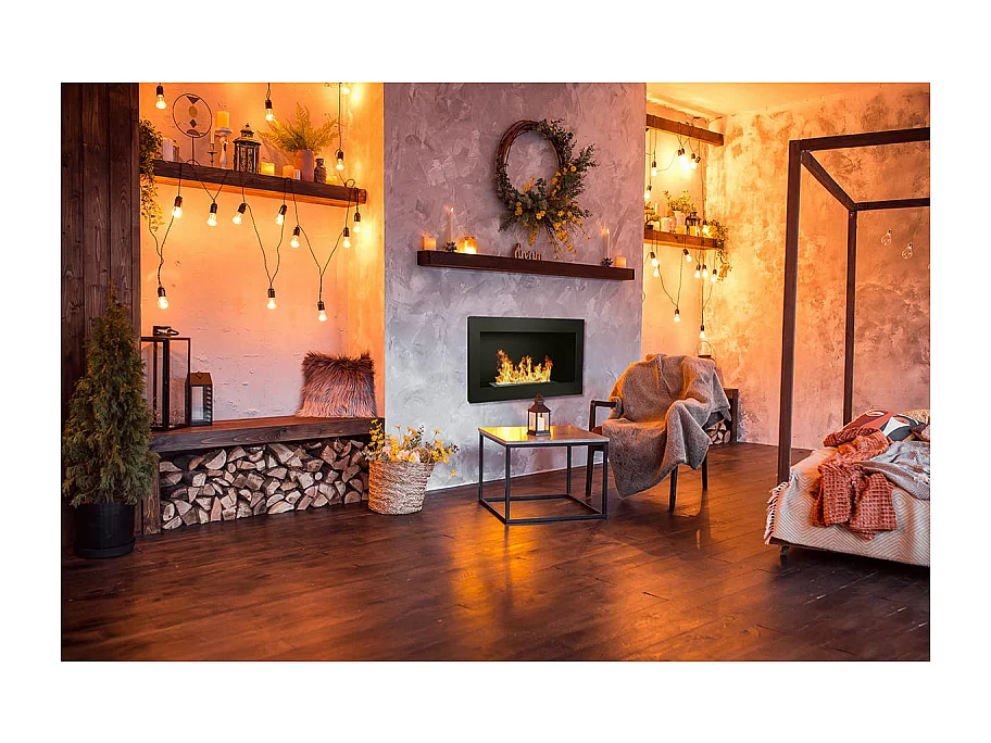 Cheminée bioéthanol murale ou encastrable Lucca Nero L 90 x P 12 x H 40