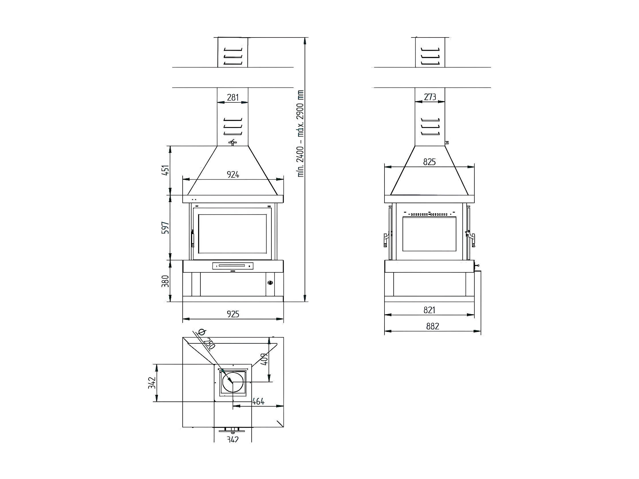 Cheminée centrale en acier, 2 portes, bûcher inférieur - ProvençaHeat - sérigraphié uniquement sur les portes