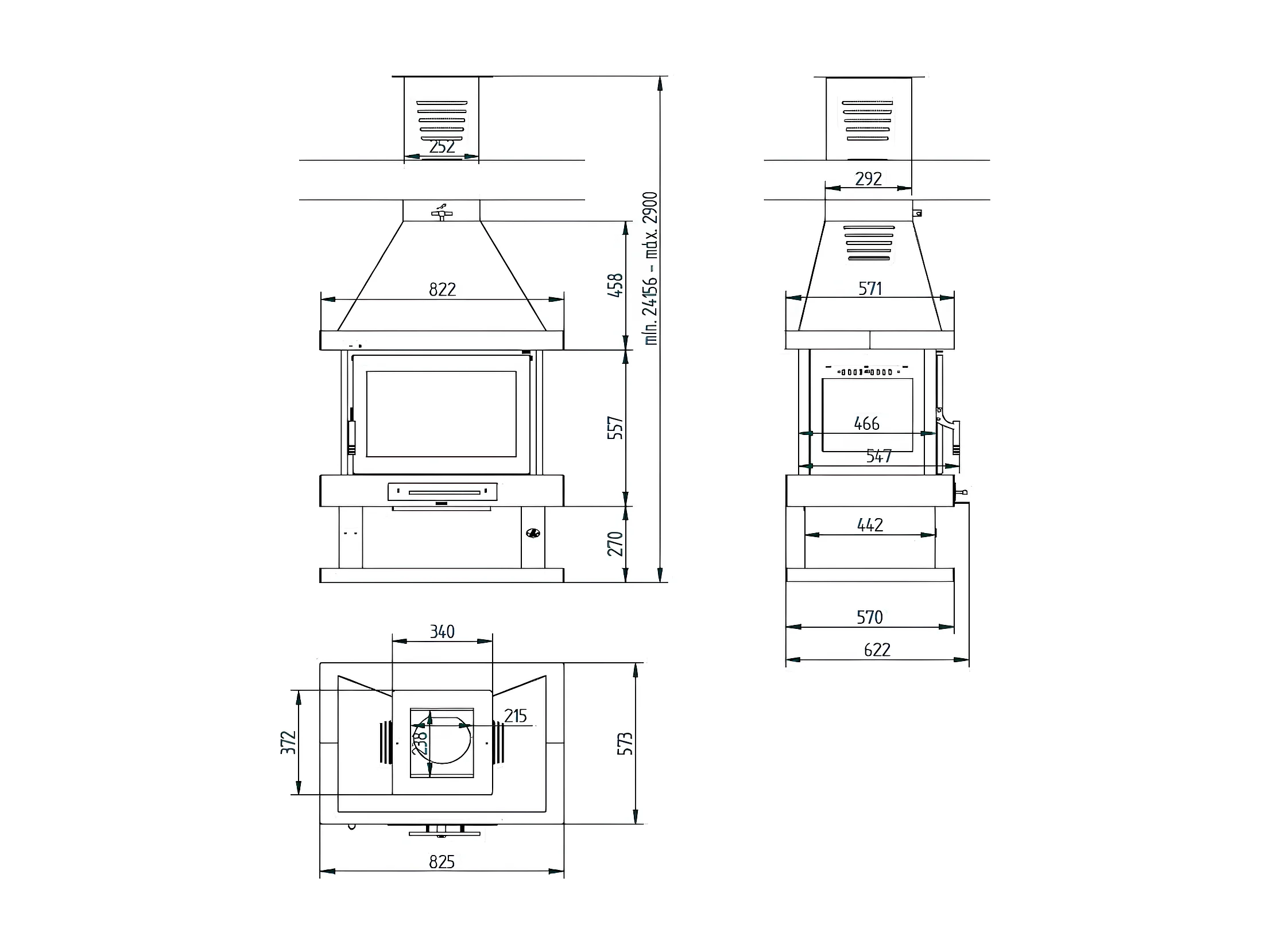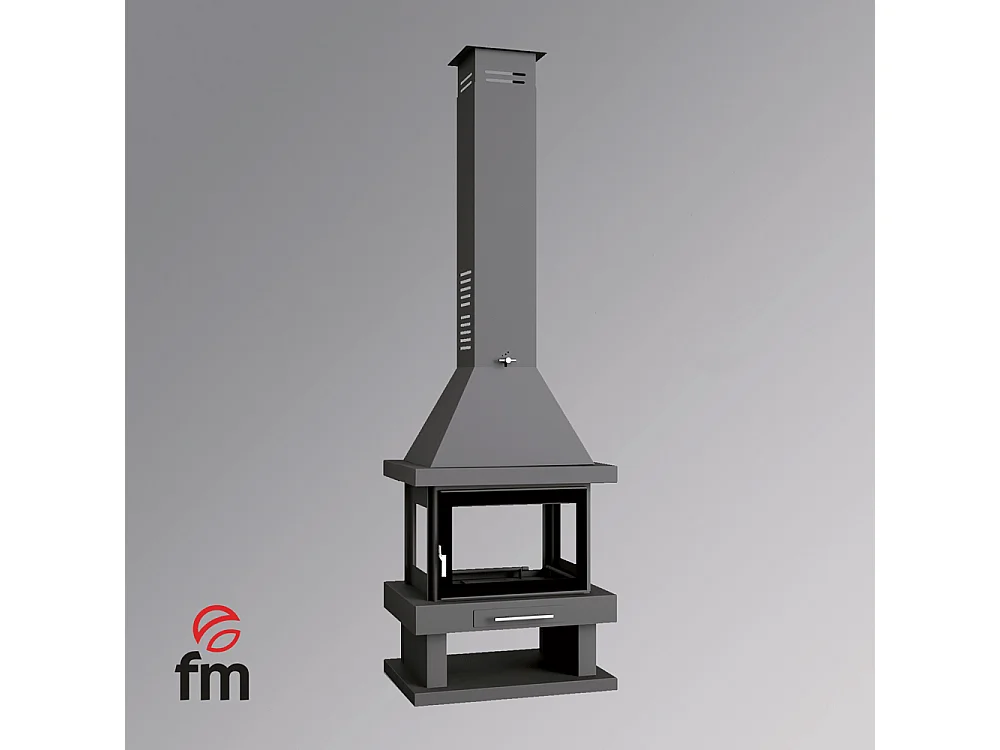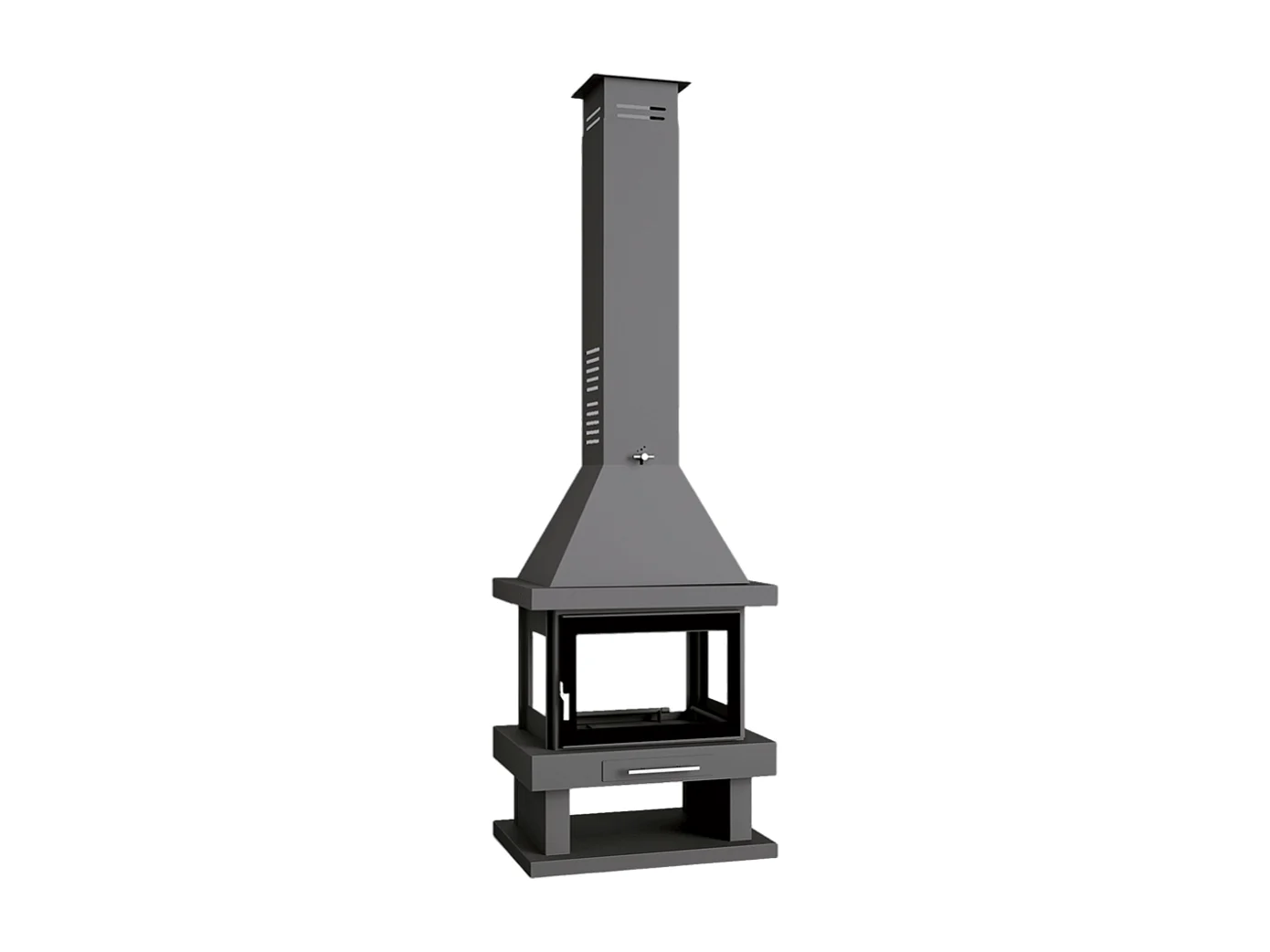 Cheminée centrale en acier, bûcher inférieur - CalorDesign - sérigraphié sur la porte uniquement