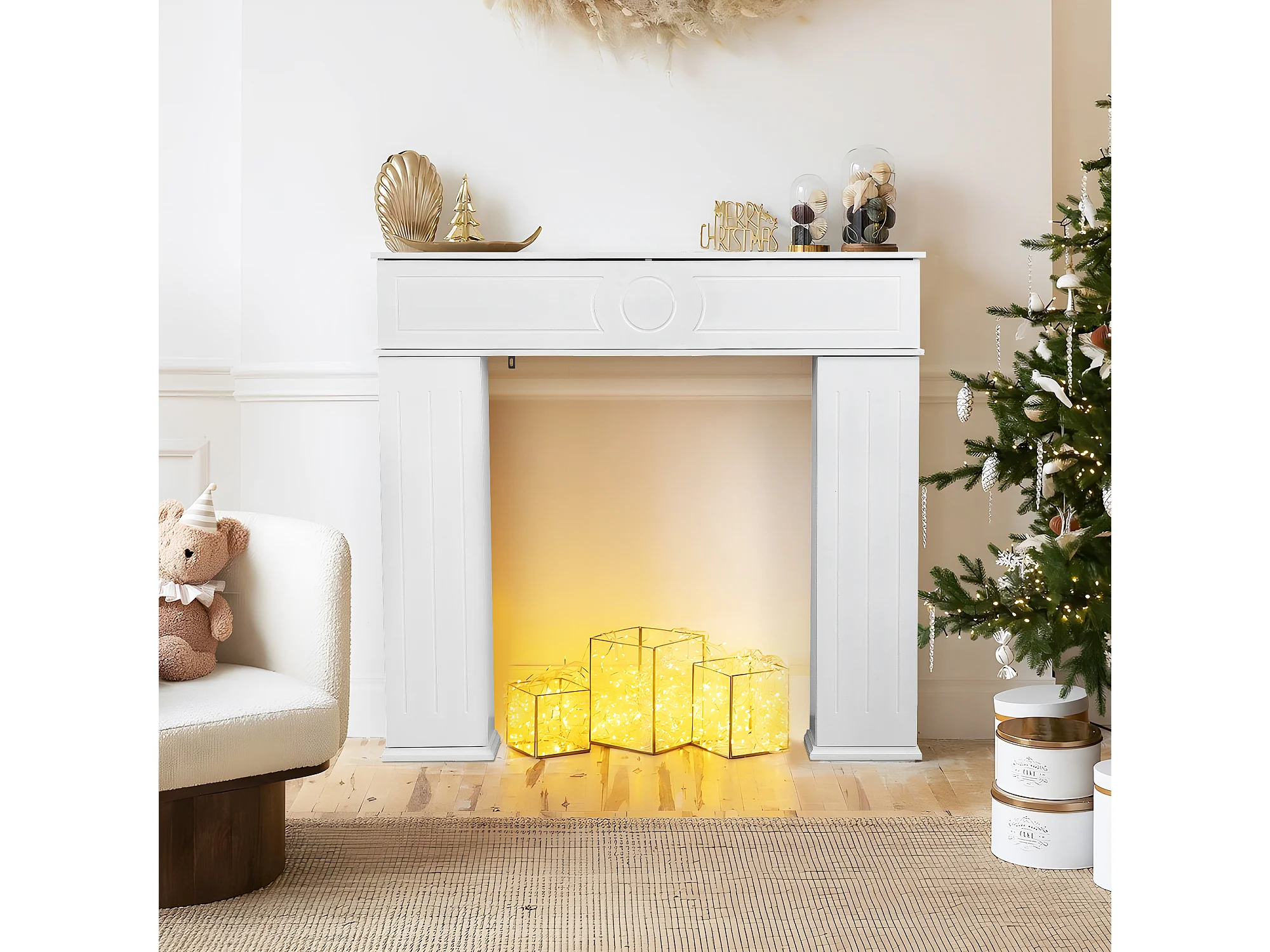Cheminée décorative blanche à 3 portes et rangement XL – Console en MDF pour salon et chambre