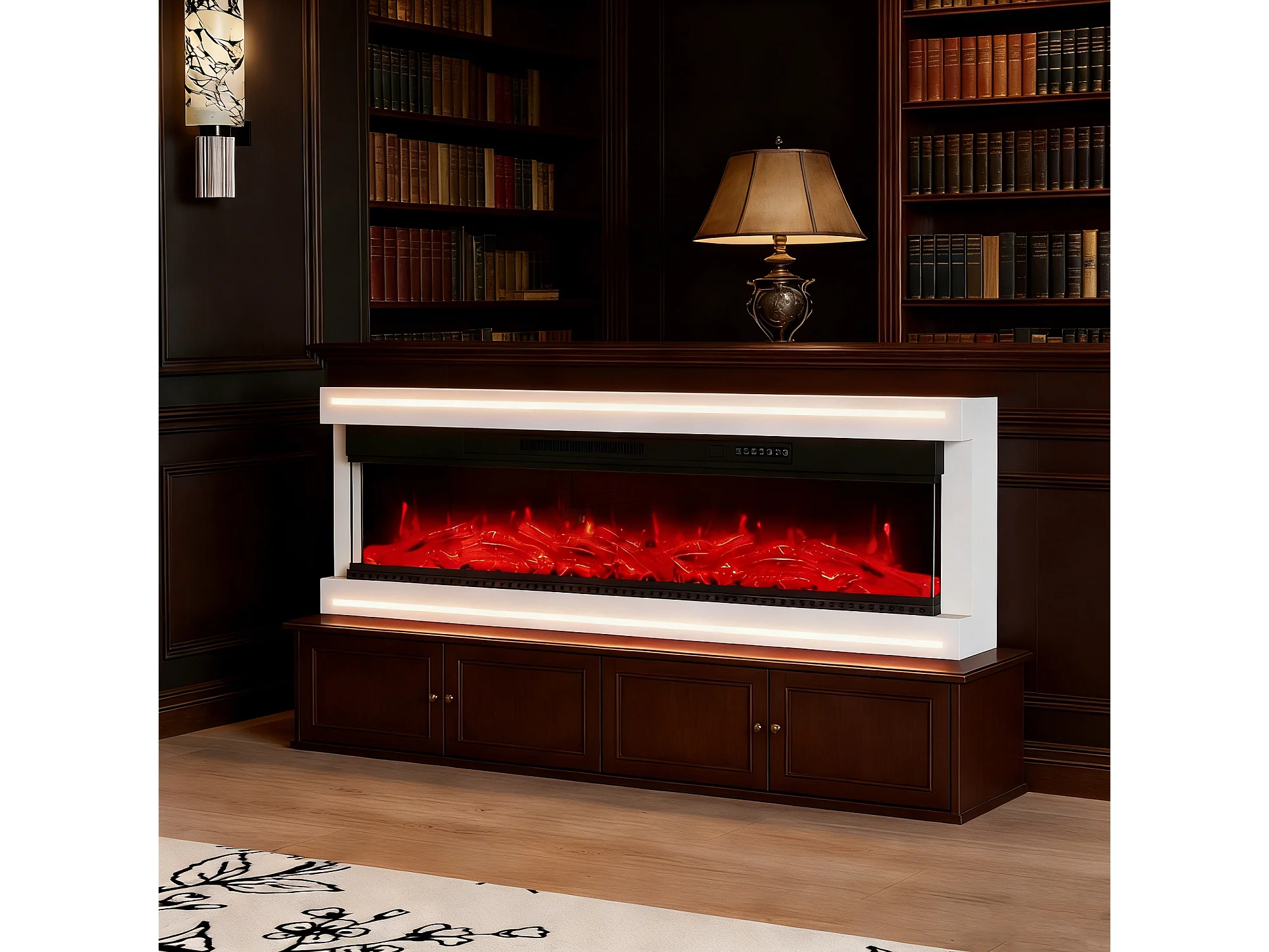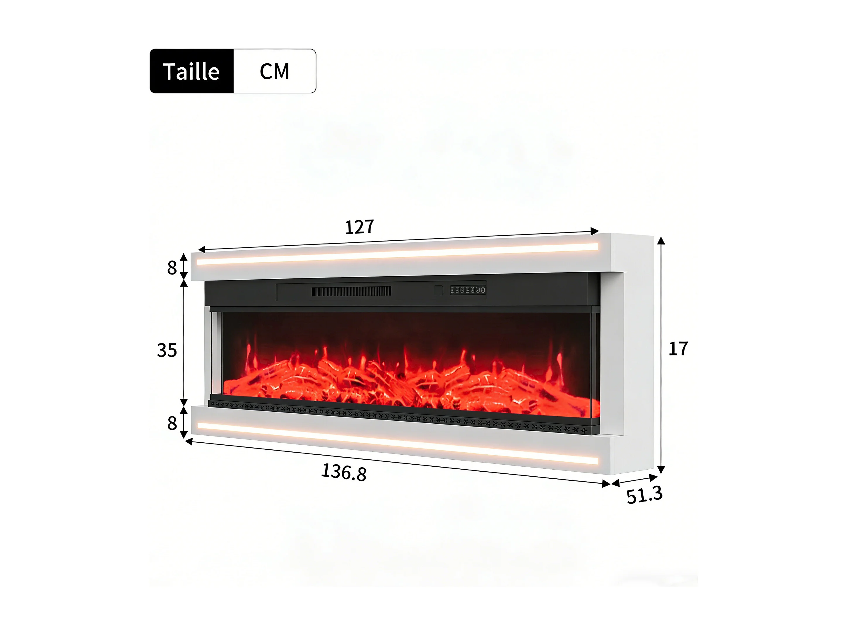 Cheminée électrique 750w et 1500w , cheminée murale encastrable effet flammes LED minuterie température luminosité réglables télécommande fournie, blanc