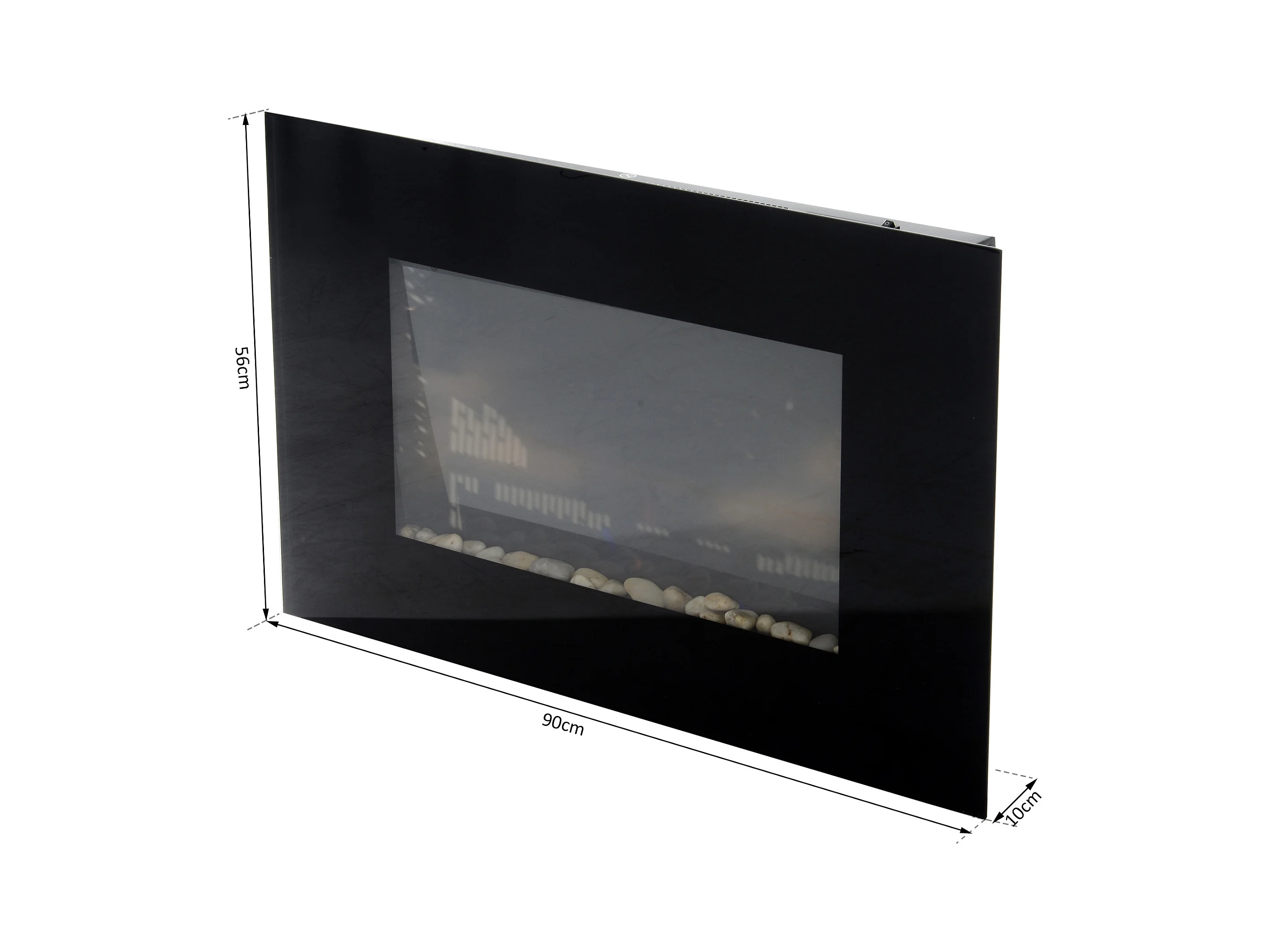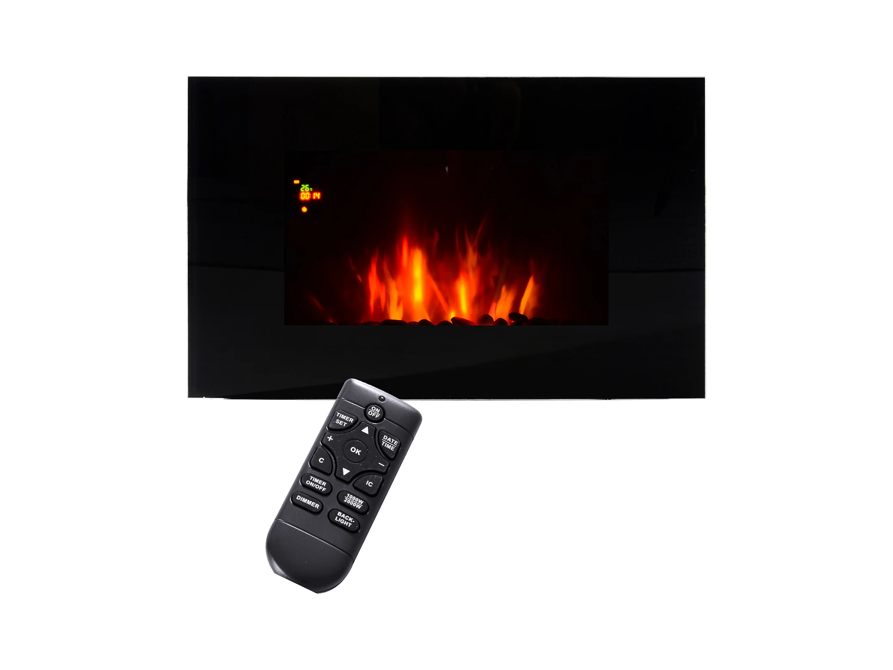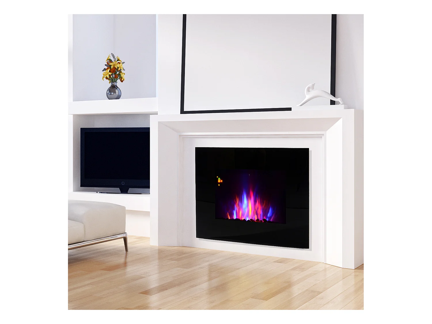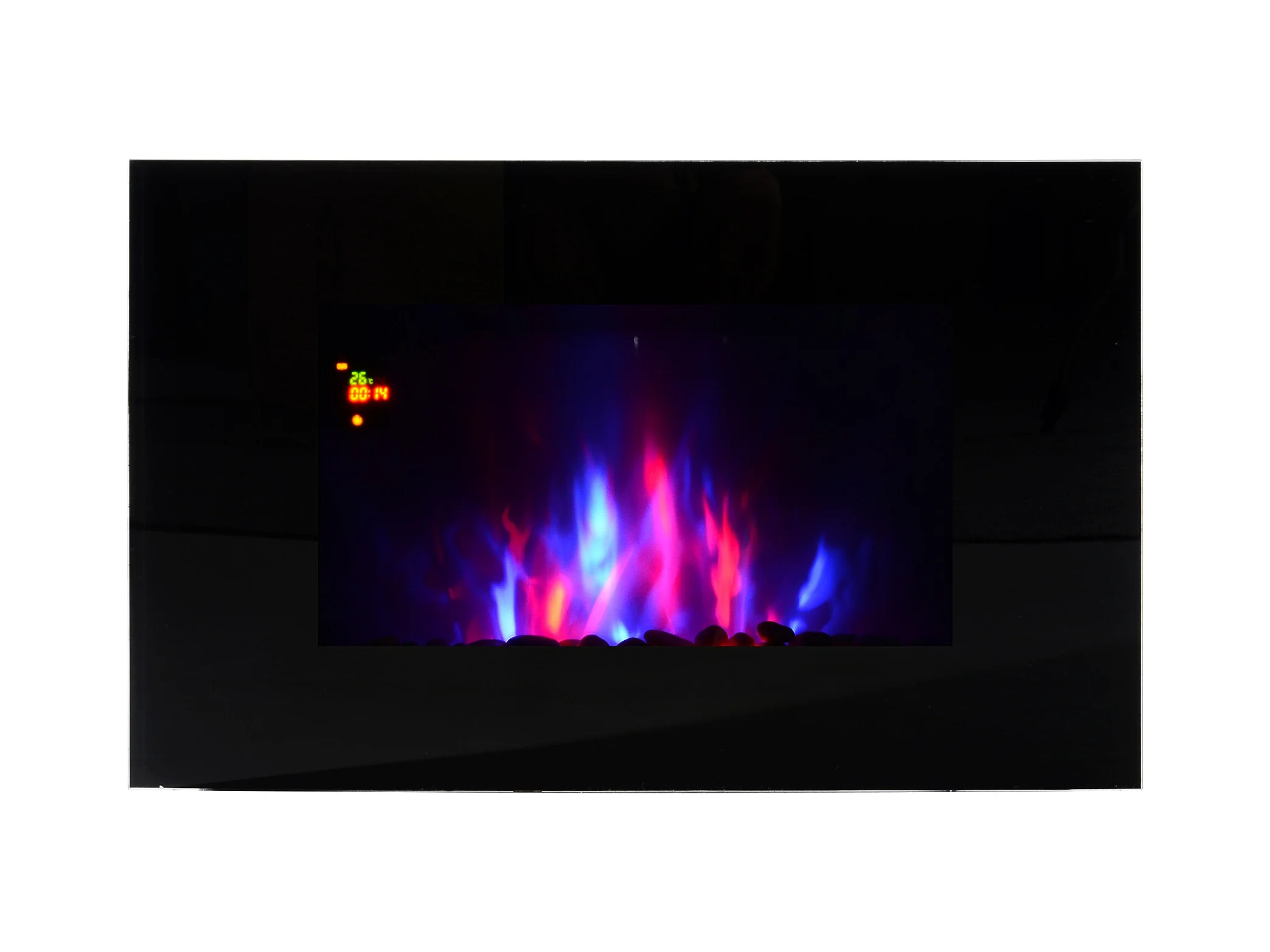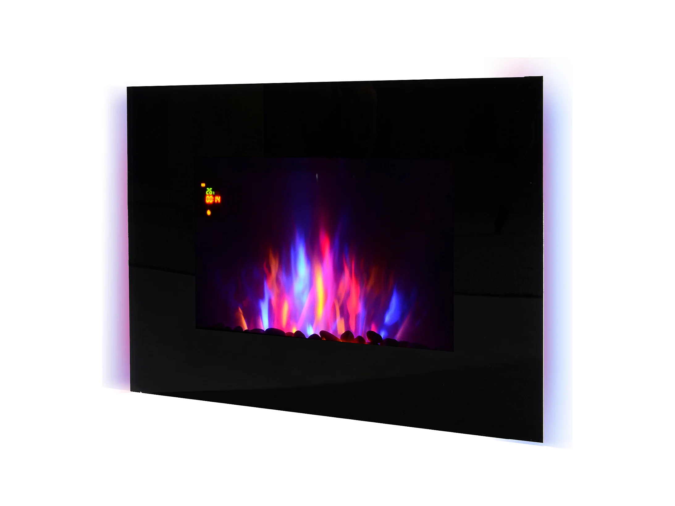 Cheminée électrique murale LED 7 effets flammes + 7 couleurs ambiance + galets télécommande thermostat 1000-2000 W minuterie noir