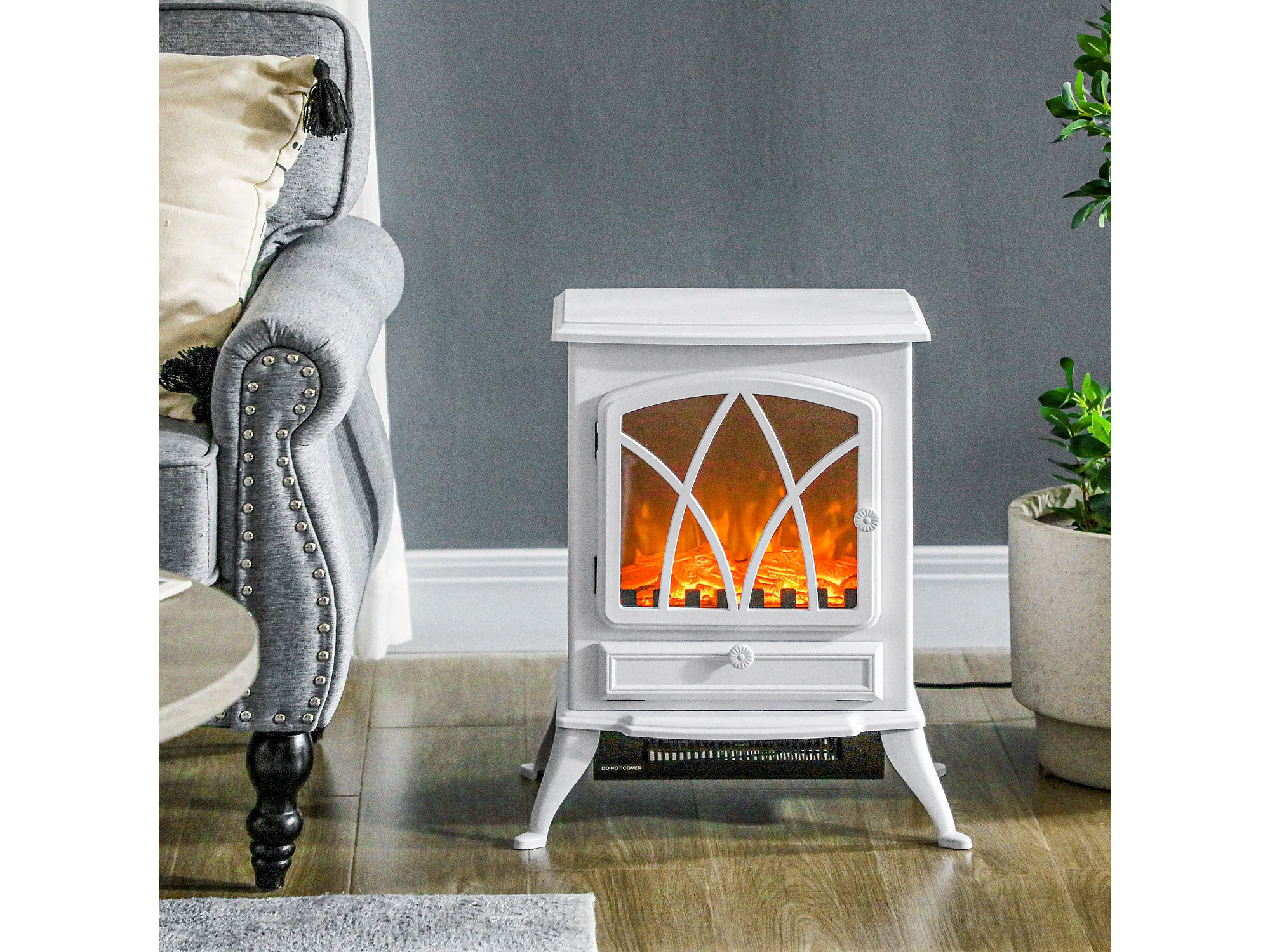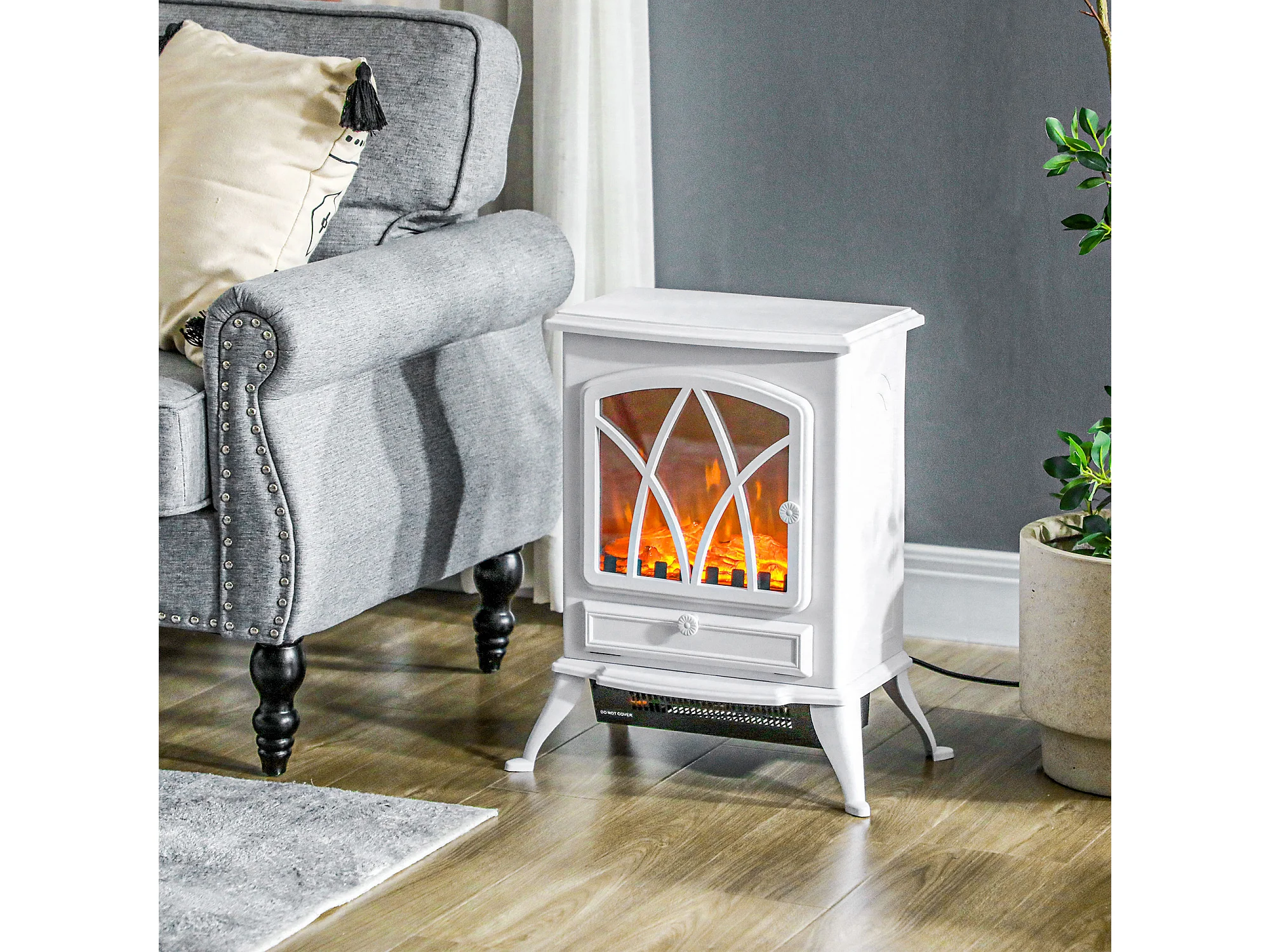 Cheminée électrique poêle style rétro thermostat 750-1500 W blanc