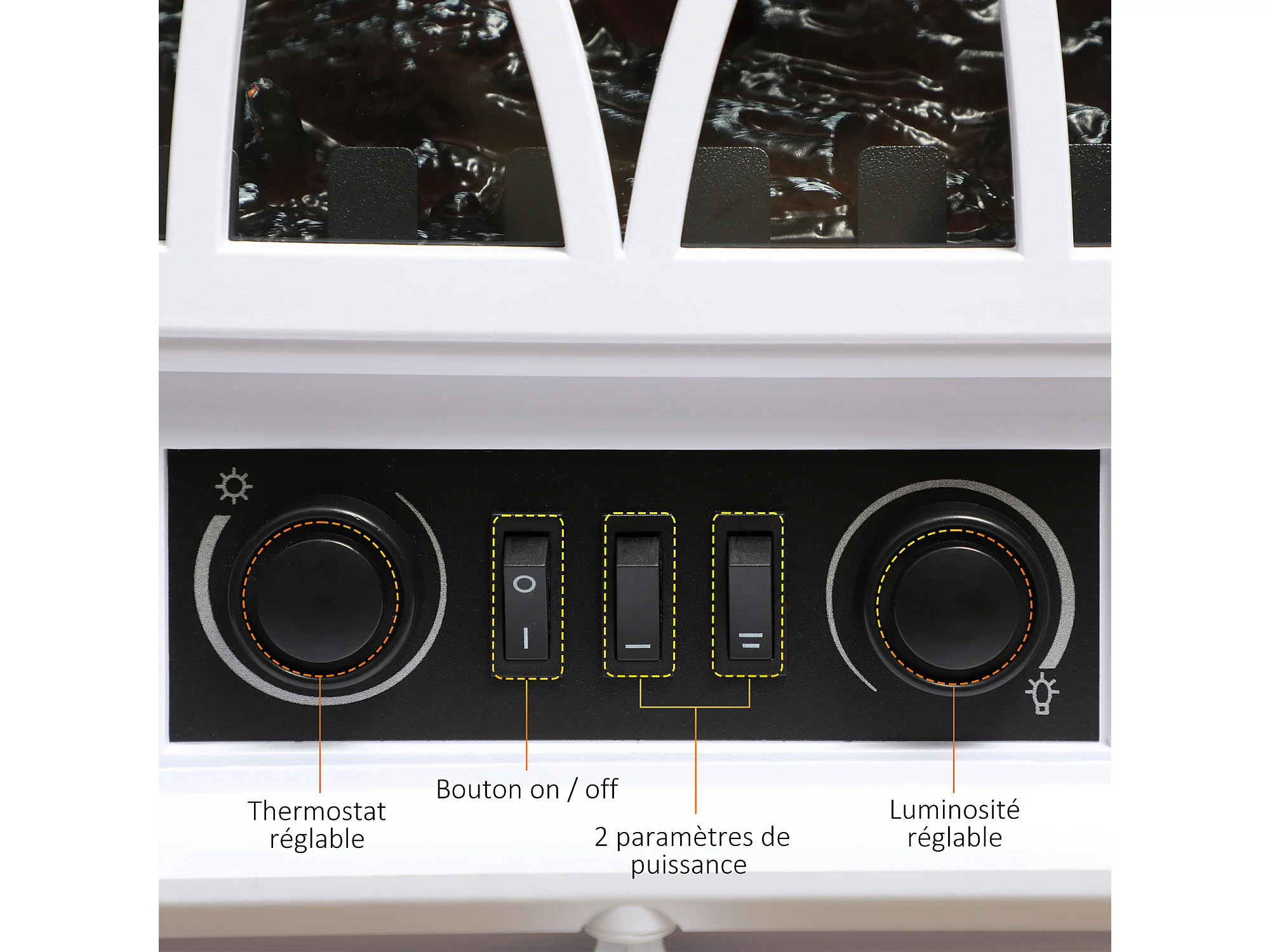Cheminée électrique poêle style rétro thermostat 1000-2000 W blanc