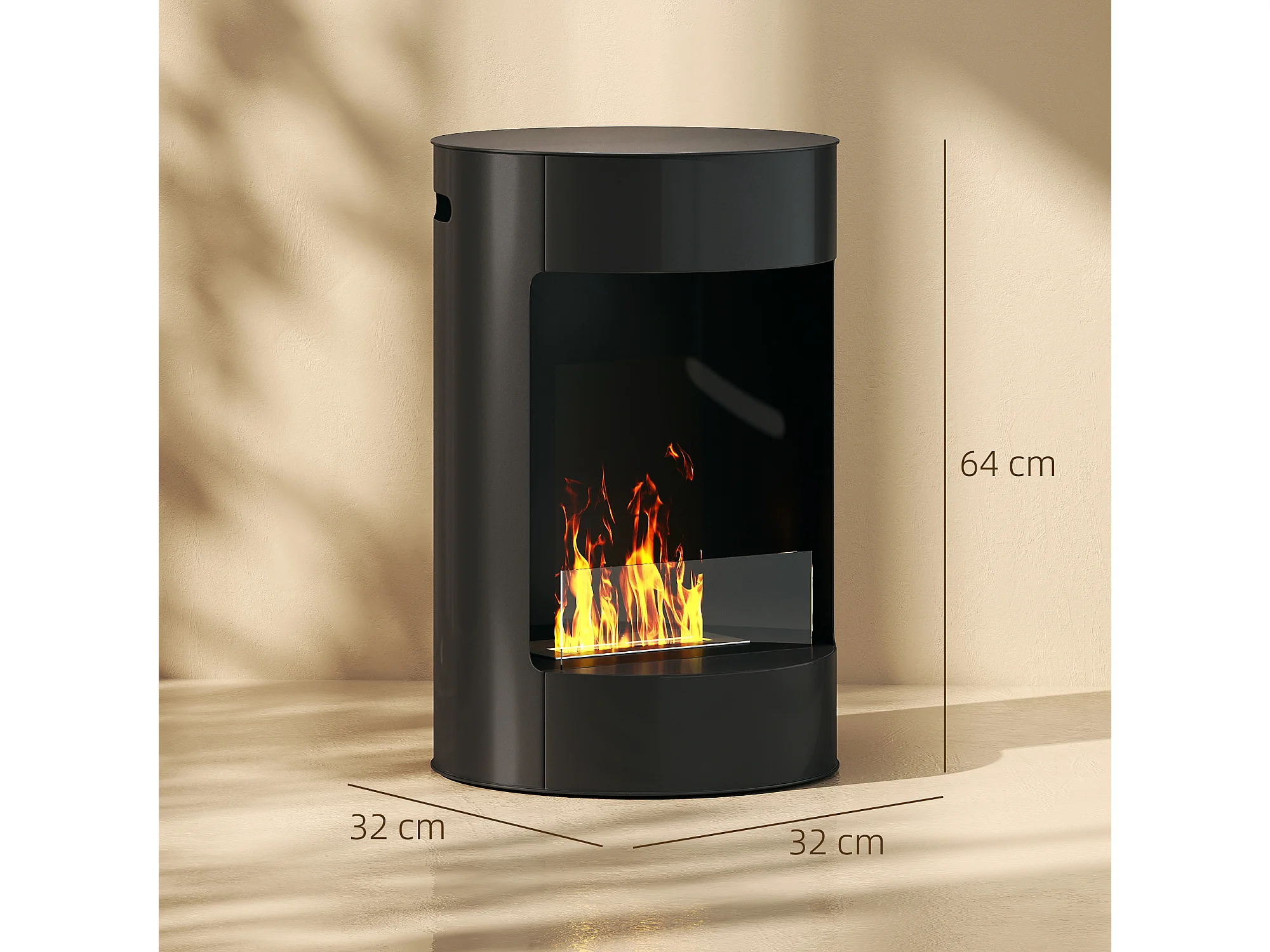 Cheminée bioéthanol sur pied - 0,9L - 38 x 22 x 54 cm - acier inox. noir verre trempé