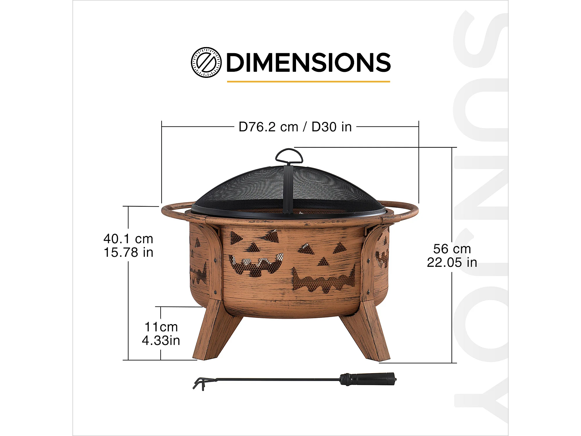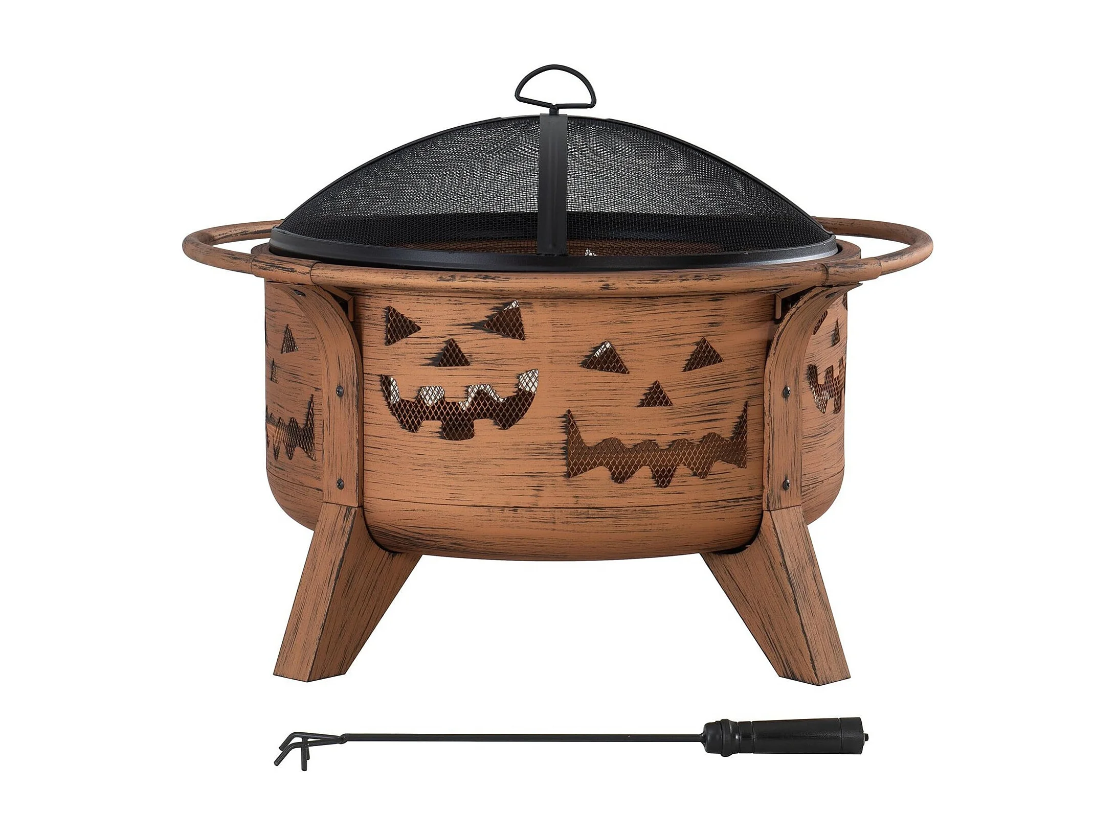 Cheminée HEKLA 76 cm en acier cuivré avec pare-étincelles et tisonnier, Foyer pour Noël- Motif citrouille d'Halloween