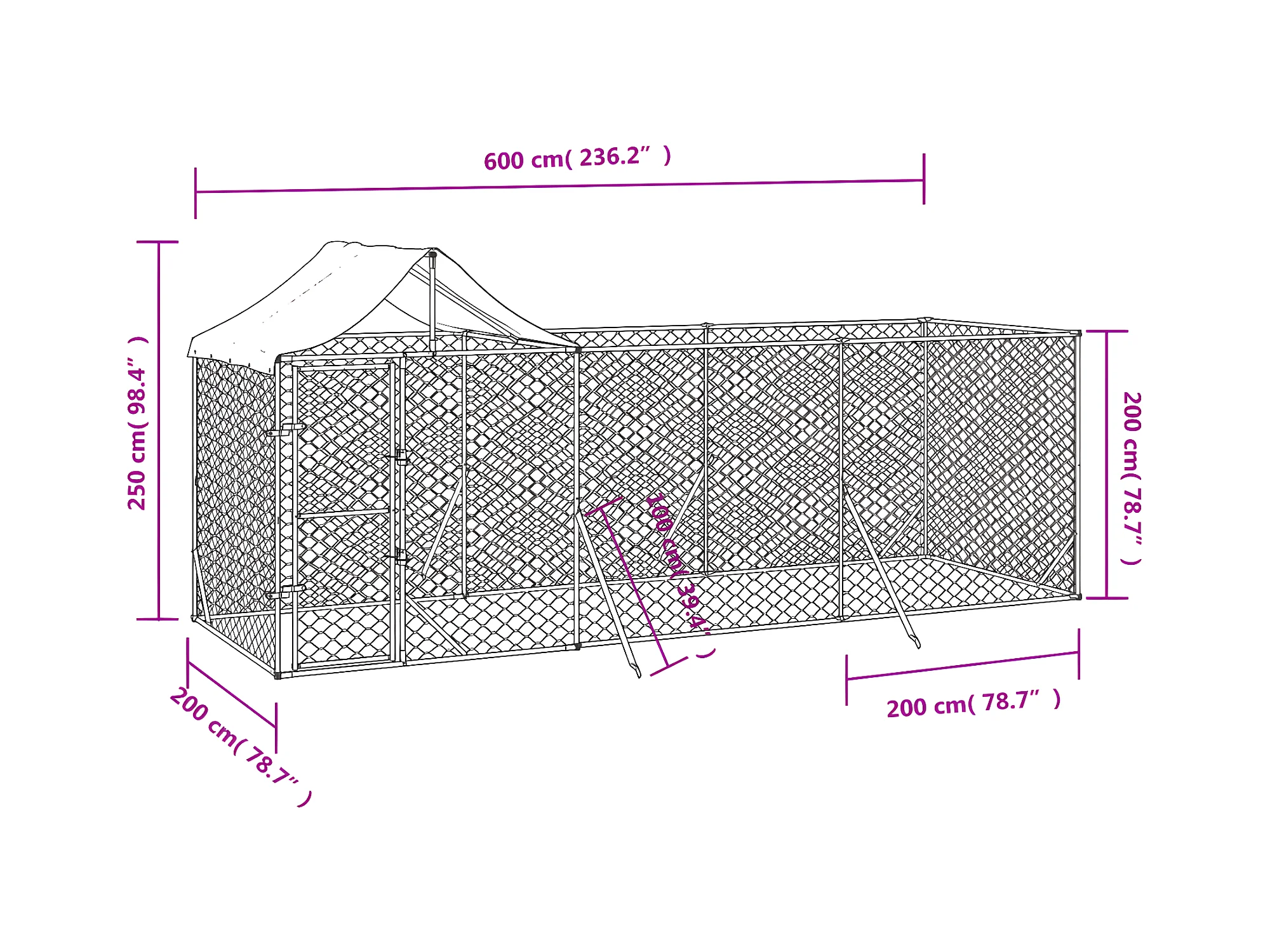 Chenil d'extérieur pour chiens avec toit argenté 6x2x2,5 m RG3Q63726