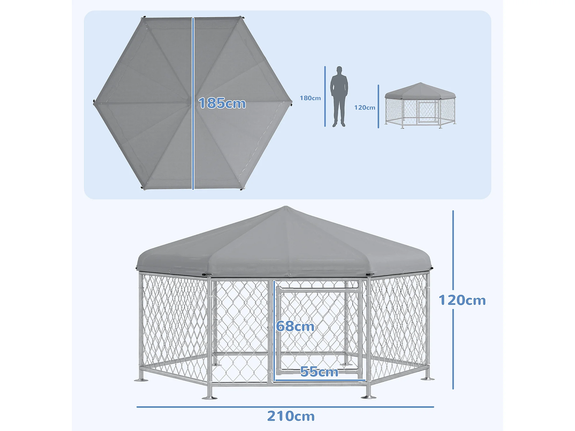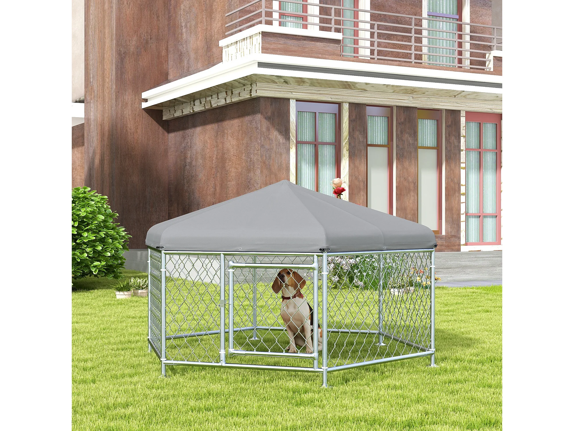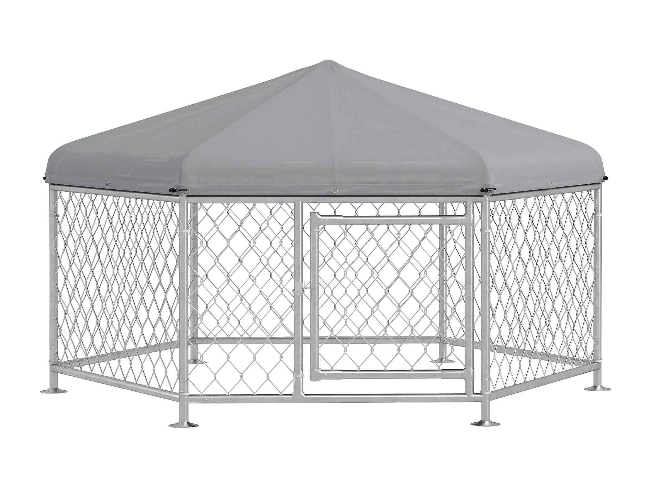 Chenil pour chien entièrement couvert - enclos chien - dim. 210L x 185l x 120H cm - porte verrouillable - acier galvanisé gris