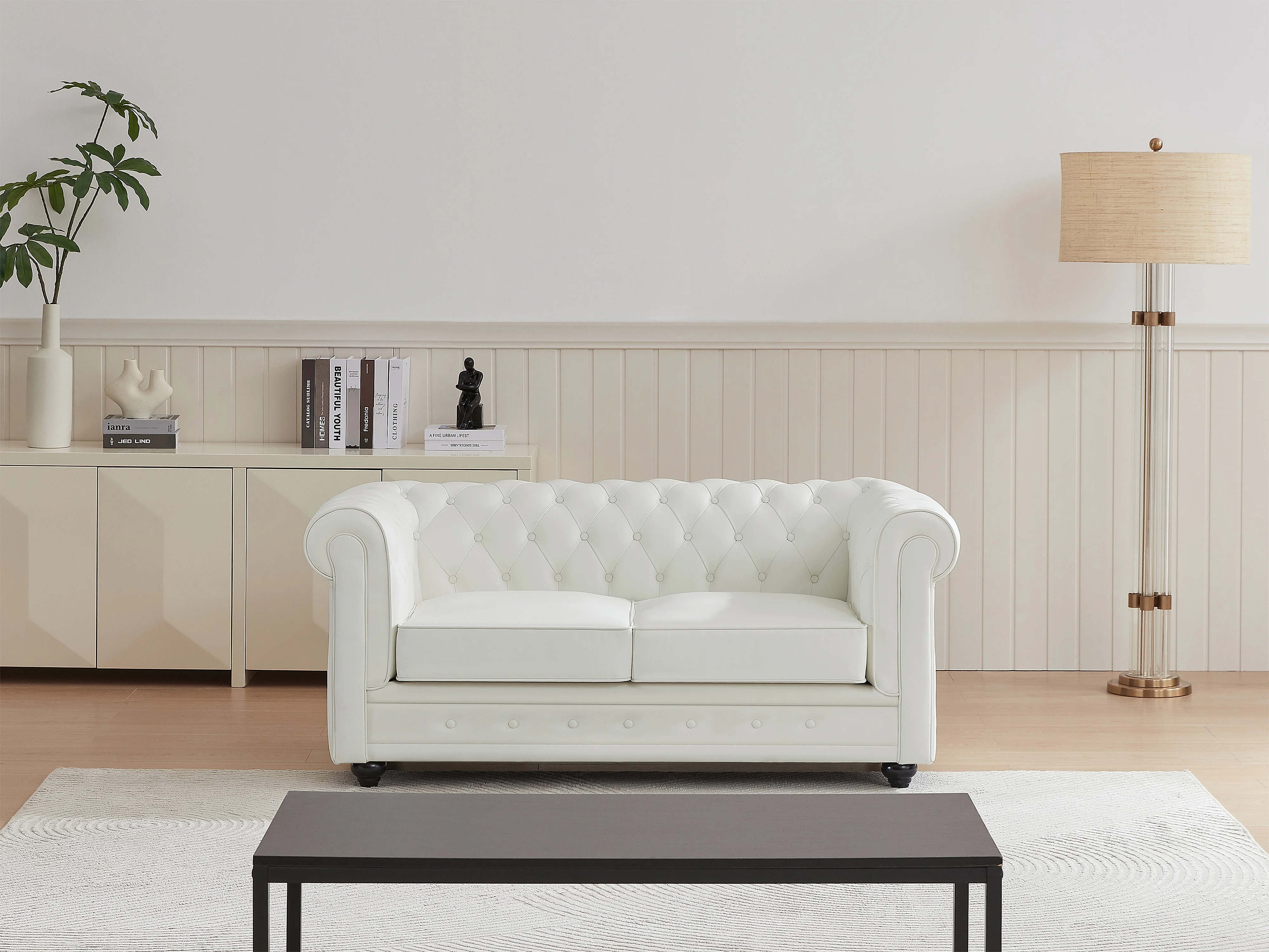 Canapé 2 places en cuir de buffle blanc CHESTERFIELD
