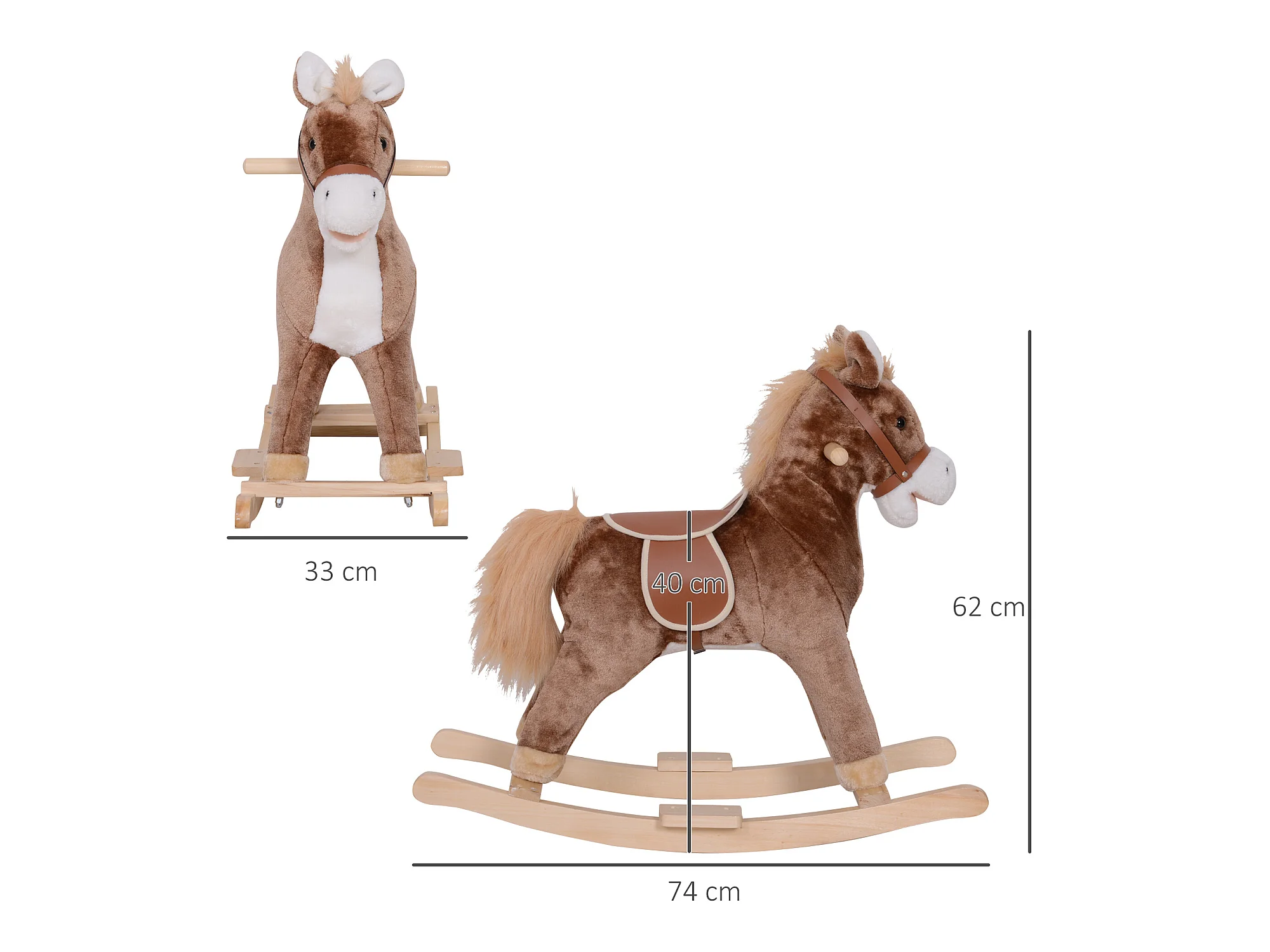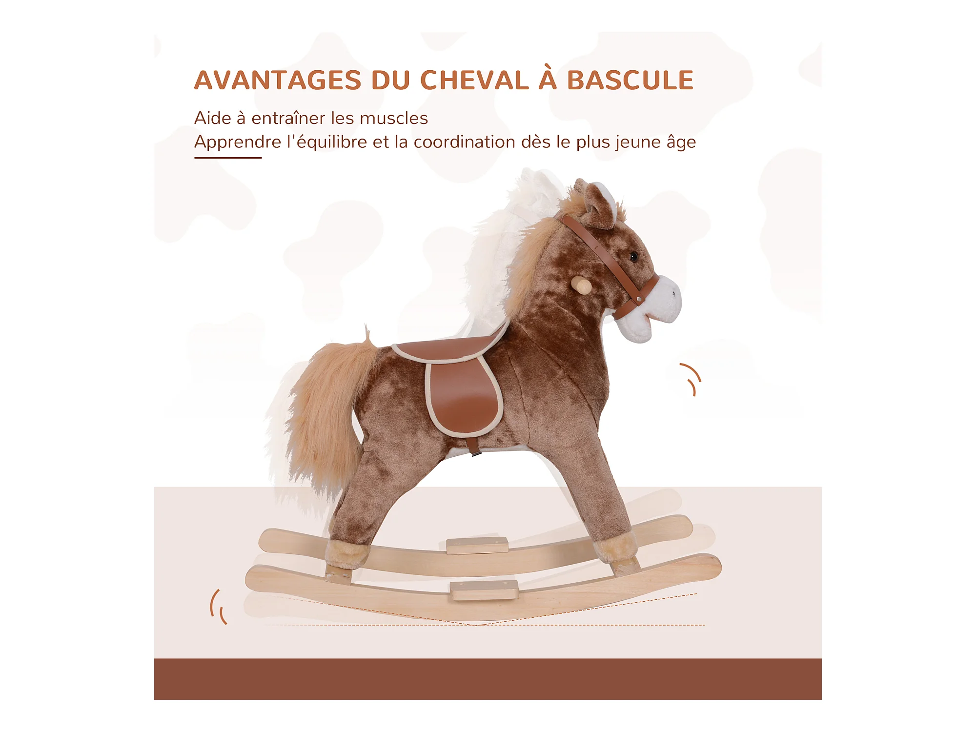 Cheval à bascule cheval de cowboy selle grand confort peluche courte douce bois peuplier marron
