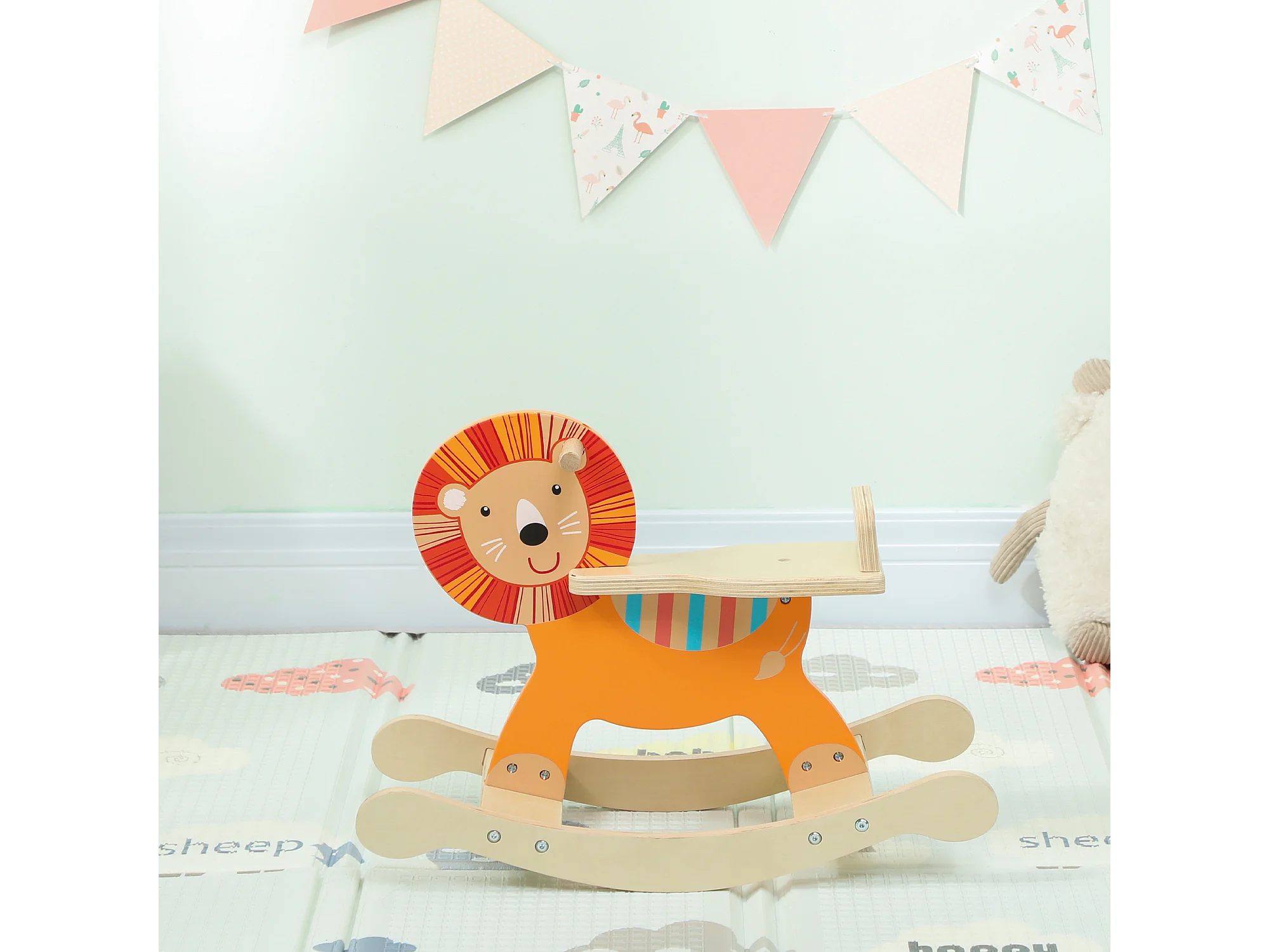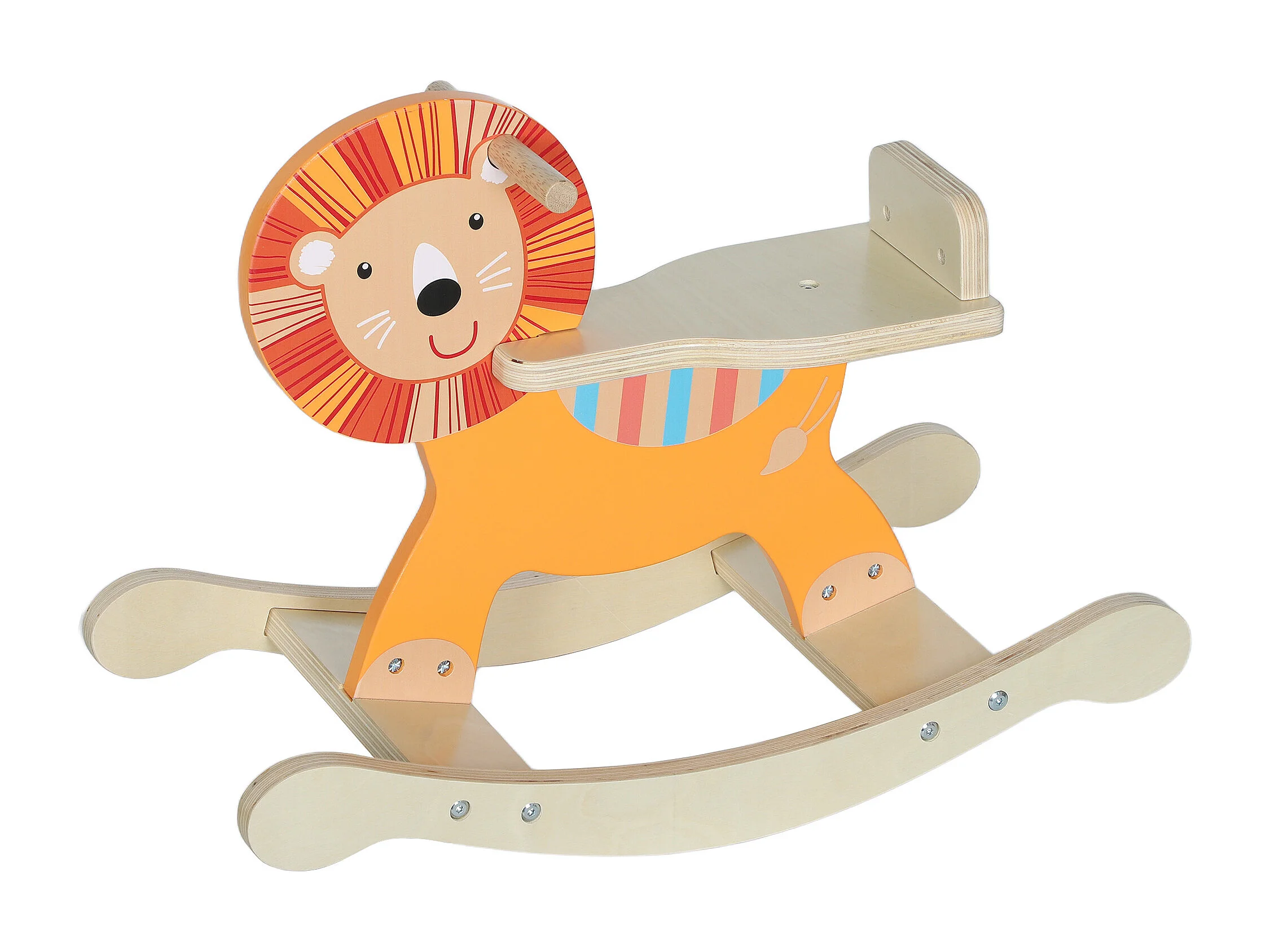 Cheval à bascule en bois - jouet à bascule lion - poignées, dossier - bois contreplaqué orange