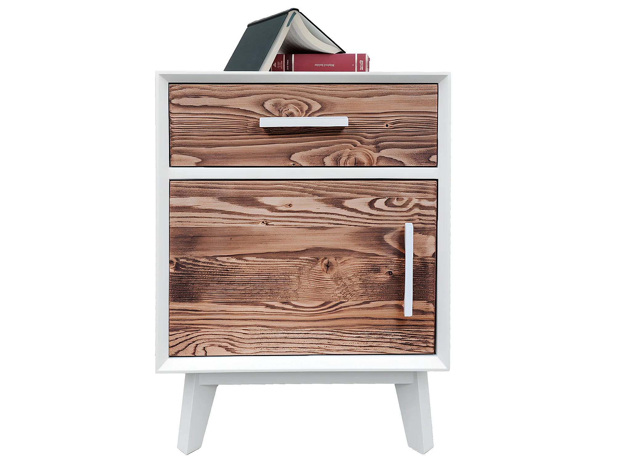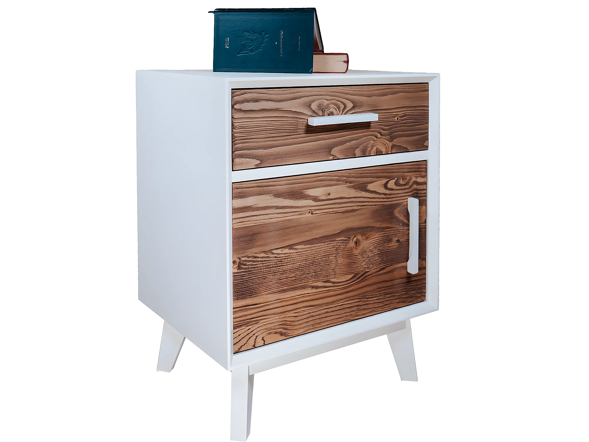 Chevet 1 porte 1 tiroir Nostalgie - Blanc et bois