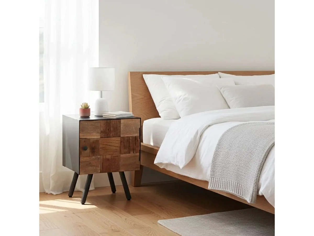 Chevet 1 porte en acier gris mat et façades en bois massif - FULBERT