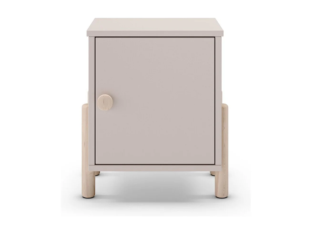 Chevet 1 porte en MDF et pin massif laqué crème pieds en pin naturel - ENORA