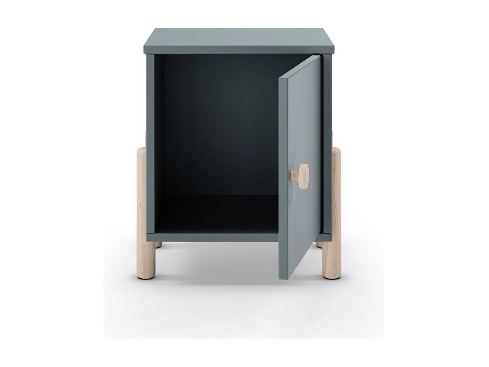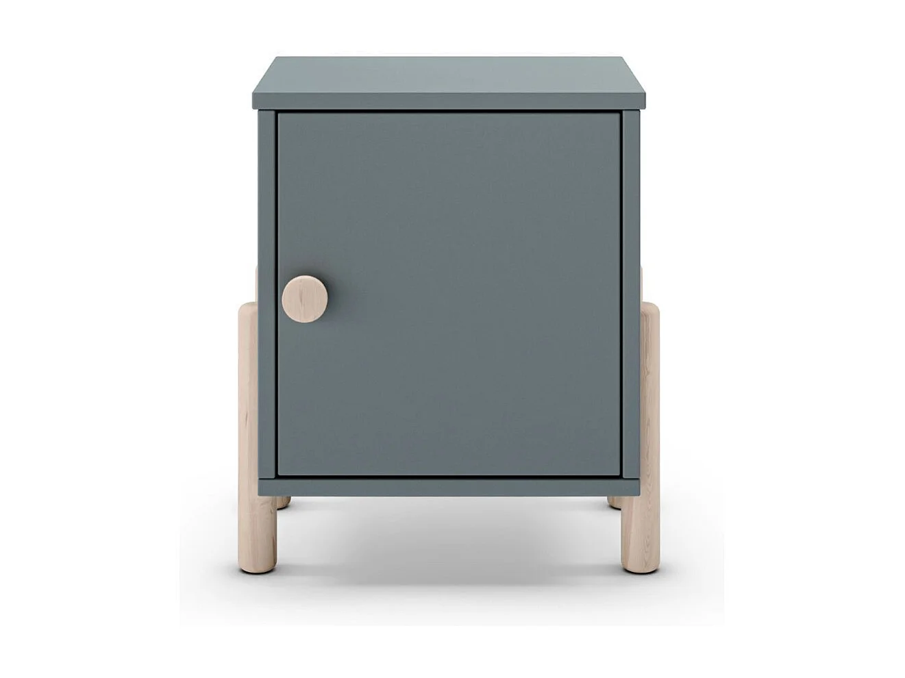 Chevet 1 porte en MDF et pin massif laqué vert kaki pieds en pin naturel - ENORA