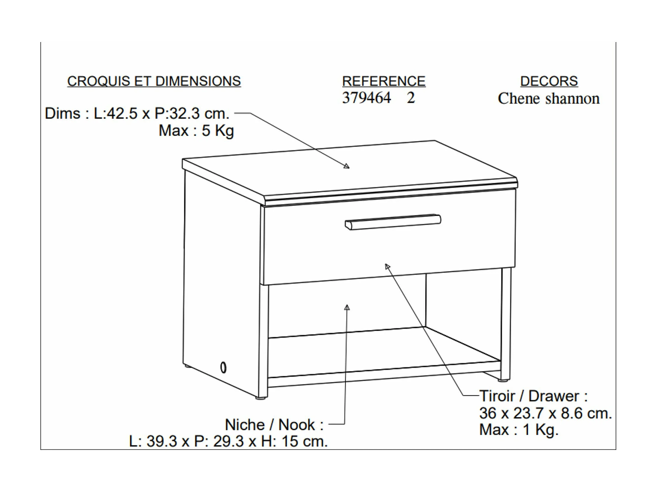 Chevet 1 tiroir 1 niche en bois chêne shannon - CH158