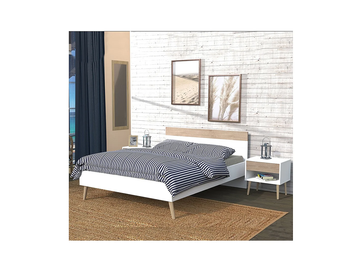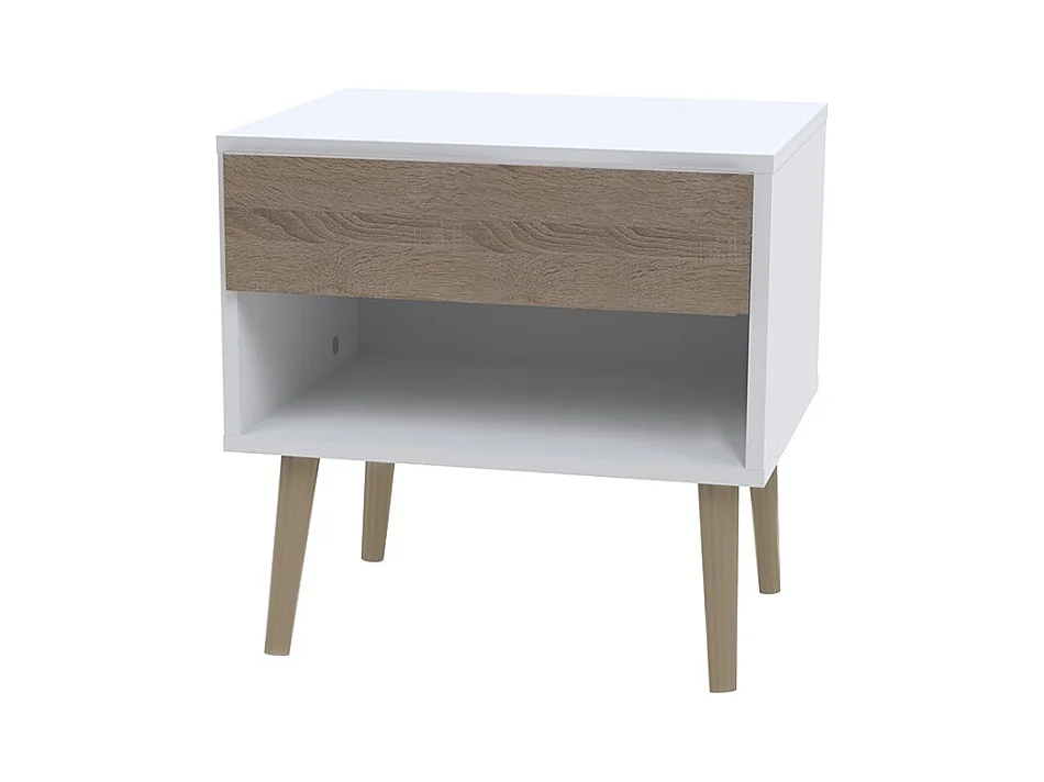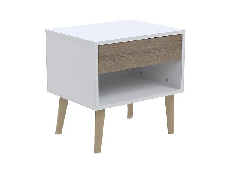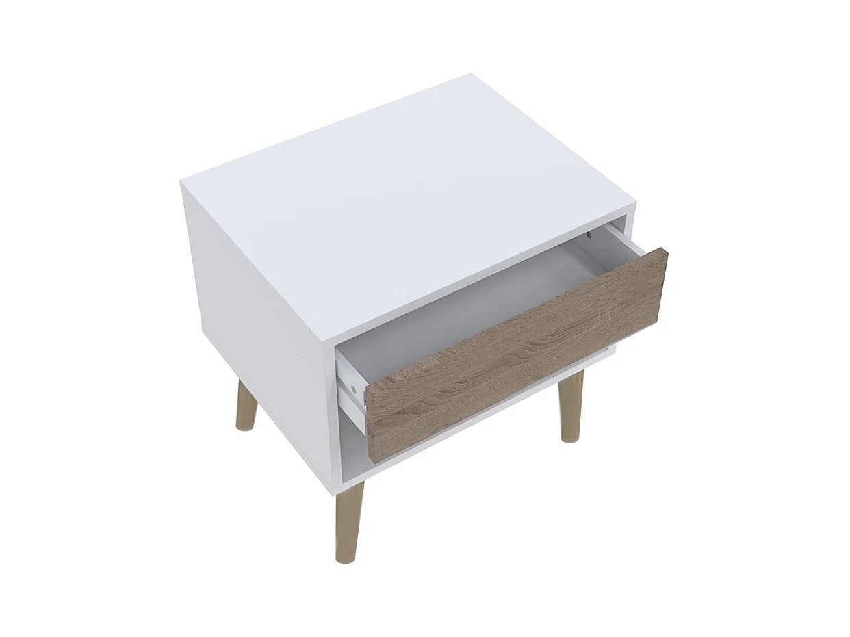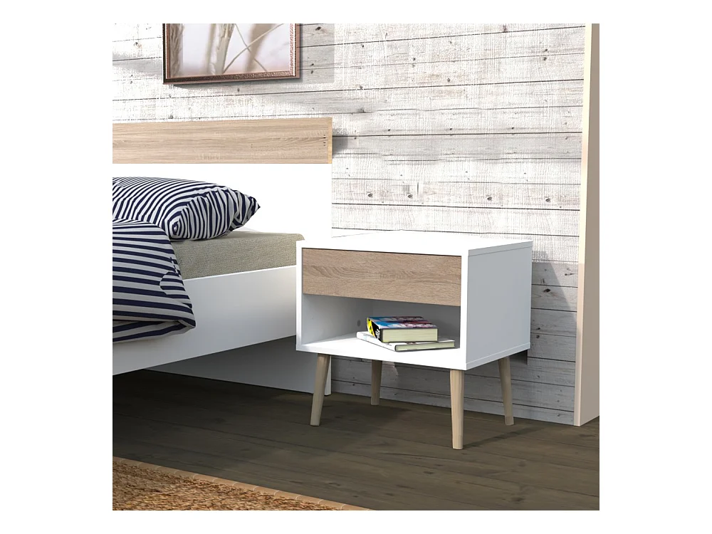 Chevet 1 tiroir CAMPER / Décor Blanc & chêne blanchi