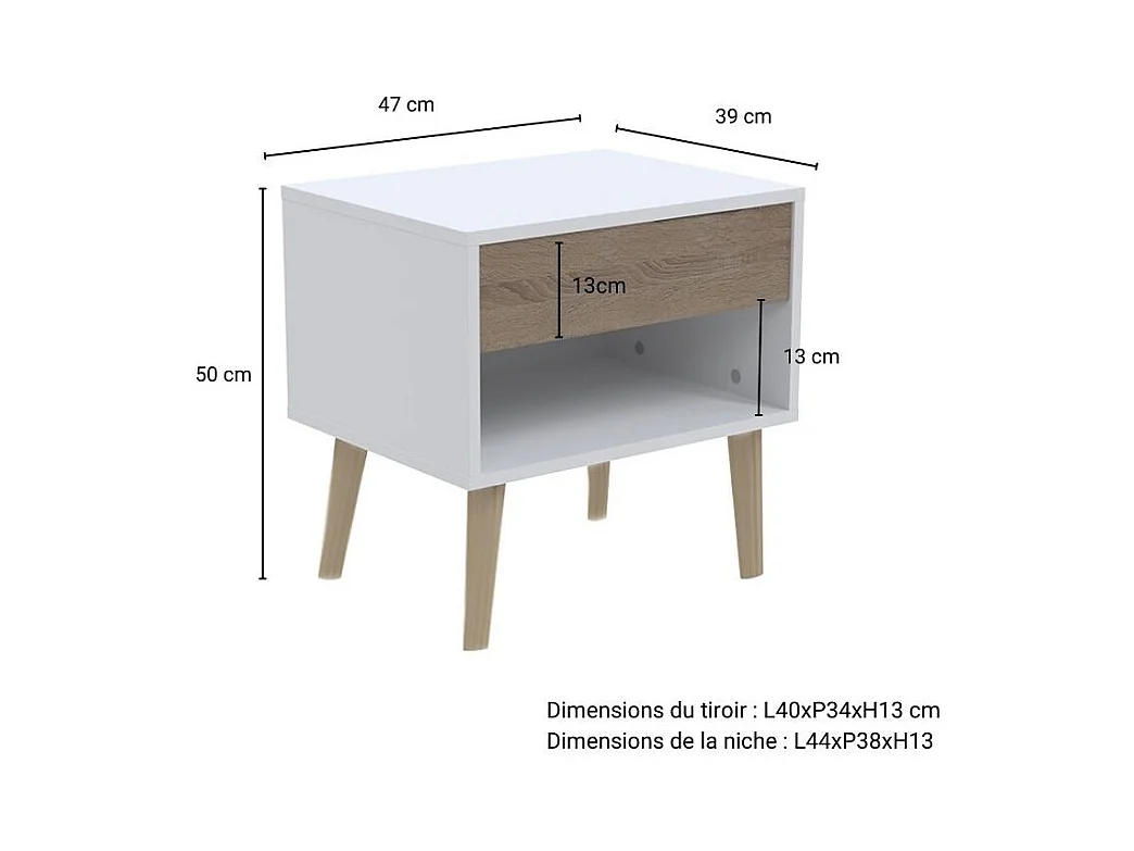 Table de chevet 1 tiroir 1 niche Aksel Blanc