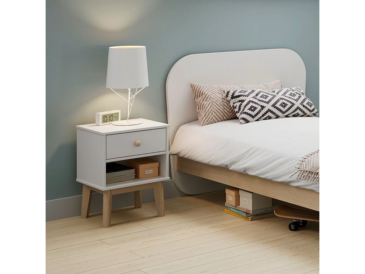 Chevet enfant scandinave blanche et pieds en bois de chêne Vanka