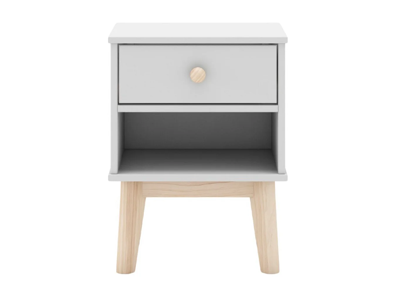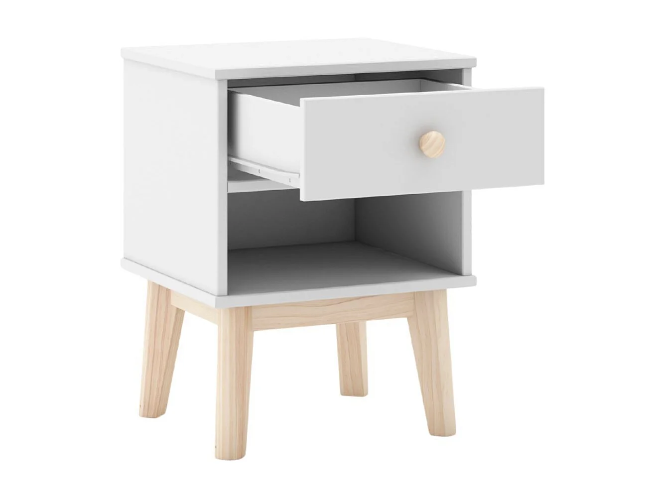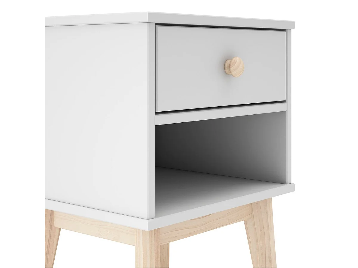 Chevet 1 tiroir et 1 niche en pin massif et MDF laqué blanc et naturel - KAINA