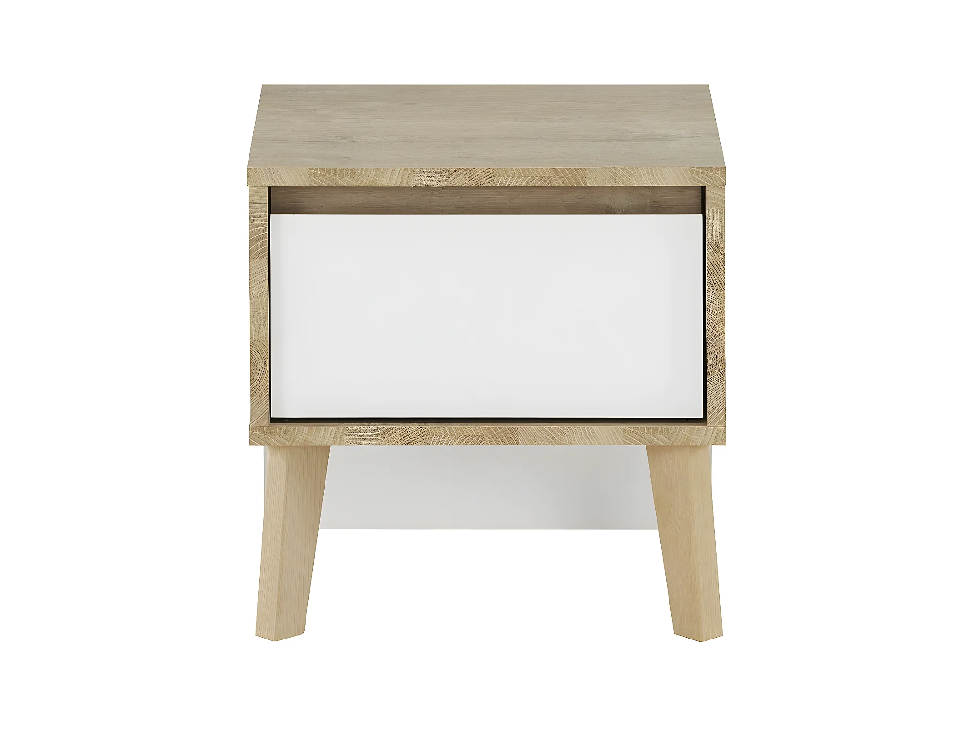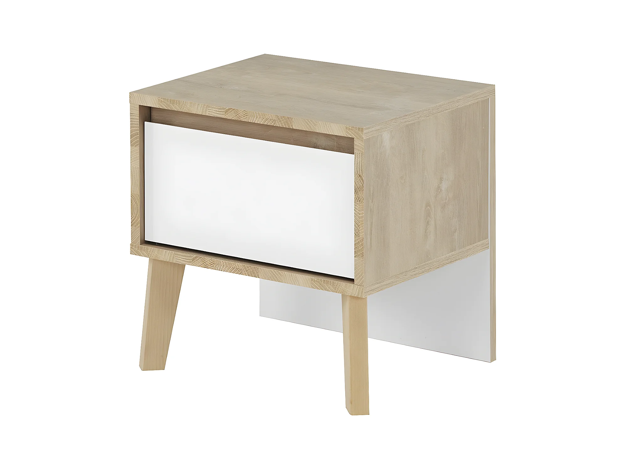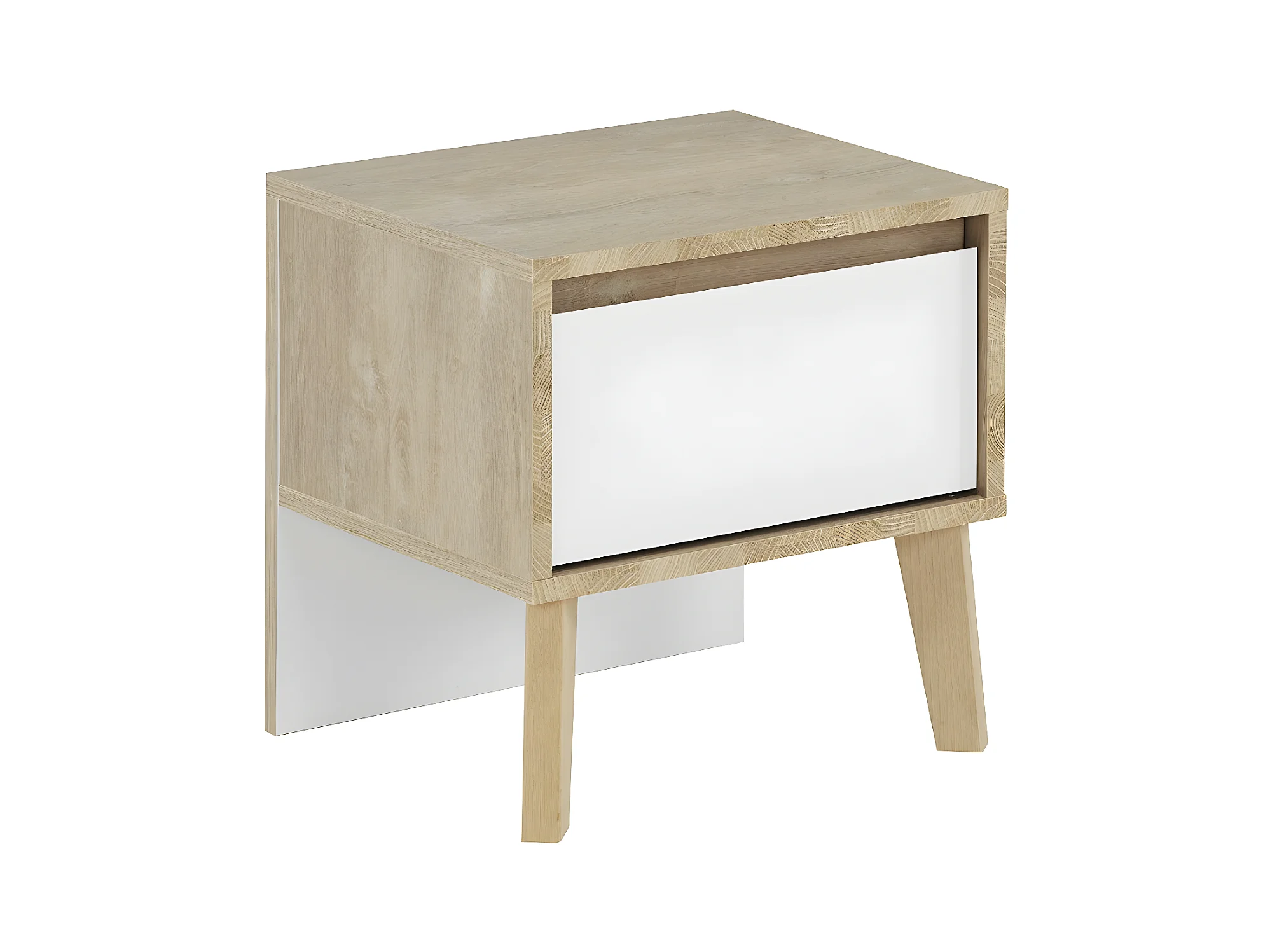 Chevet Roma avec 2 tiroirs en Couleur Blanc, Pieds et façades en Bois Naturel