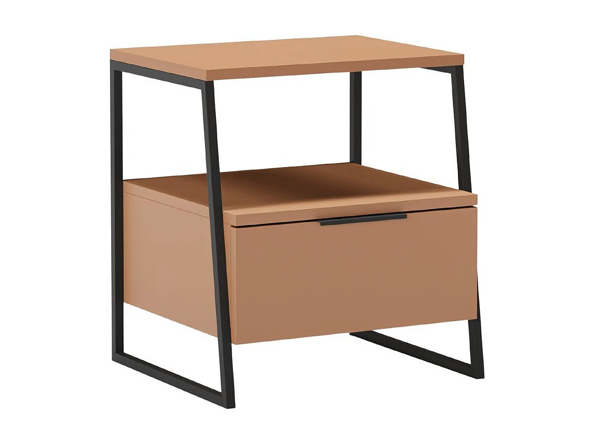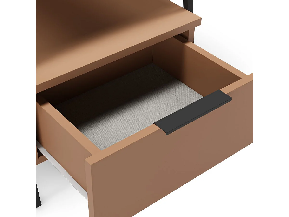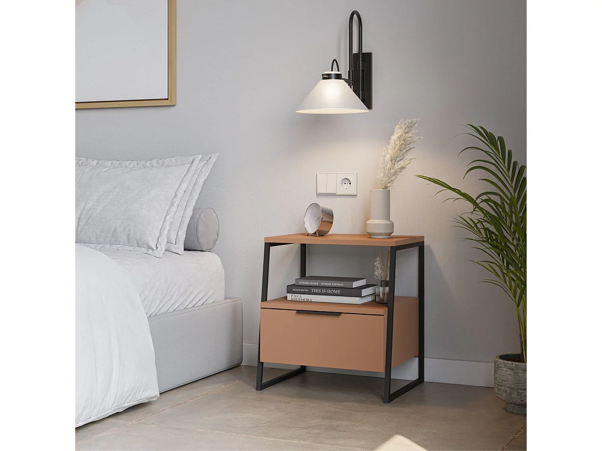 Chevet 2 niveaux avec 1 tiroir en mélaminé terracotta et structure en métal laqué noir - VELIANI