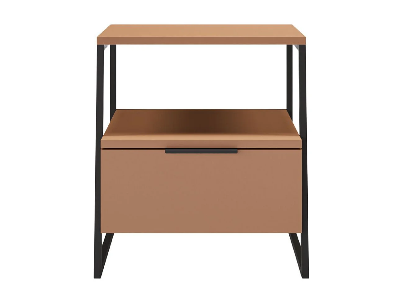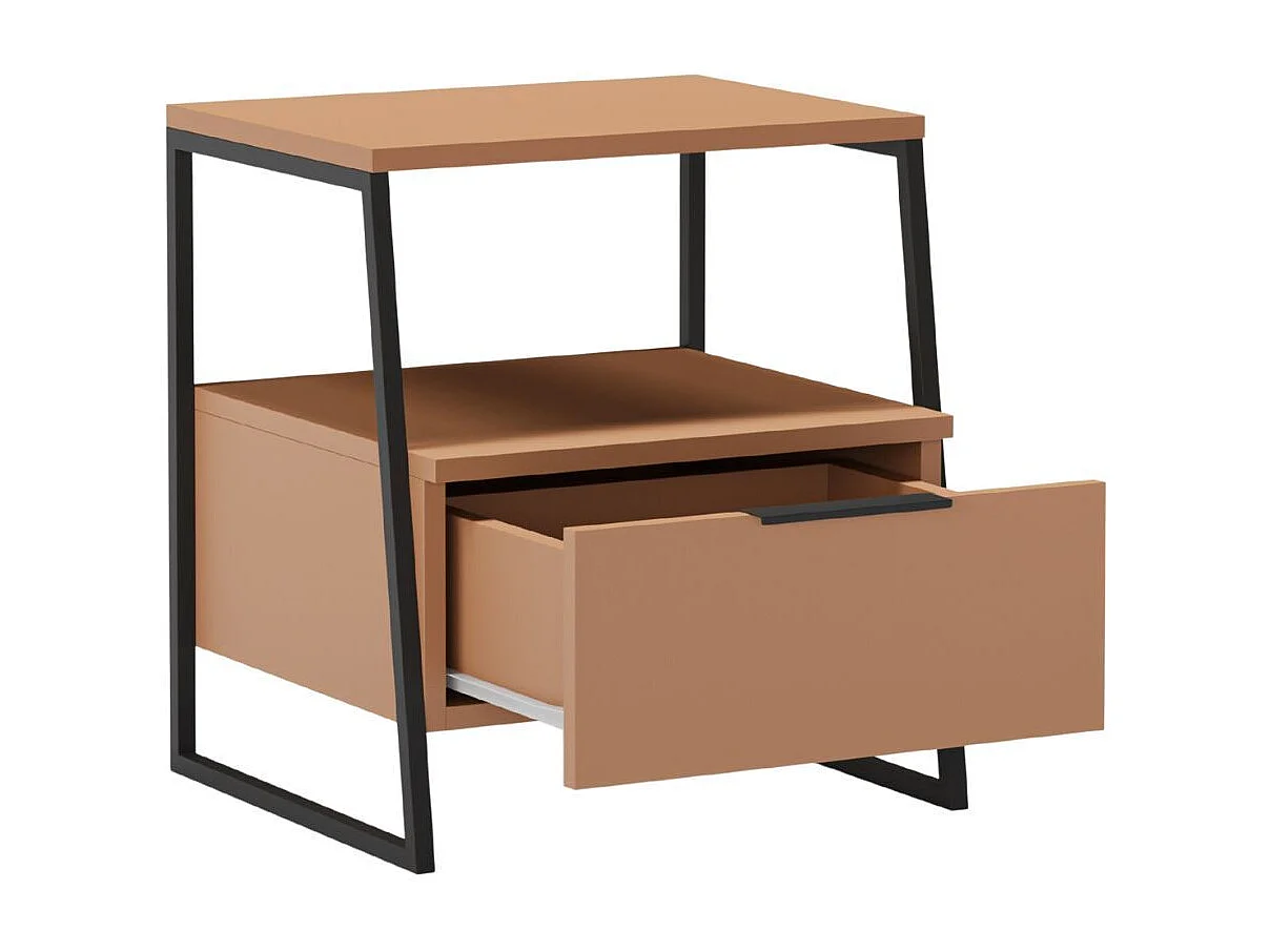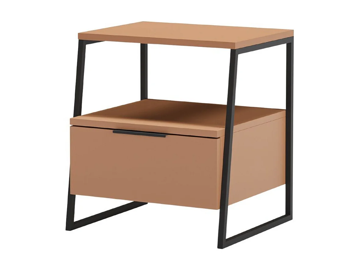 Chevet 2 niveaux avec 1 tiroir en mélaminé terracotta et structure en métal laqué noir - VELIANI