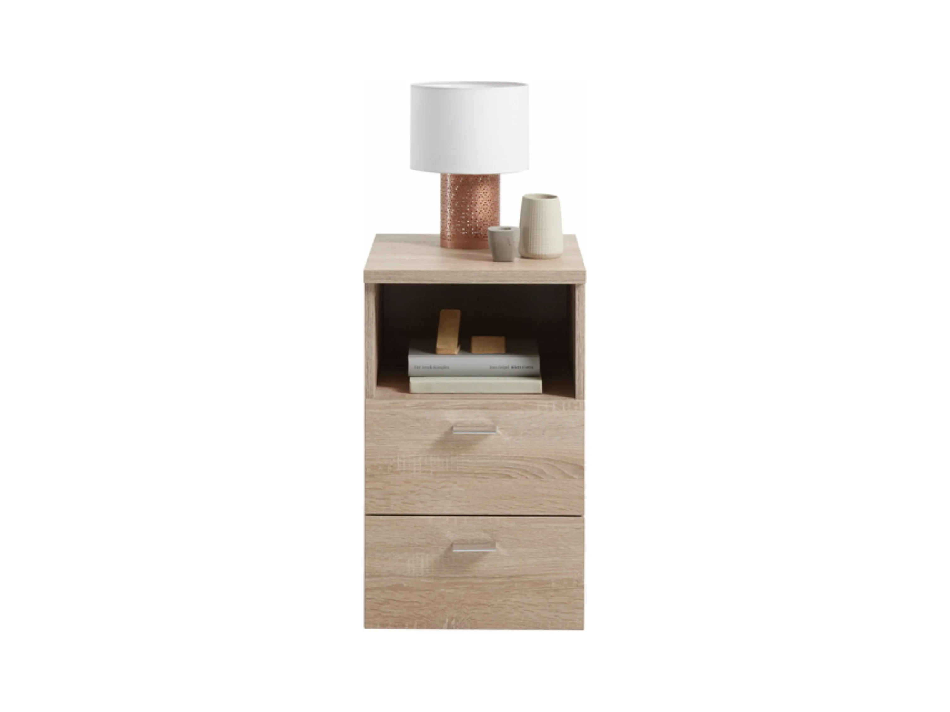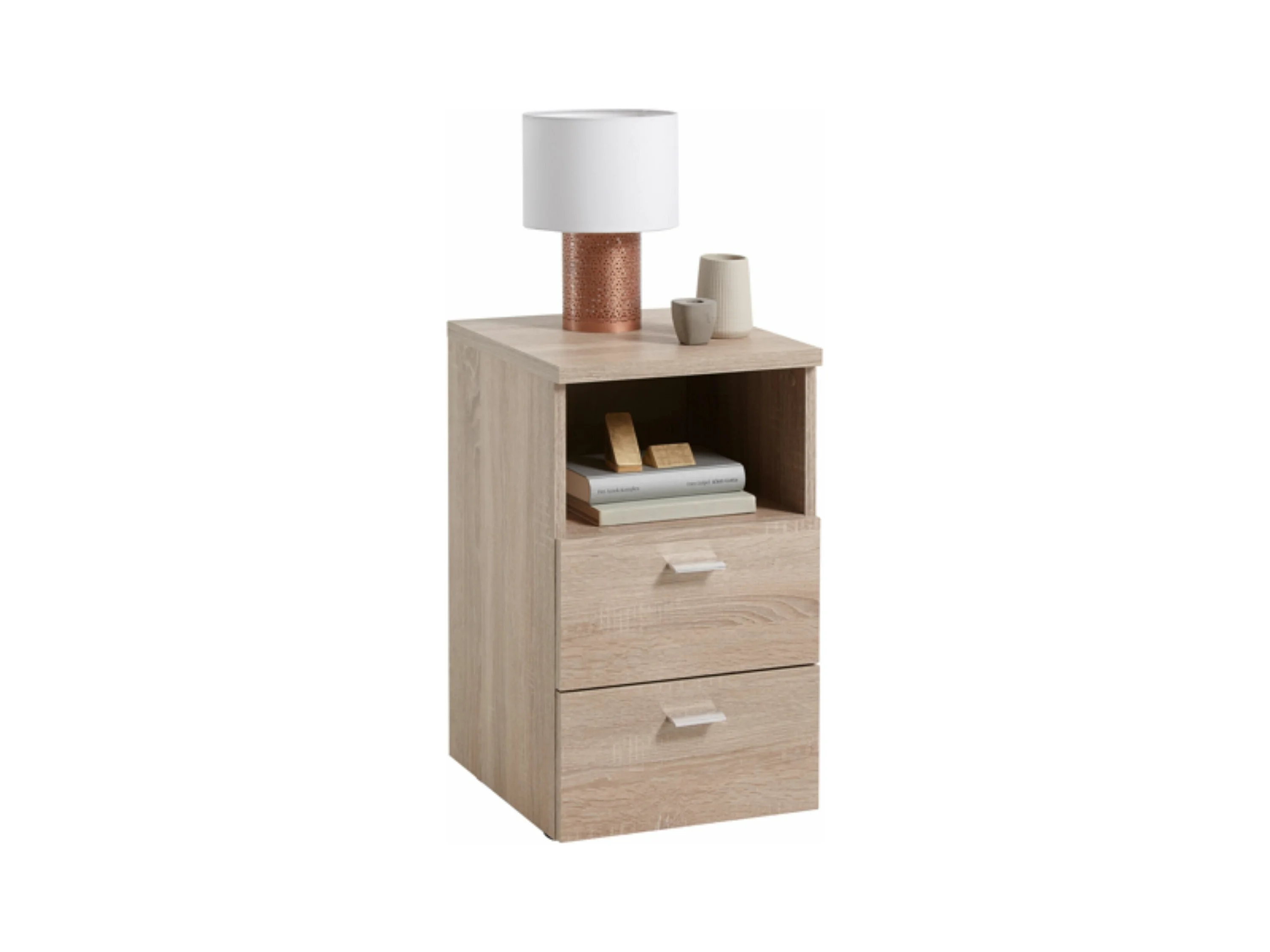 Chevet 2 tiroirs + 1 niche en bois imitation chêne clair - CH13024