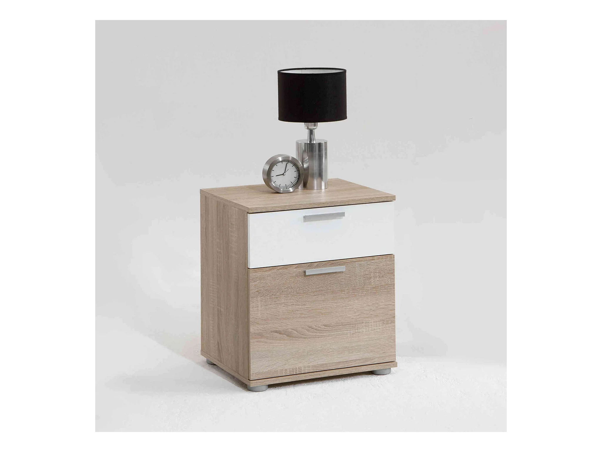 Chevet 2 tiroirs imitation chêne brosse/blanc CH129