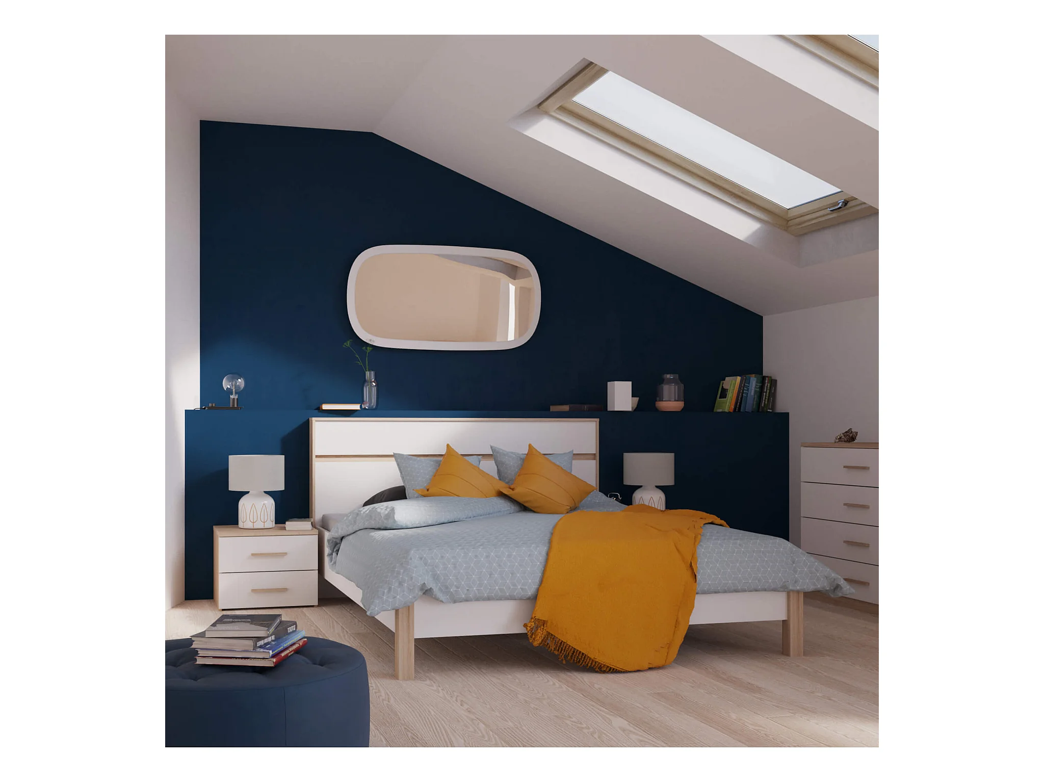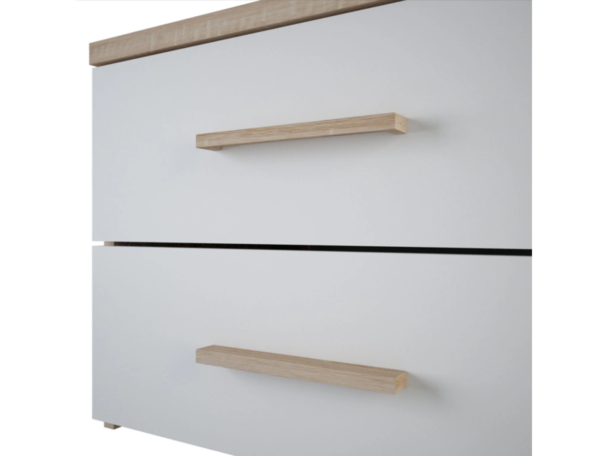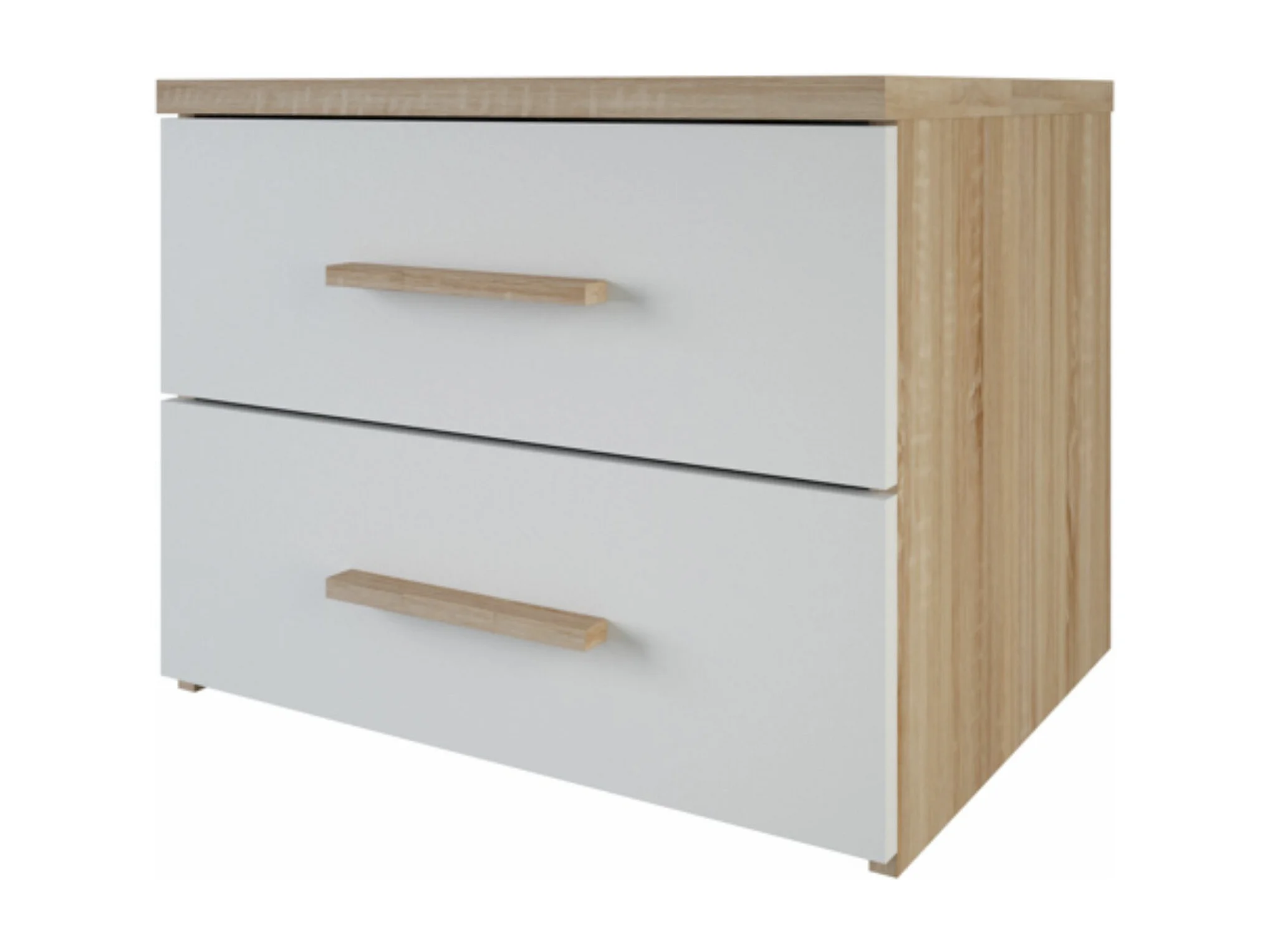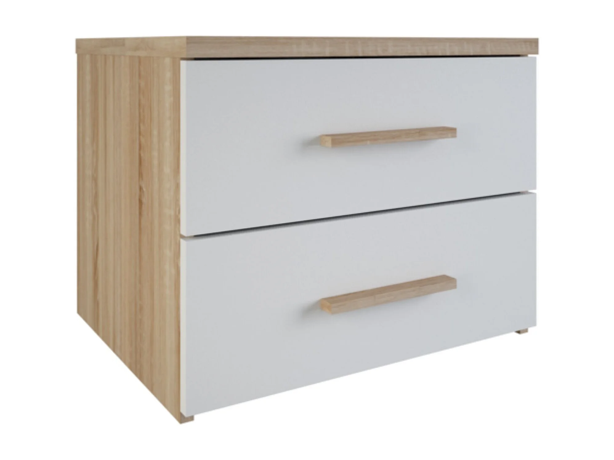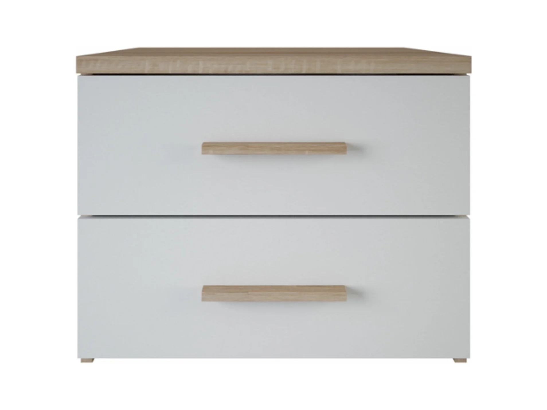 Chevet 2 tiroirs imitation chêne brosse/blanc CH129