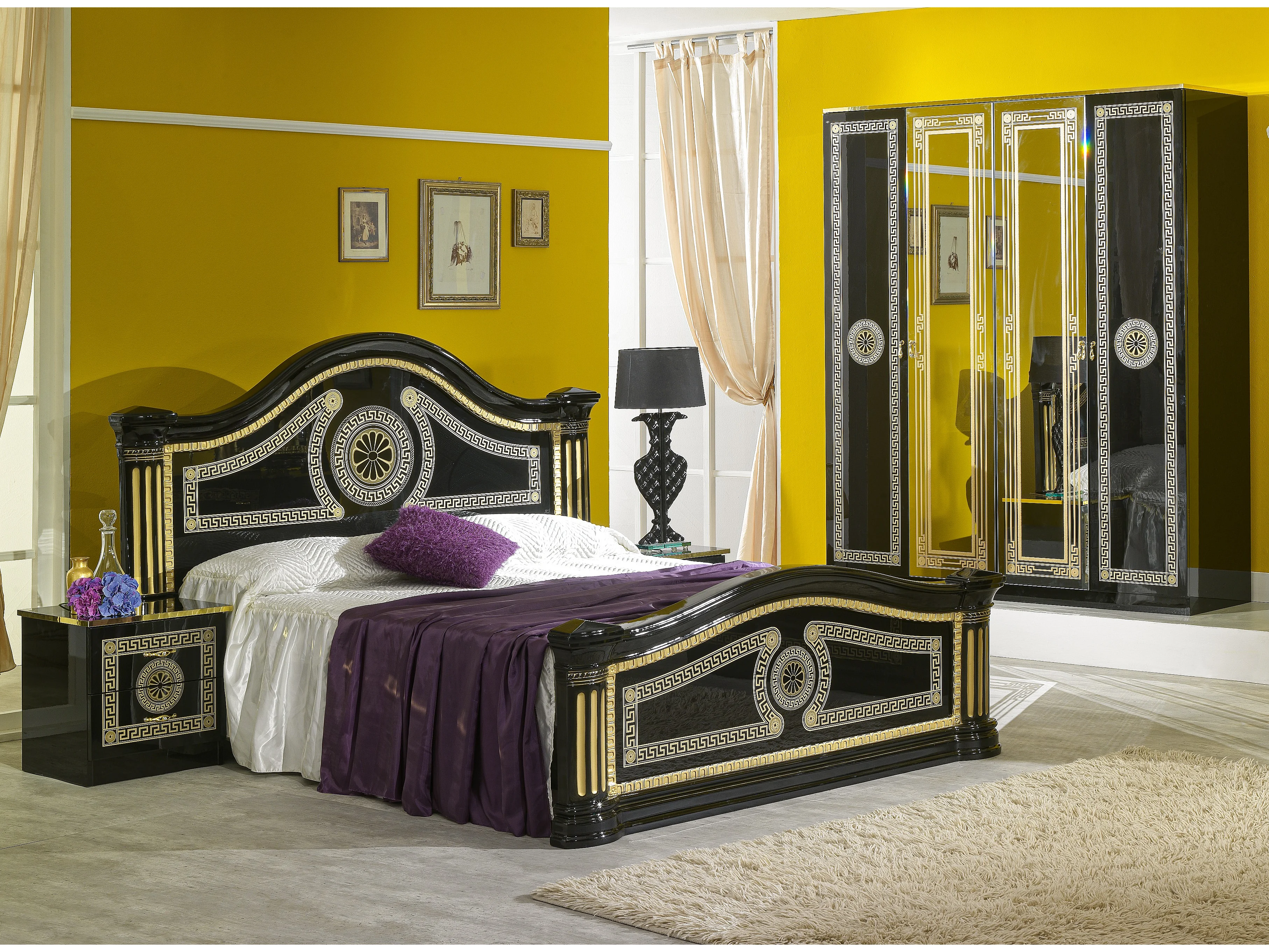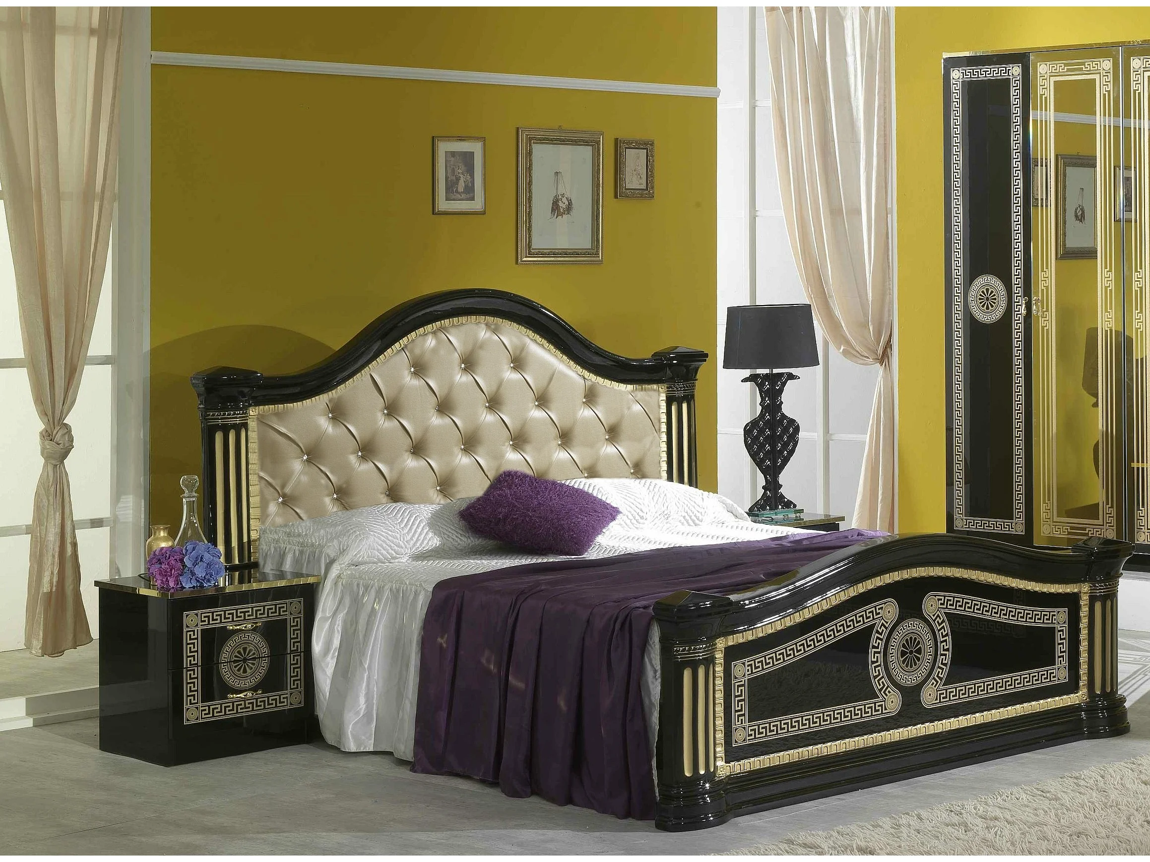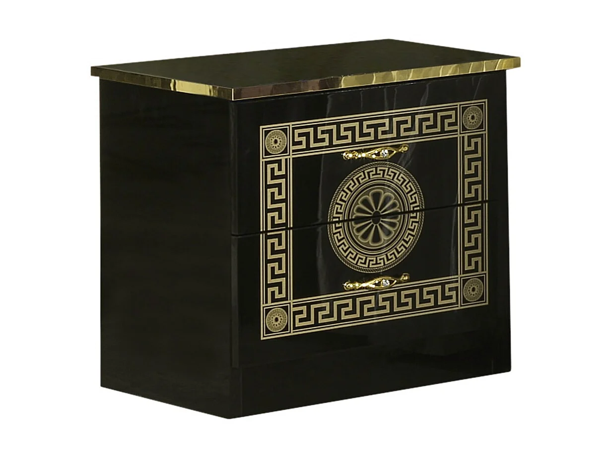 Chevet 2 tiroirs laqué noir et doré Savana 50cm