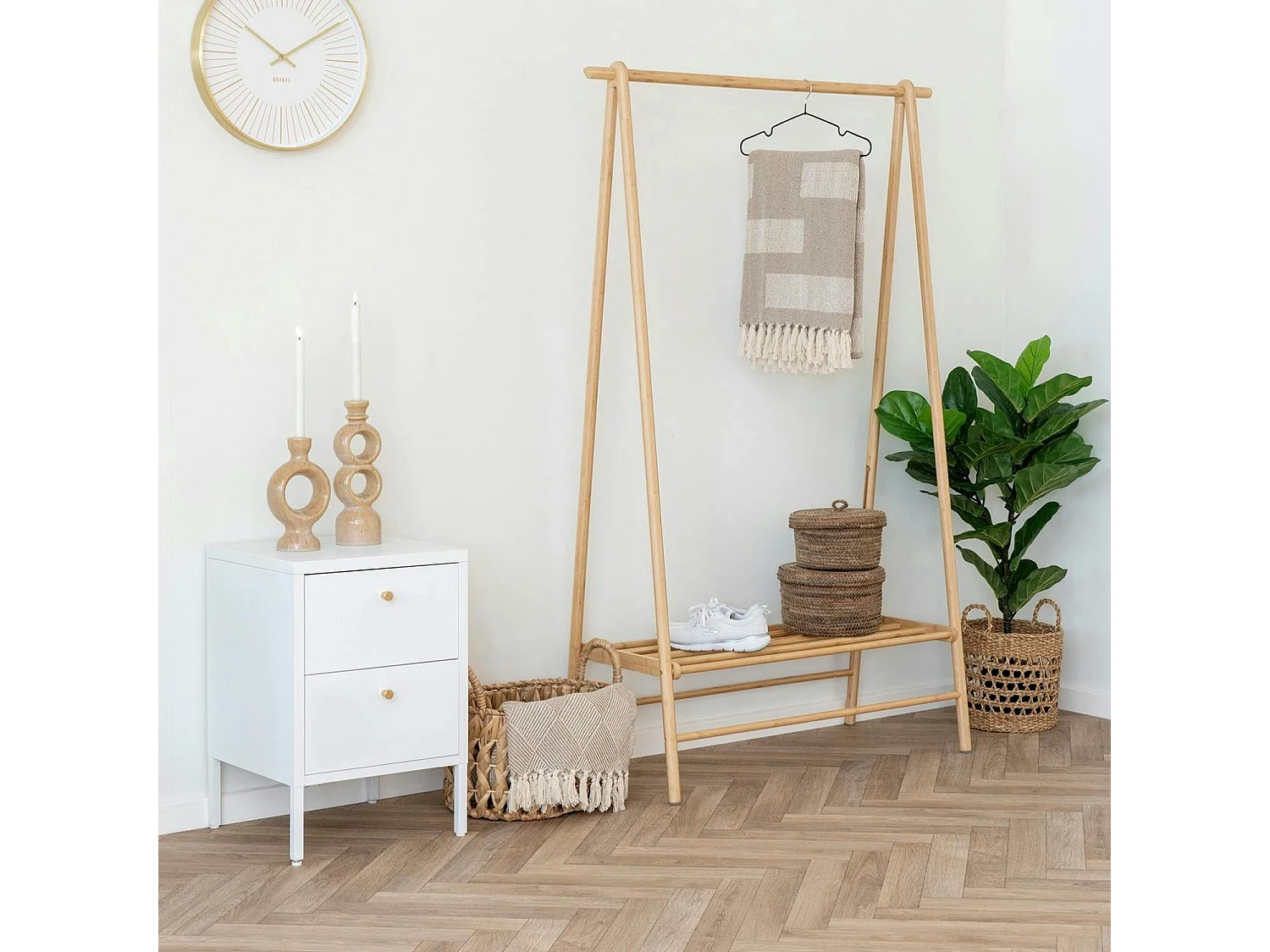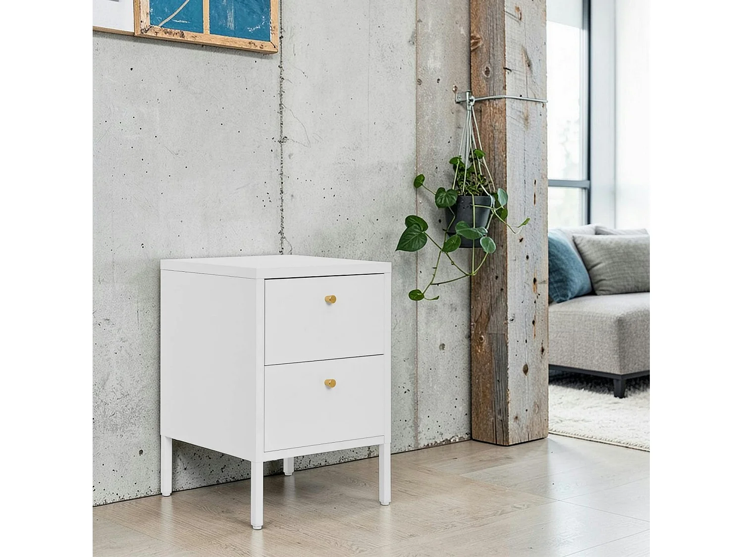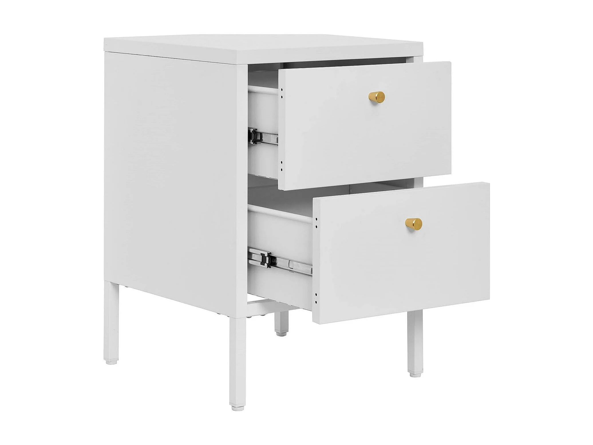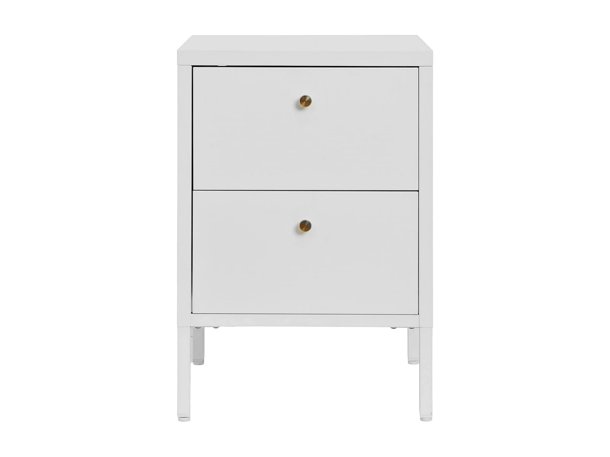Chevet 2 tiroirs métal blanc poignées dorées ODENSE