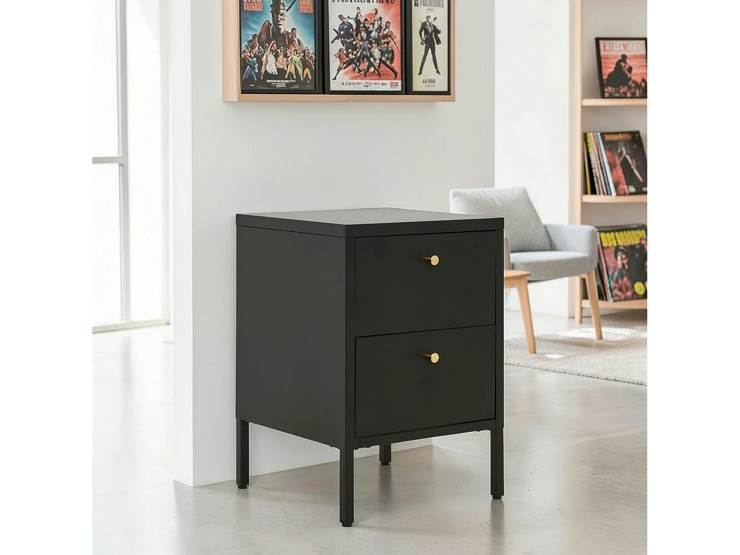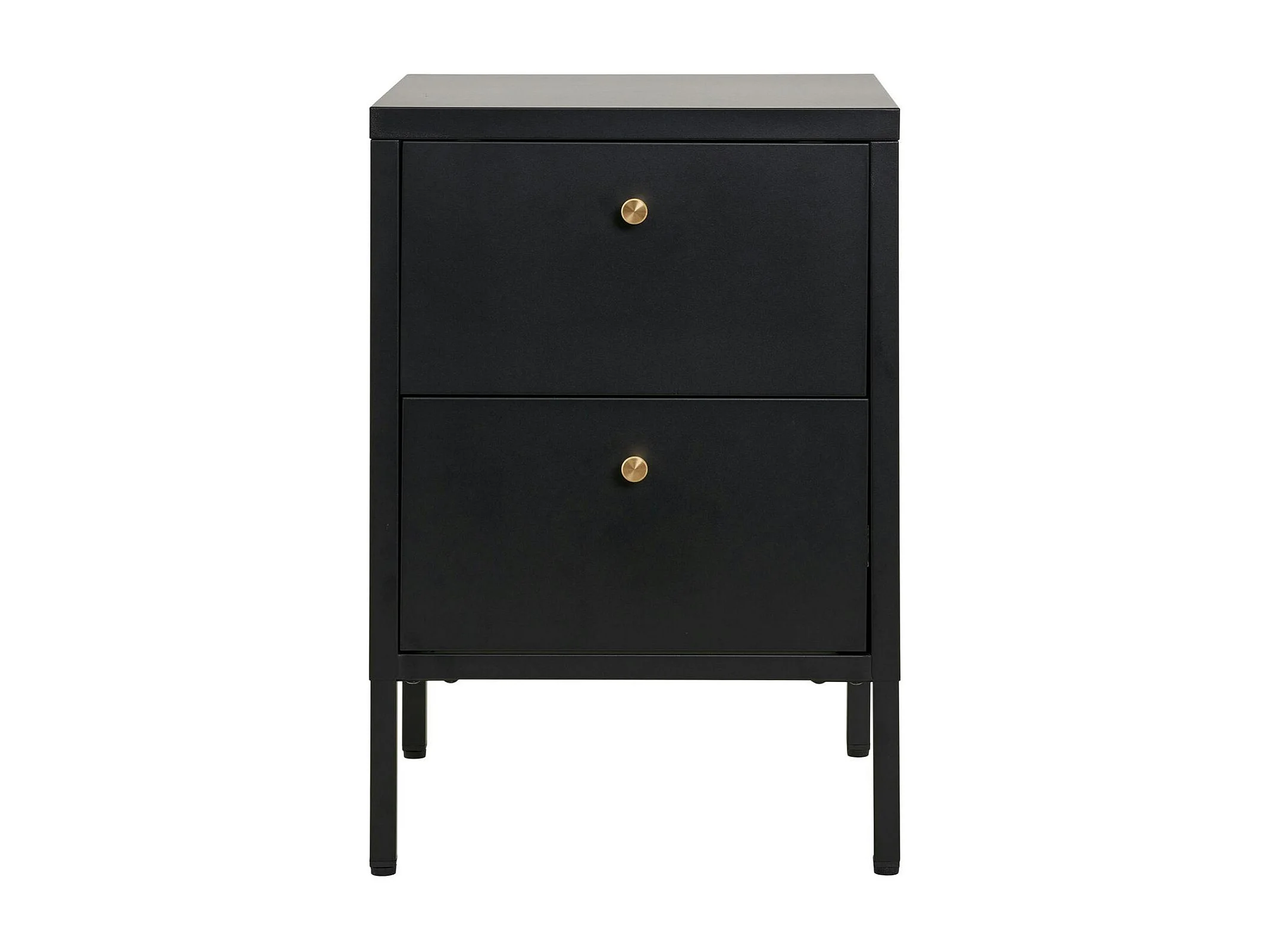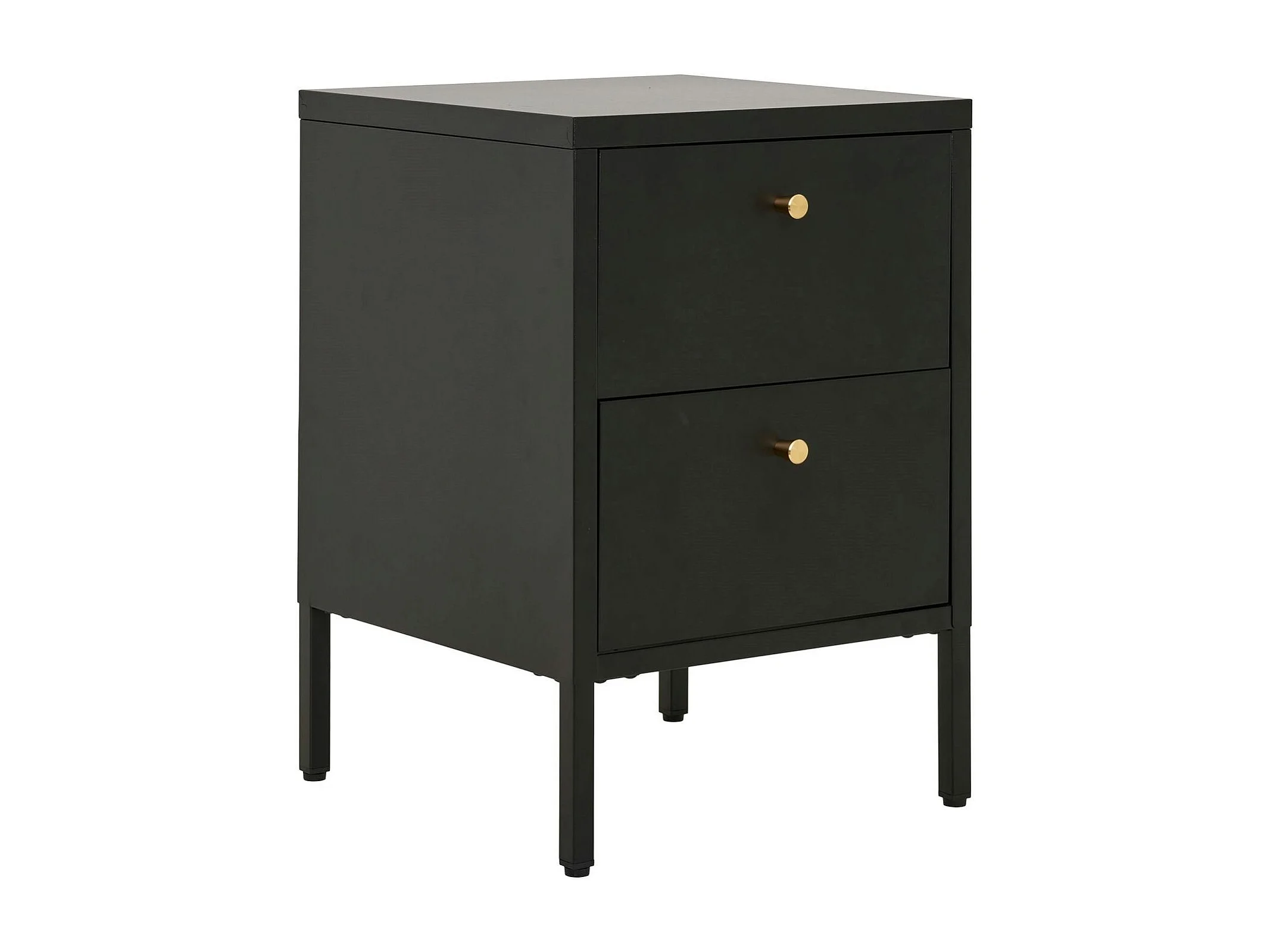 Chevet 2 tiroirs métal noir poignées dorées ODENSE