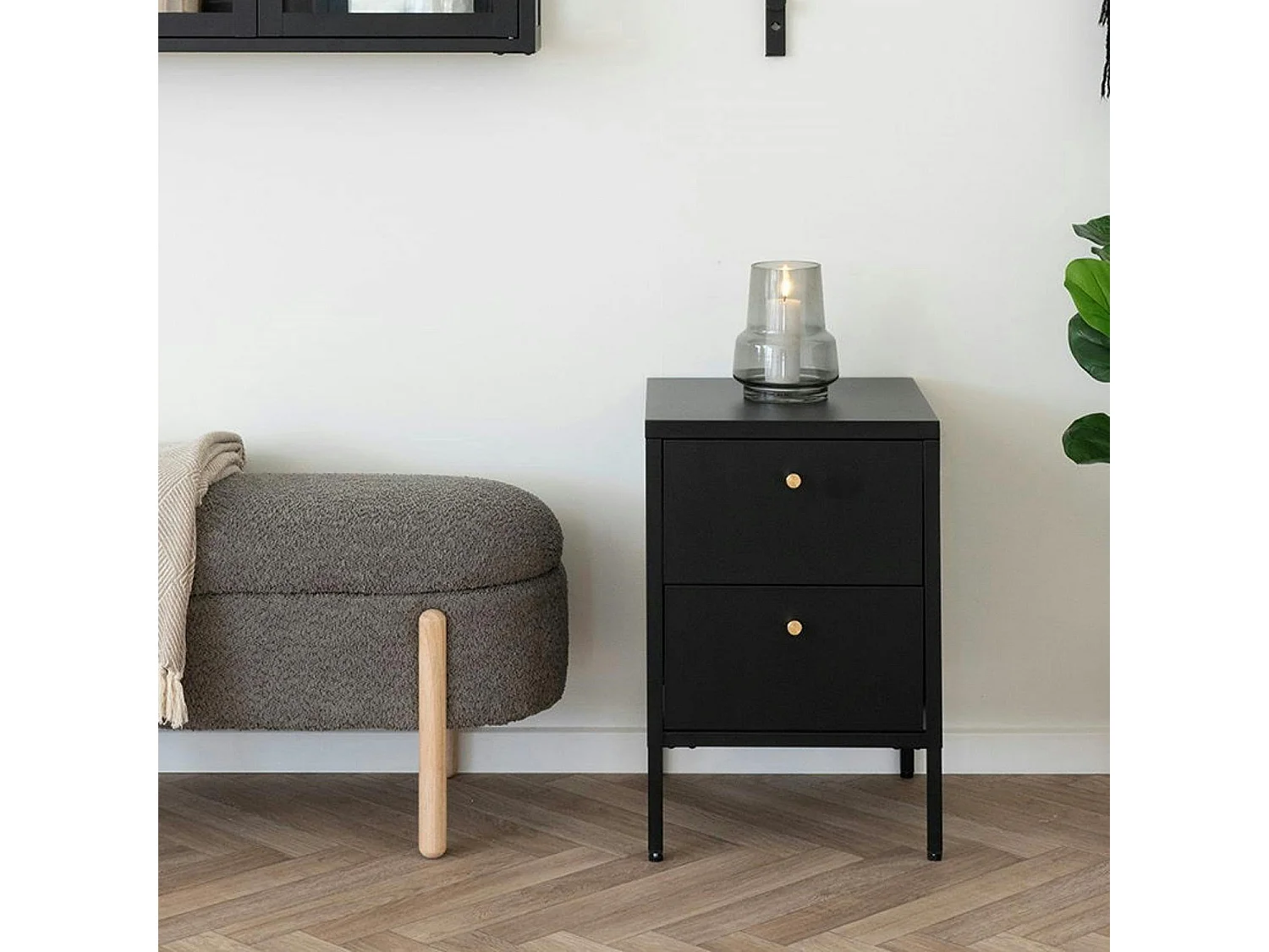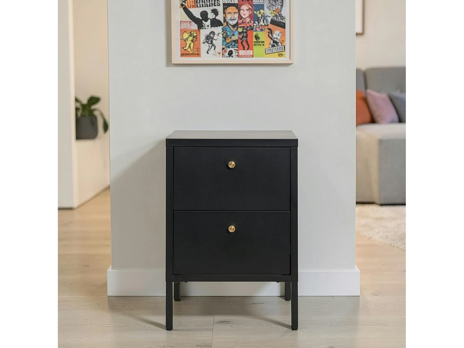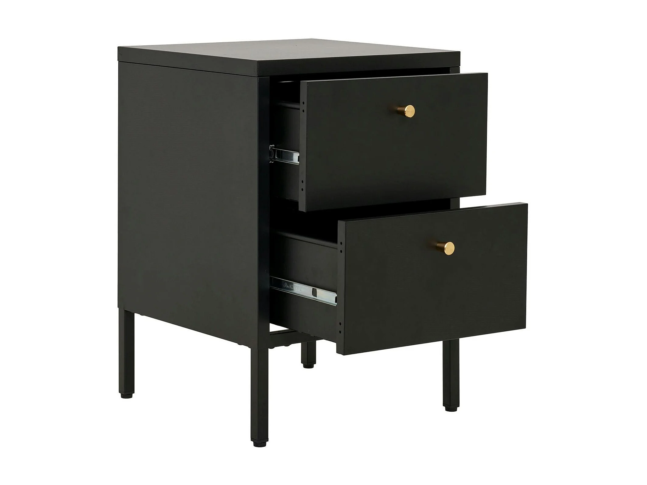 Chevet 2 tiroirs métal noir poignées dorées ODENSE