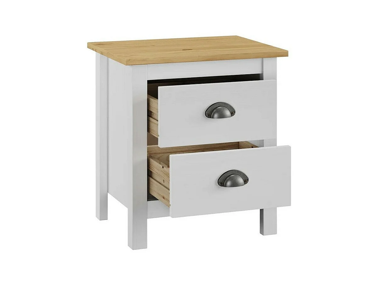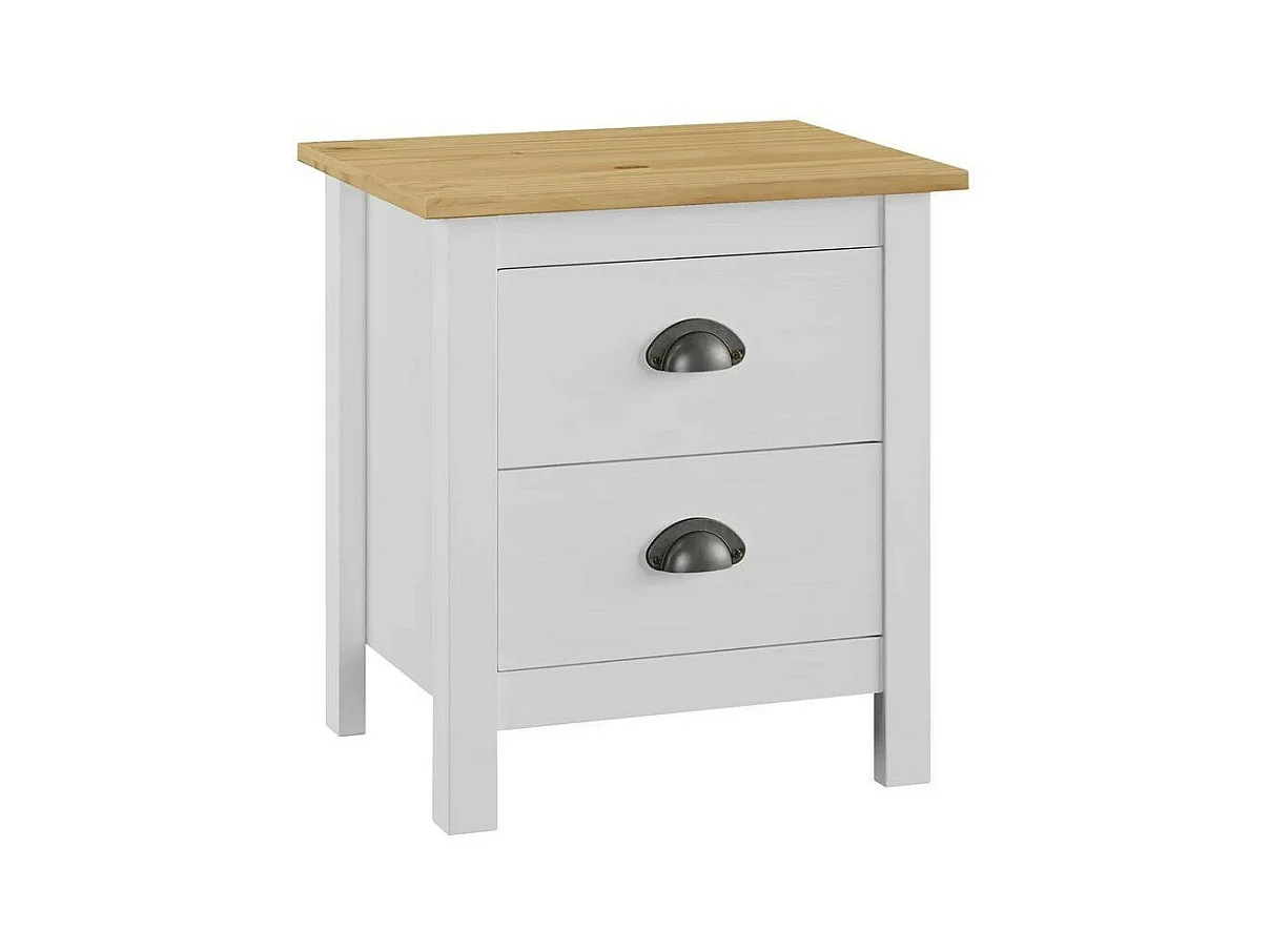 Chevet 2 tiroirs pin massif clair et blanc Berti - Lot de 2