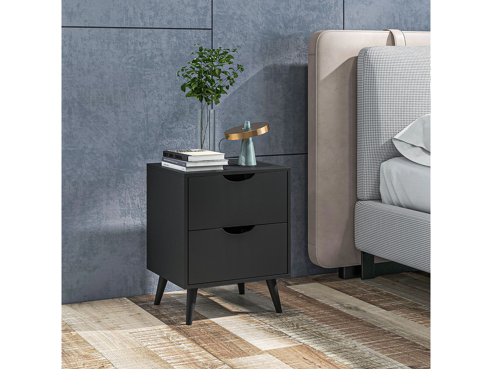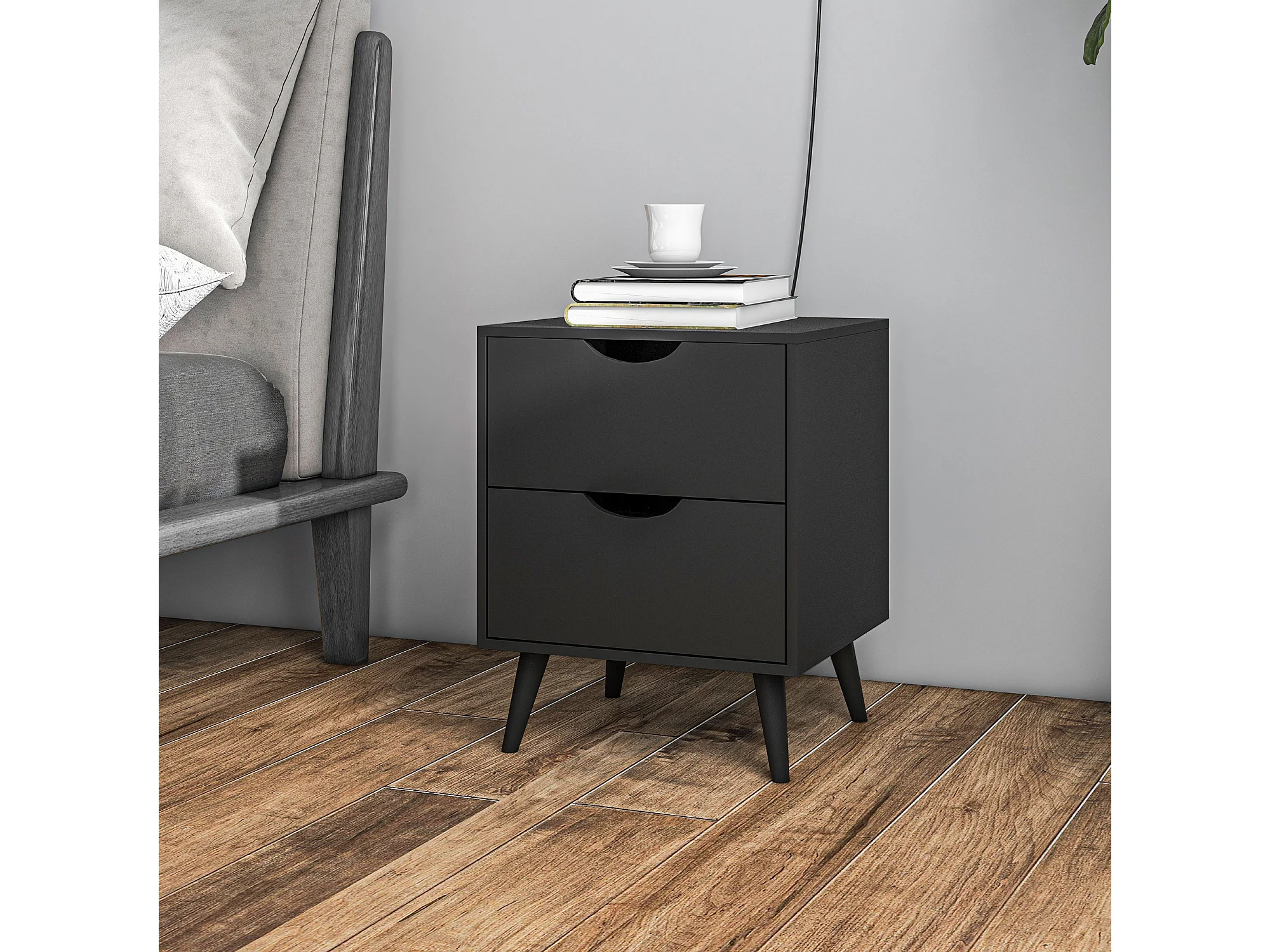 Chevet 2 tiroirs table de nuit style nordique dim. 40 x 35 x 50,5 cm noir
