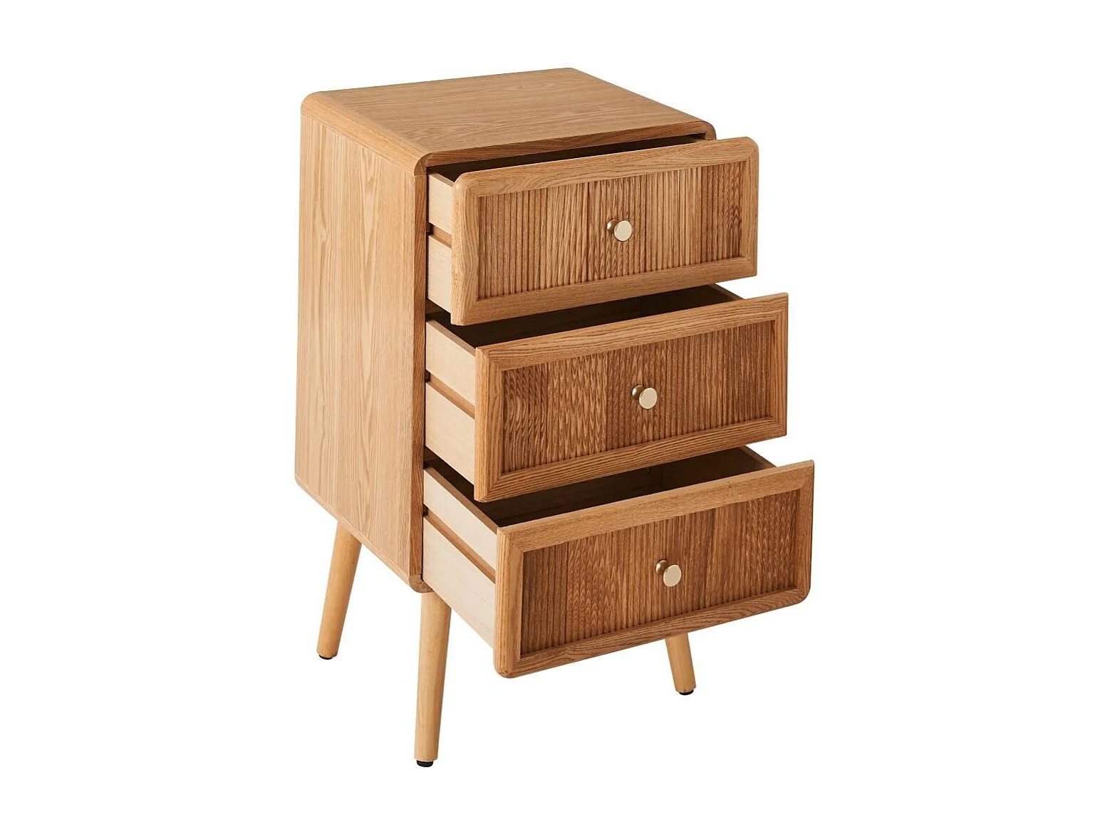Chevet 3 tiroirs avec façades lamellées H71 cm AVA