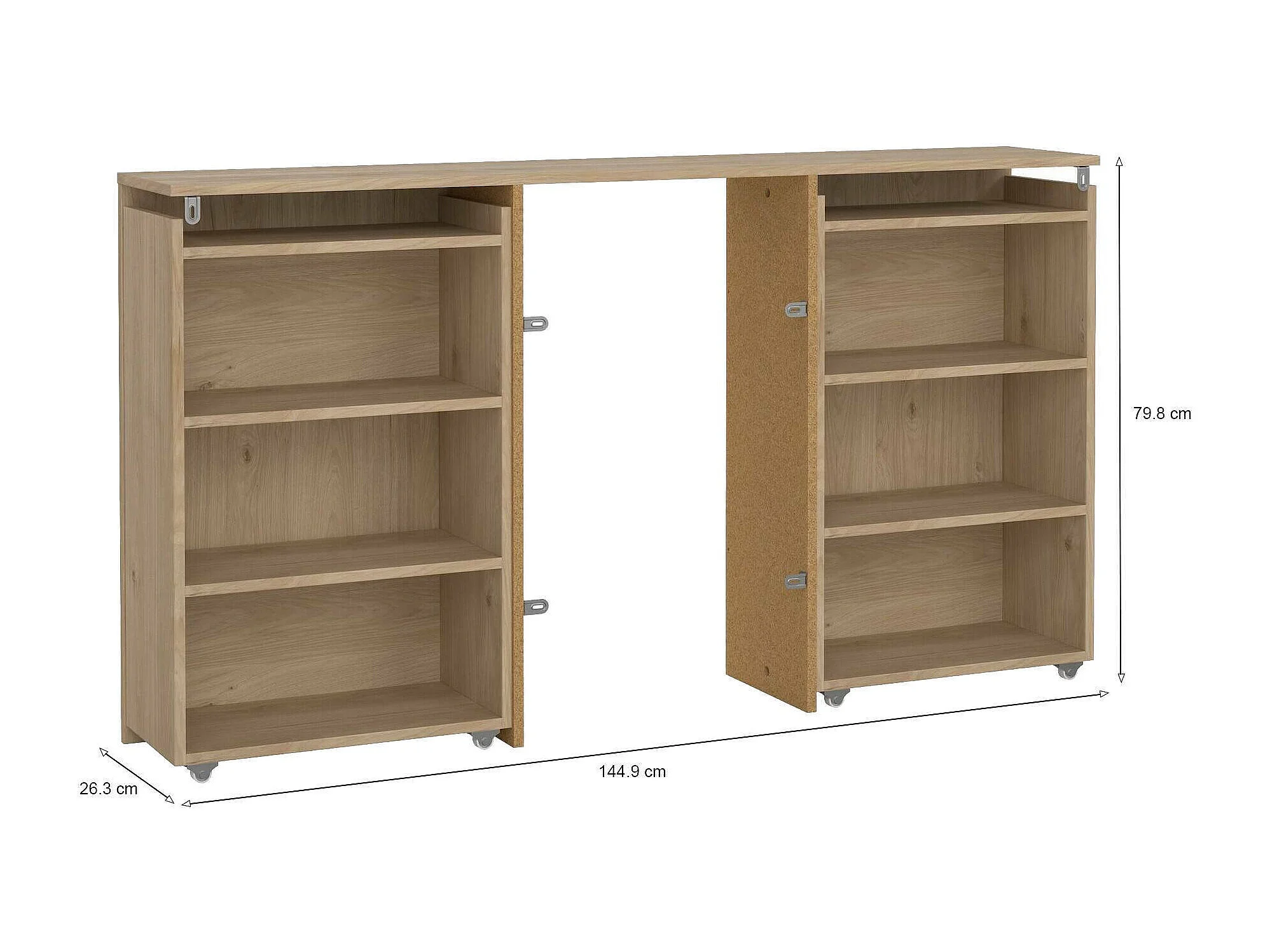 Chevet Arnaboldi, Commode basse, Table de nuit, Étagère de chevet, 145x26 h80 cm, Chêne clair