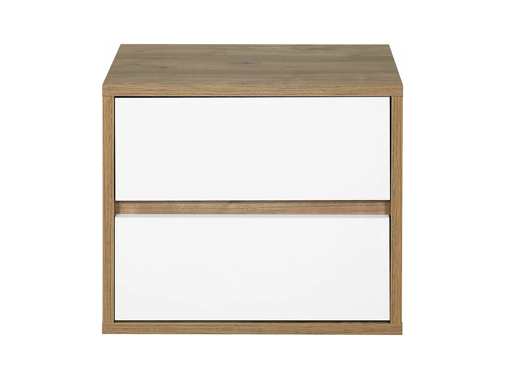 Chevet 2 tiroirs panneaux de fibres noyer et blanc KIMA