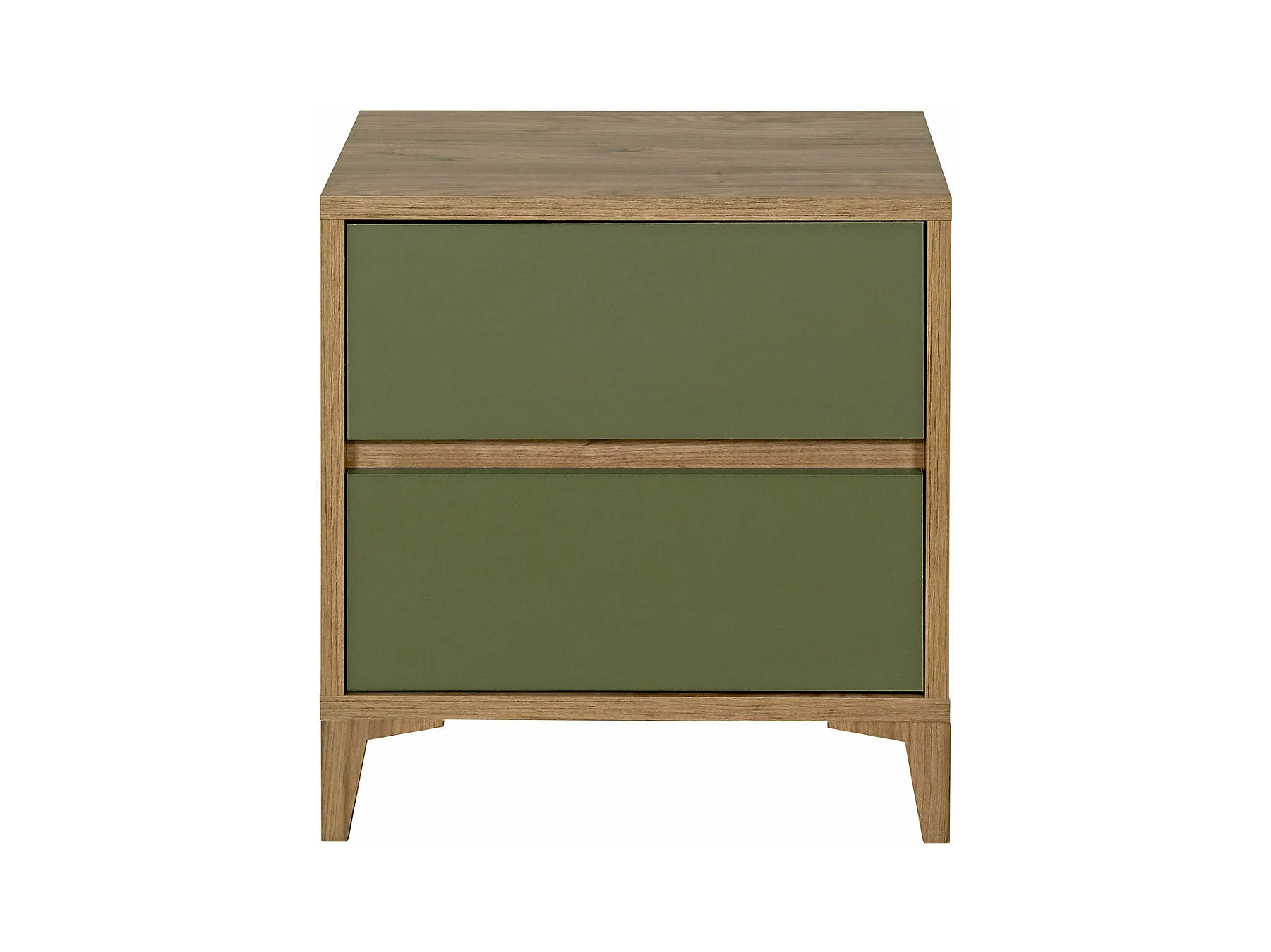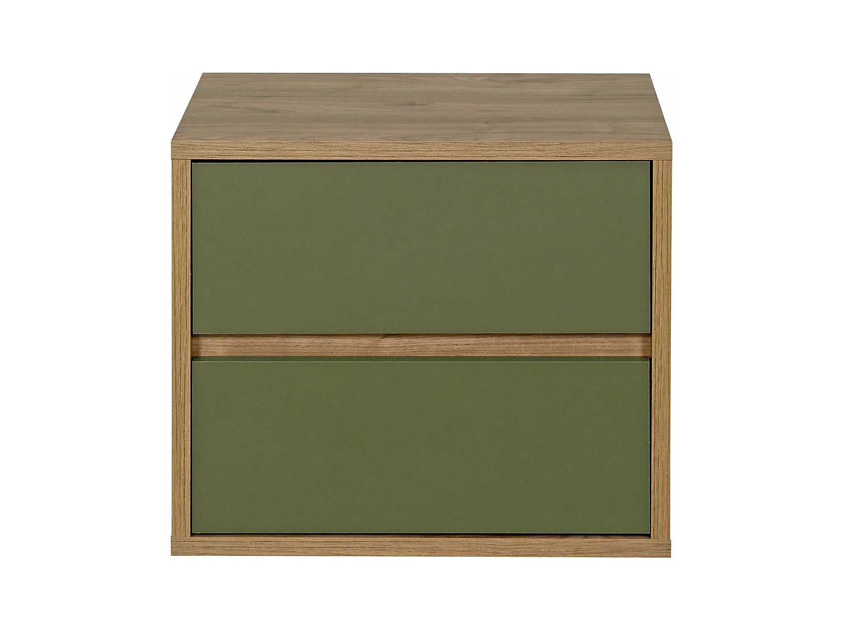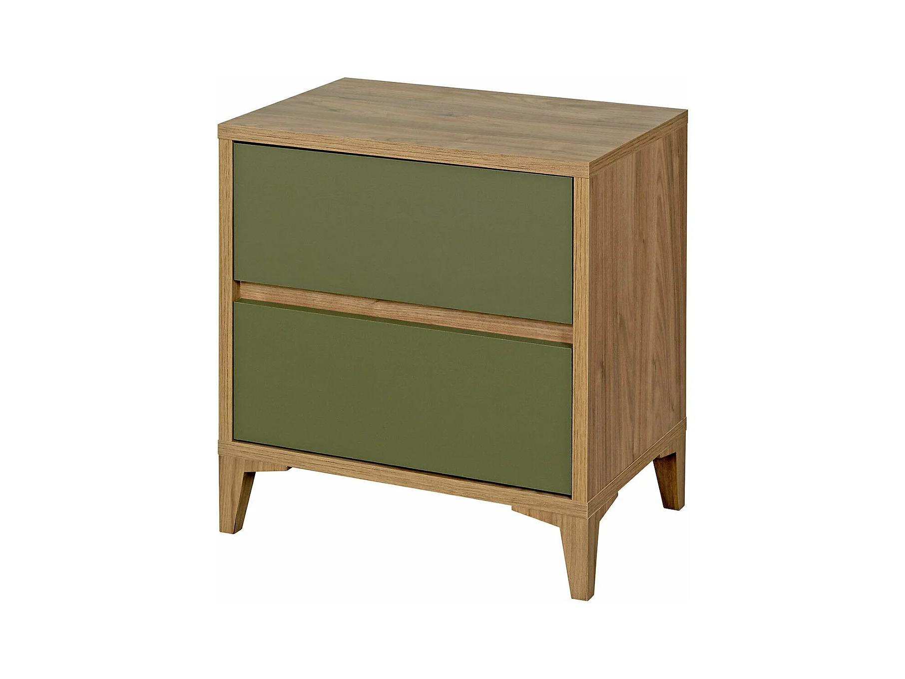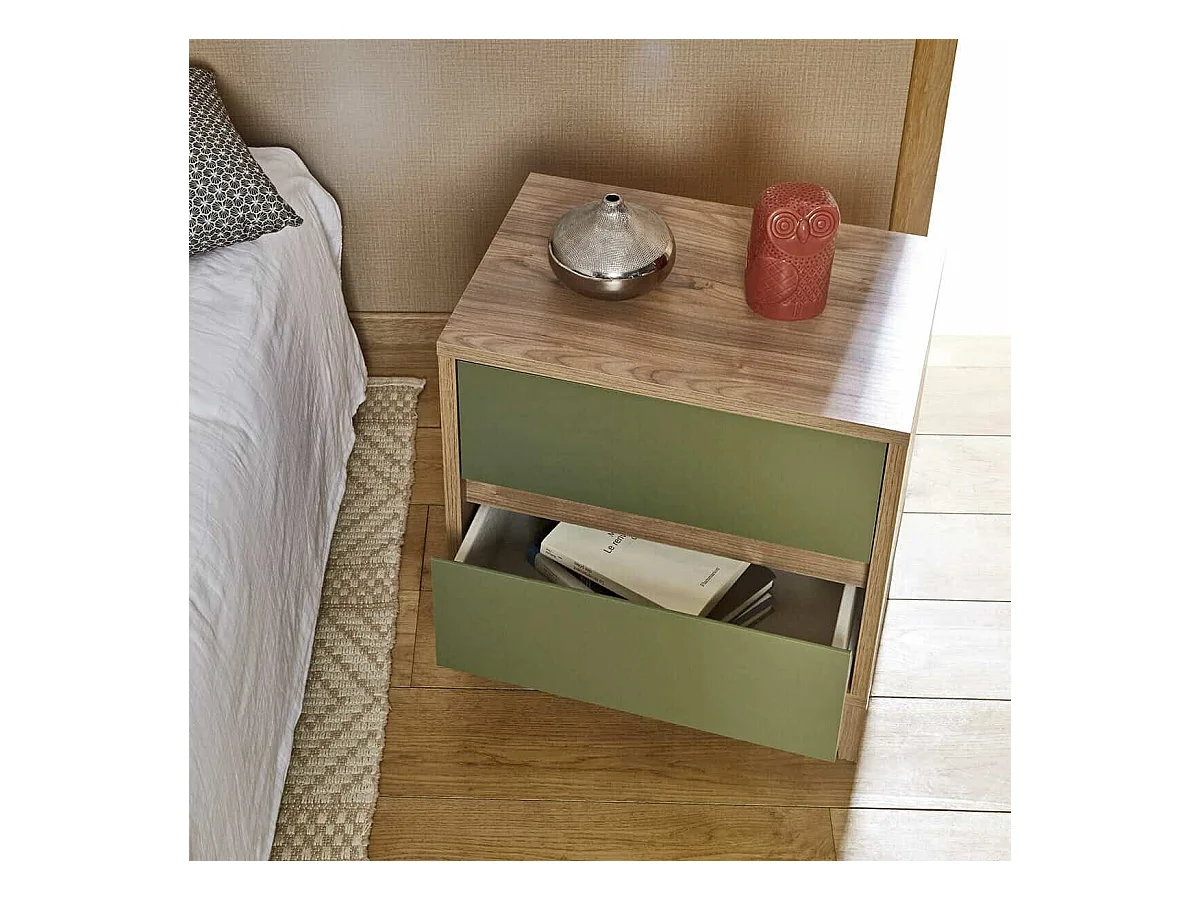 Chevet 2 tiroirs panneaux de fibres noyer et vert KIMA