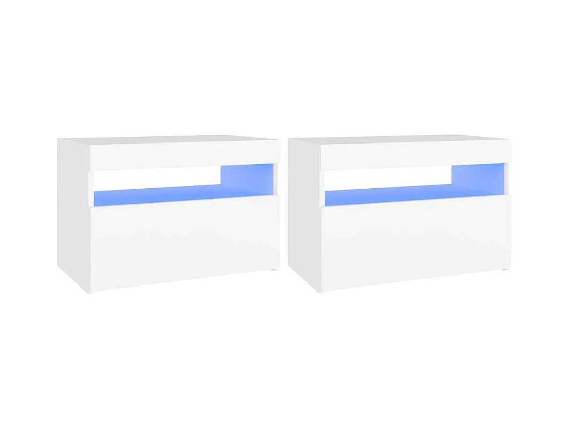 Chevet avec lumières LED 2 pcs Blanc brillant 60x35x40