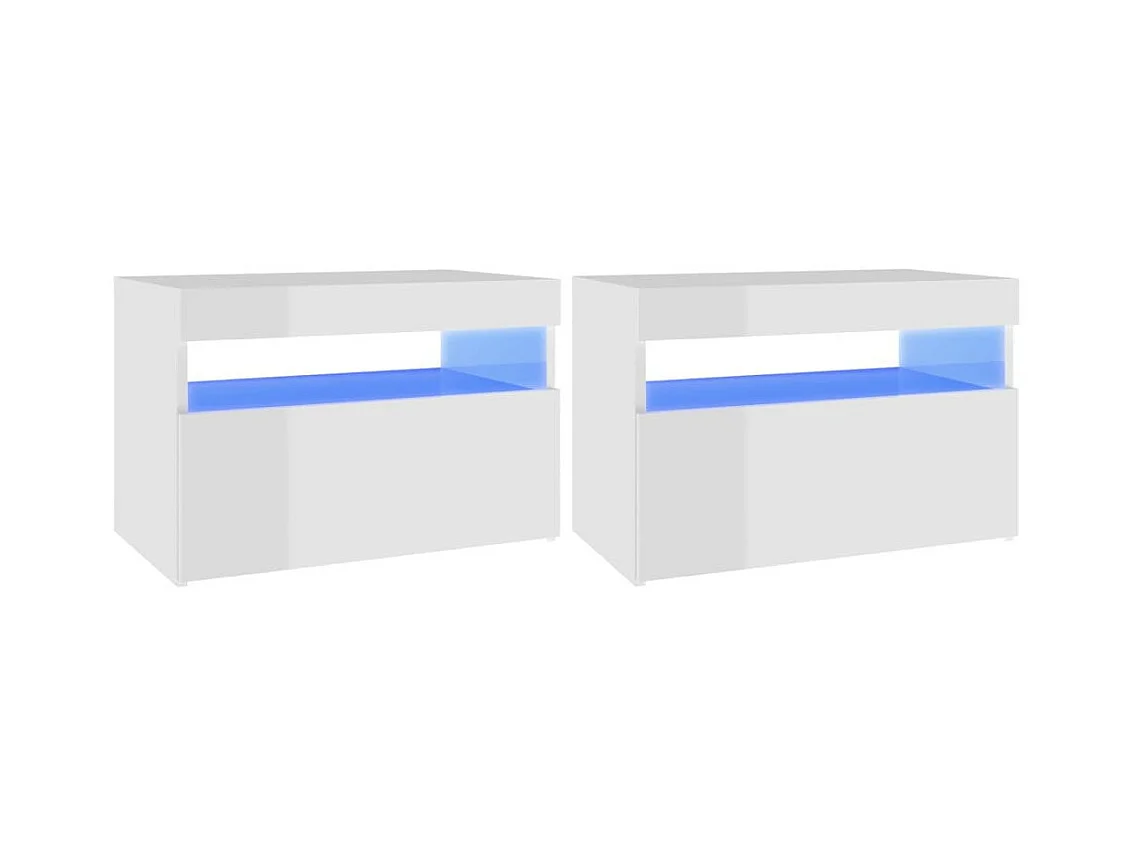 Chevet avec lumières LED 2 pcs Blanc brillant 60x35x40