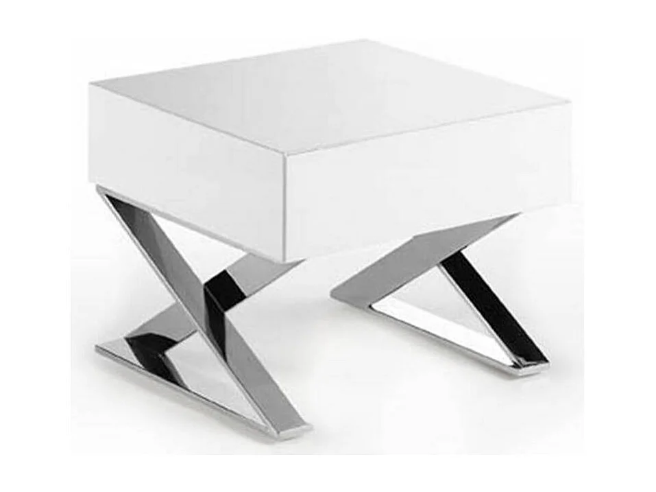 Chevet design 1 tiroir bois laqué et acier chromé Lony-Couleur Rouge